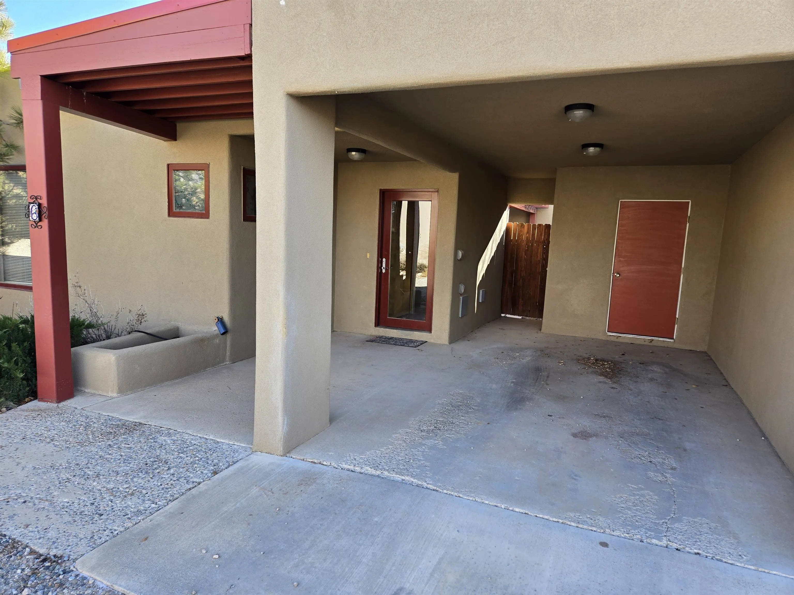 Two bedroom condo located in Upper Las Colonias, convenient to Hwy 150 on the North side of Taos. Quail Ridge Casas are in a tidy complex with mature landscaping and sunny units. Built in about 2005, they have a contemporary feel with high clerestory windows, and Unit 6 has an enclosed courtyards accessed by sliding glass doors to bring the fresh air in. There are sunny south facing windows, with large trees to screen for privacy. The unit has it’s own carport. The efficient kitchen has a fridge, stove and dishwasher. There is a large southwest style fireplace. The unit has it’s own stacking washer and dryer. There are several restaurants nearby and it is convenient to a gas station.