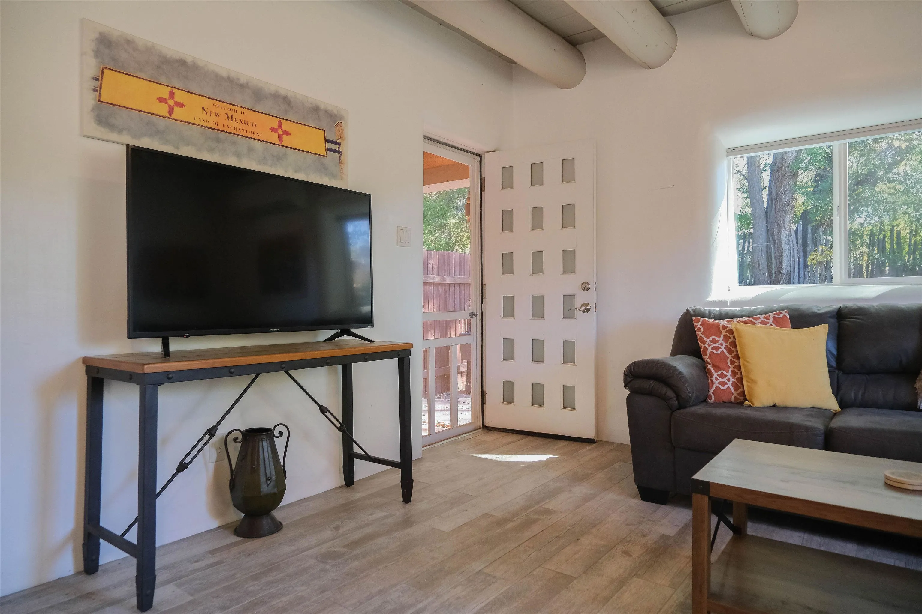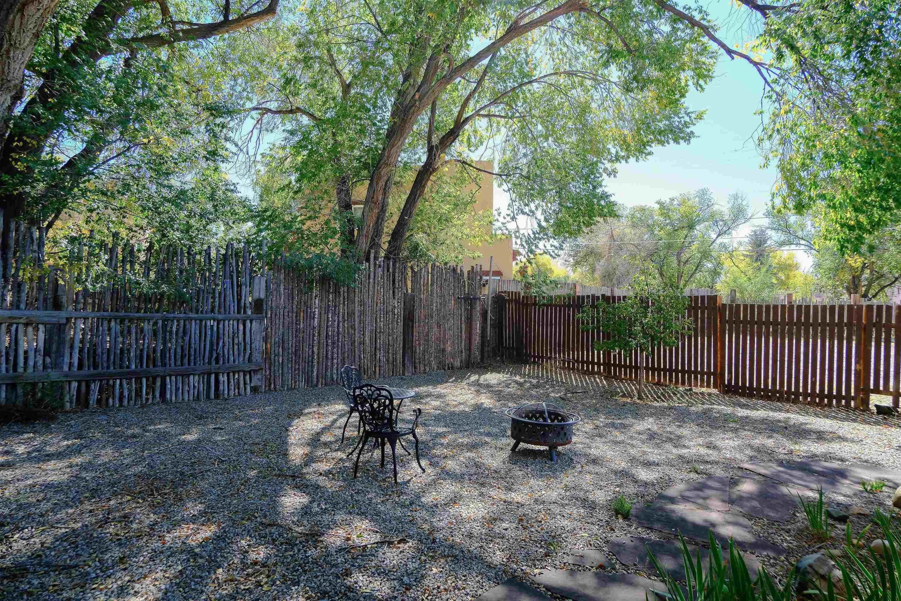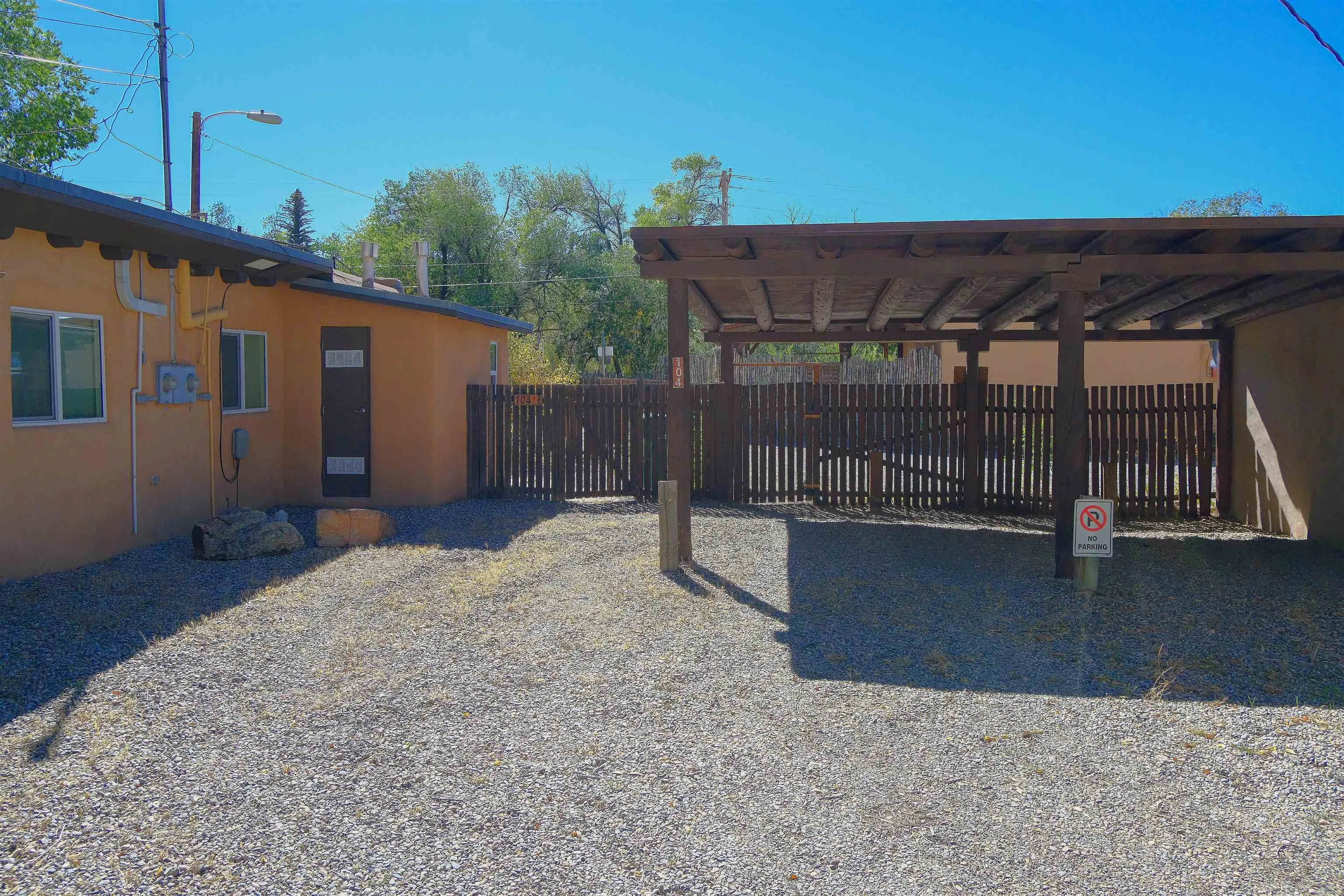 In-Town Gem Alert!!! Sweet remodeled Duplex with huge backyards (yes, plural!), covered, off-street parking sold Turnkey with all the cute furniture and finishings! Turn-key makes it an effortless move-in- occupy one, generate income from the other one immediately! Two mirror imaged units graced with the wonderful charming features of their origins in the 60’s- adobe construction, viga beams on the ceilings, thick, plaster walls, old shade trees. Then add to that a totally fresh, remodeled interior that is as comfortable as it is cute. The complete reno included upgraded electrical and plumbing, new roof, new stucco, new windows, new doors, new flooring, new cabinets, new countertops- do I need to go on? Because I can-the location is amazing- you could literally hit Michael’s Kitchen with a hashbrown from here or walk across the street to listen to some music and get a burger and a beer at Jackalope. Mere moments away from all the action around the Plaza, Galleries, Restaurants, Bars, and shopping. Both Units have large backyards- a true in-town luxury- with room to gather, garden, relax, entertain. Separate meters for each Unit, Town water, sewer, natural gas, fiber optics. Old World/In Town Retreat? Yes, please!