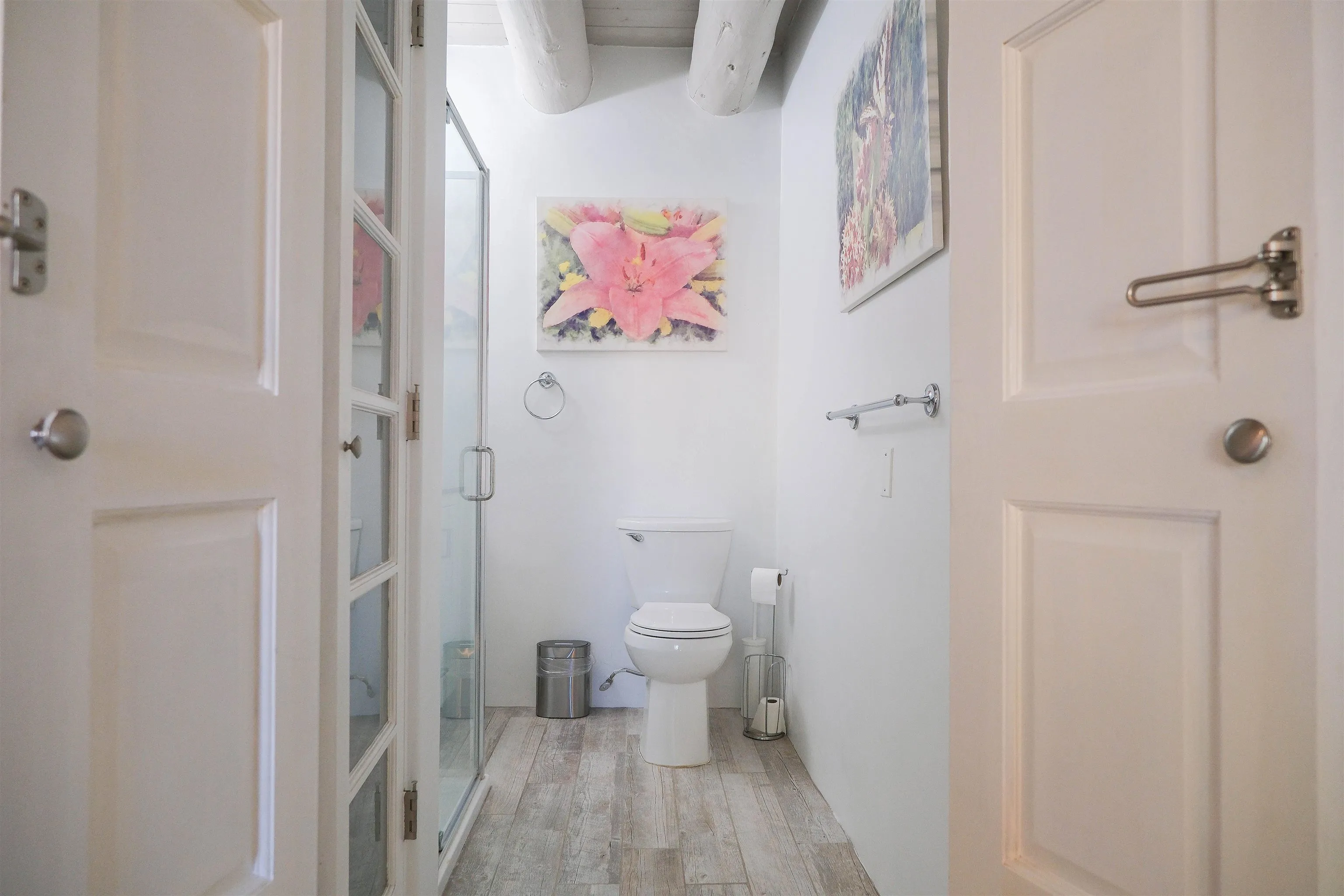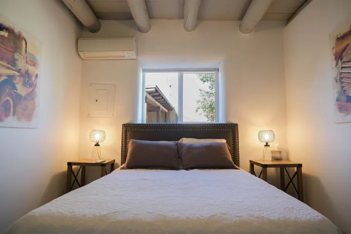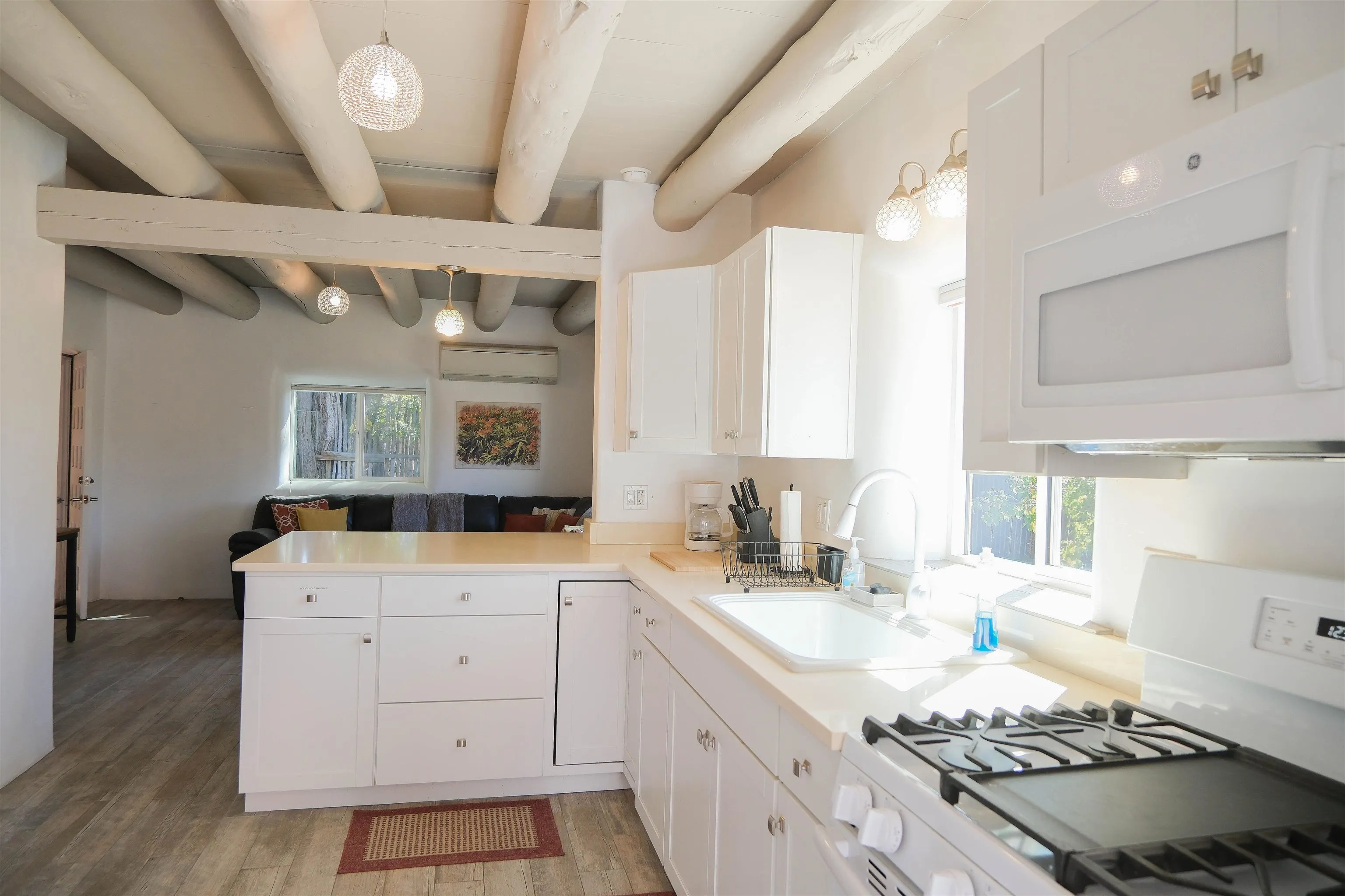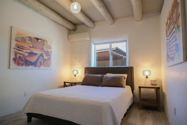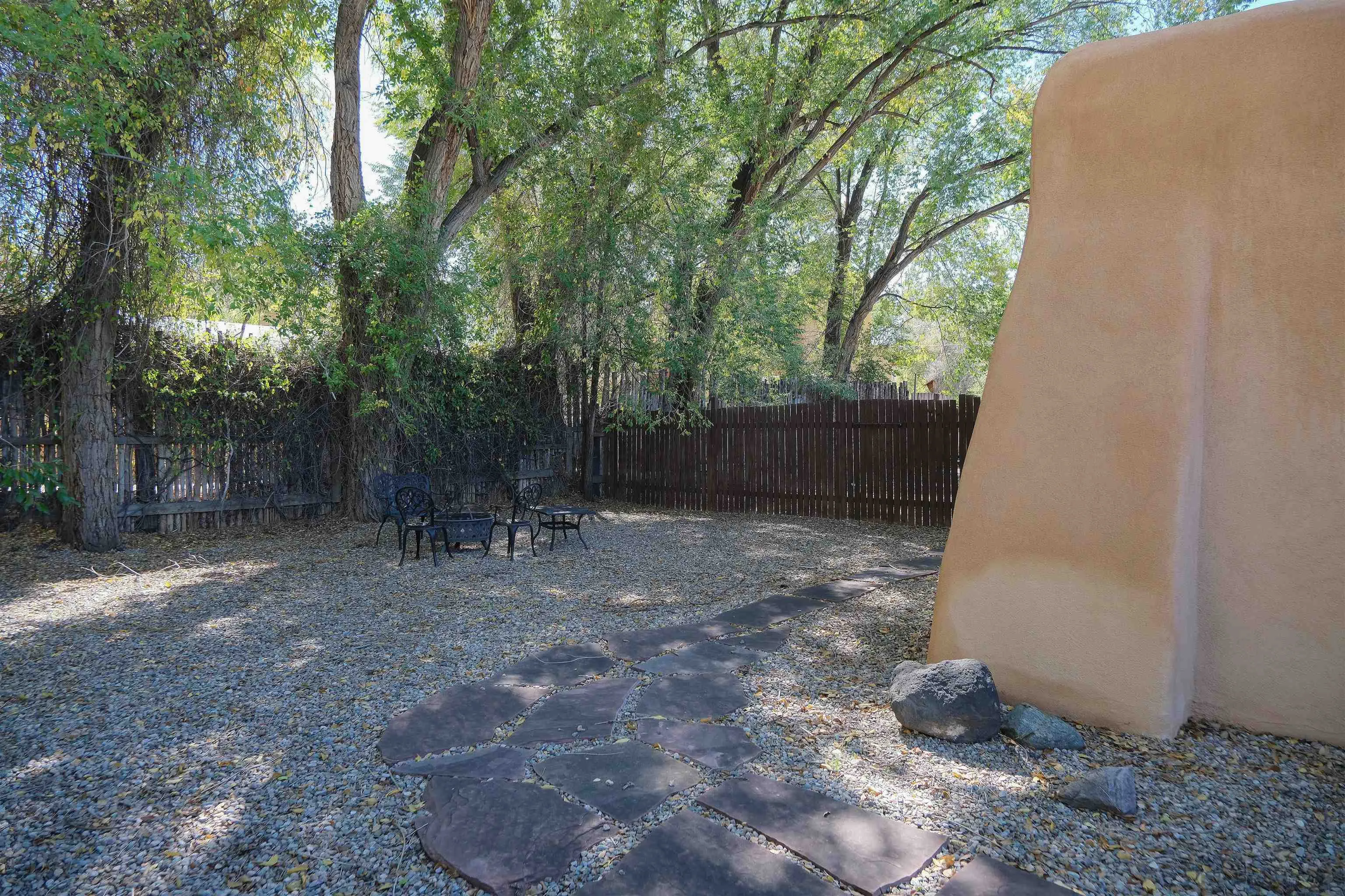 In-Town Gem Alert!!! Sweet remodeled Duplex with huge backyards (yes, plural!), covered, off-street parking sold Turnkey with all the cute furniture and finishings! Turn-key makes it an effortless move-in- occupy one, generate income from the other one immediately! Two mirror imaged units graced with the wonderful charming features of their origins in the 60’s- adobe construction, viga beams on the ceilings, thick, plaster walls, old shade trees. Then add to that a totally fresh, remodeled interior that is as comfortable as it is cute. The complete reno included upgraded electrical and plumbing, new roof, new stucco, new windows, new doors, new flooring, new cabinets, new countertops- do I need to go on? Because I can-the location is amazing- you could literally hit Michael’s Kitchen with a hashbrown from here or walk across the street to listen to some music and get a burger and a beer at Jackalope. Mere moments away from all the action around the Plaza, Galleries, Restaurants, Bars, and shopping. Both Units have large backyards- a true in-town luxury- with room to gather, garden, relax, entertain. Separate meters for each Unit, Town water, sewer, natural gas, fiber optics. Old World/In Town Retreat? Yes, please!
