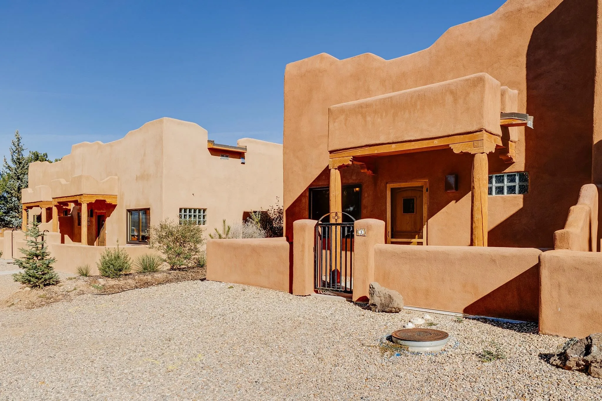 - Head SOUTH from Taos Plaza on Paseo Del Pueblo Sur. Just past Baskin Robbins is Cavalry. TURN LEFT. Drive straight (you will pass storage units on your left). The road will curve softly to your left and then drive into the condos on your right. Unit 3 is on the left.