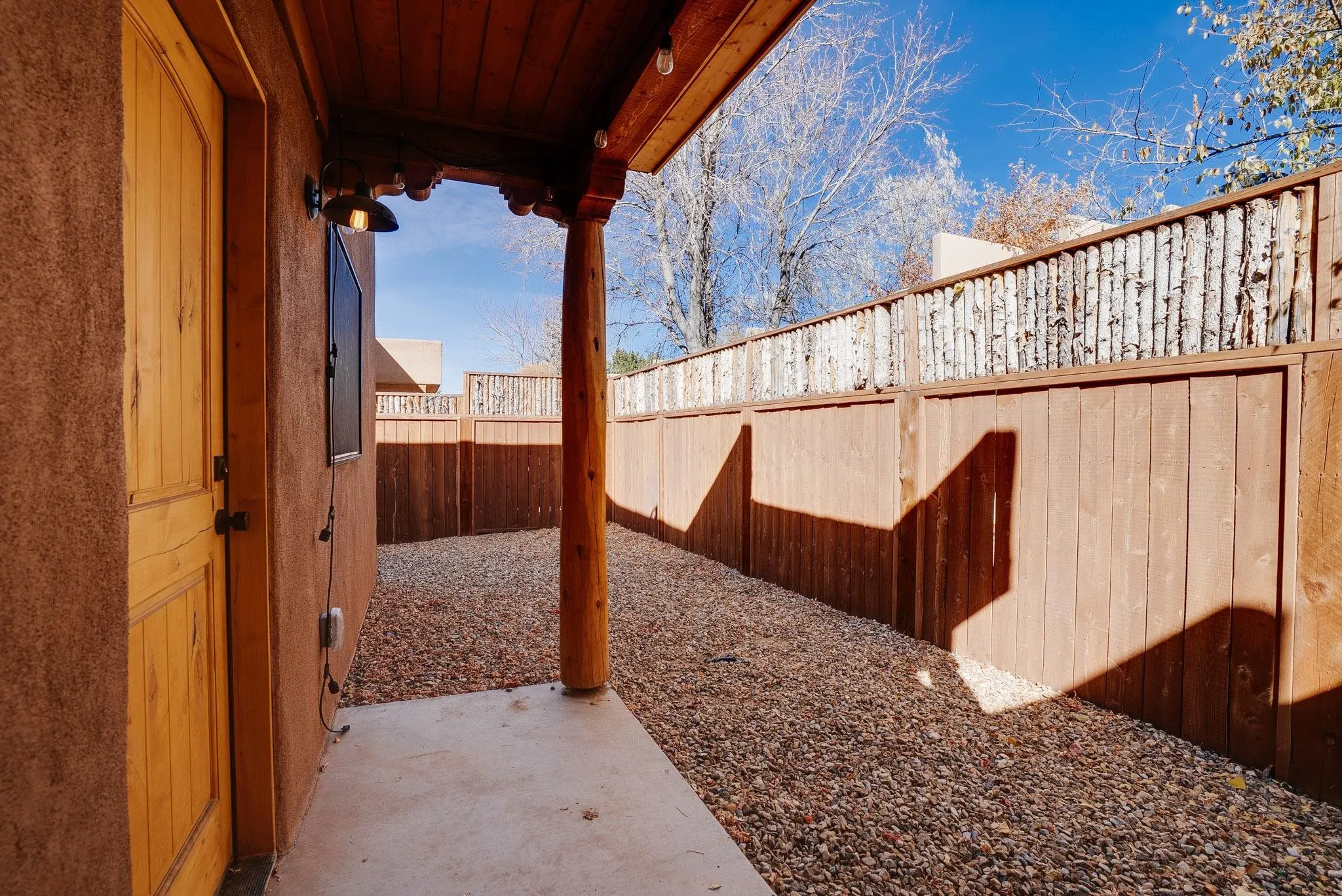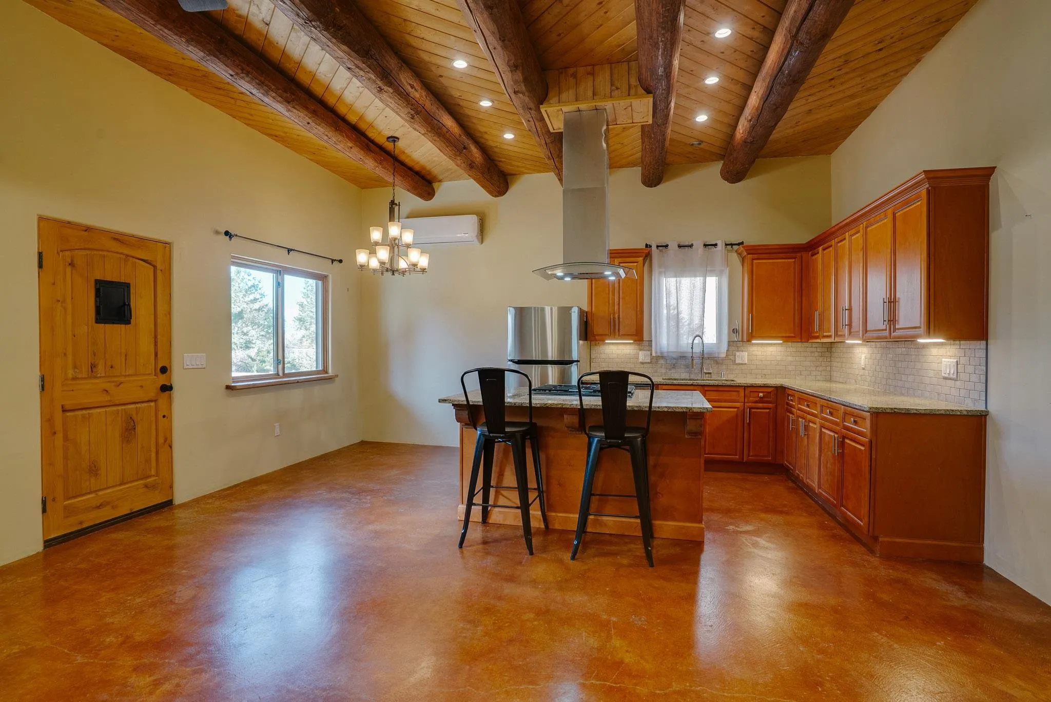 Discover modern comfort and quality craftsmanship in this beautifully appointed 2 bedroom/2 bath condo, built in 2022. Step inside to an inviting open floor plan grounded by stained concrete floors that add a contemporary style and low-maintenance durability. The warm color of the floor matches the warmth of the cozy gas fireplace-perfect and easy for relaxing in this quiet environment. The home is equipped with two efficient mini-split systems to meet your perfect comfort levels of heating/cooling: one in the living room and another in the primary suite. The primary has a walk-in closet, en-suite full bath and a door leading to a fenced and private outside area (perfect for a hot tub and a pet). Another bedroom and another full bath create space and privacy for owner and guests. There is also in-unit laundry, the HOA is reasonable, and the setting tranquil and quiet (with only one shared wall). Reach out today for showing!