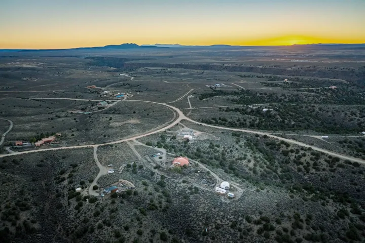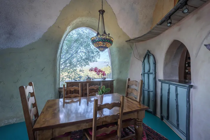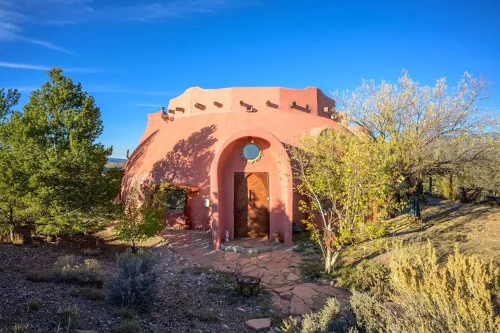 A Dreamy & Wondrous Masterpiece in Taos, New Mexico ~ Perched on five-plus pristine and private high-desert acres at the end of Tune Drive, you will discover “The Dreaming Dome,” a dreamy and wondrous architectural masterpiece. Truly whimsical and delightfully outlandish in all the best ways, this structure—as featured on HGTV and in Parade Magazine as “The Most Beautiful House in America”—is more of a sculpture than your standard residence. Inspired by the rainforests of Costa Rica and the New Mexico alpine high-desert, this sustainable, monolithic designed dome includes a yoga hut in the backyard, engulfed by the most stunning views the region has to offer. Upon stepping inside this architectural wonder, you are greeted by a visual dreamland defined by 35-foot ceilings, hand-finished adobe-style walls in rich earth tones, hand-carved doors, travertine tile, luxurious stained-glass chandeliers, and high-end CUSTOM finish-work throughout. The spacious interior features vibrant mosaic paths, hand-painted murals, cedar trunk columns with hanging monkeys, toucans, and sloths, beside a romantic mystic tree wood-burning fireplace in the den with a black river rock bancito, and a dramatic painted sky ceiling flooded with circular skylights. The extra-large, half-moon juniper-framed window is as special as can be, offering equally incredible views and providing natural warmth and light from Mother Sun to compliment the radiant heated floors. The functional and stylish kitchen, just beyond the pond (now an atrium), includes Taos turquoise floors, soft green cabinets with marble countertops embedded with stainless steel appliances, a central island bar, beneath the traditional vigas beam ceiling. The adjacent dining room comfortably fits the family and offers another charming gathering area. The home provides ample and elegant space, possessing three distinctive bedrooms with three and a half eclectic bathrooms, including a private second-story primary ensuite straight out of a Disney movie, complete with a fireplace, and accessed by a dazzling sculpted vine staircase that leads up through your bedroom to a walk-in shower and access to a private hot tub deck—perfect for stargazing under the big NM sky. Outside, you will enjoy all of your time taking in the Land of Enchantment, tending to the garden under the cottonwood trees, and entertaining and bewildering your guests en su casa. Some of life’s sweetest memories will be created here, while kids and furry friends roam freely in one of the fenced yards, accessible through a convenient double-doggie-door. Fresh H2O from your own 900-foot private well from the aquifer below is a major plus for day-to-day living, providing some of the best-tasting water you will find. As for the location, it is simply unbeatable for adventure and relaxation, situated close to the Rio Grande River, near natural hot springs, a jaunt from Taos Airport, and not far from the Historic Taos Plaza, world-class skiing and snowboarding at Taos Ski Valley, and endless hiking, biking, fishing, and bird watching trails. Even the wildlife will find their way to this magical wonderland while you lead a yoga class or mold pottery in the Yoga Dome, make bread in the blue horno, drink your morning coffee or evening wine, and experience the sweetest sunsets on our planet; and don’t be surprised if an occasional hot air balloon emerges from the Gorge during a dreamy sunrise. This is custom luxury, eco-friendly, and fantasy, while submerged in nature, right here in Taos, New Mexico. Does it get any better? The answer very well might be no, so don’t waste any time making this wonder of Taos, New Mexico your very own Reality.