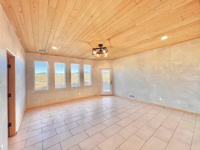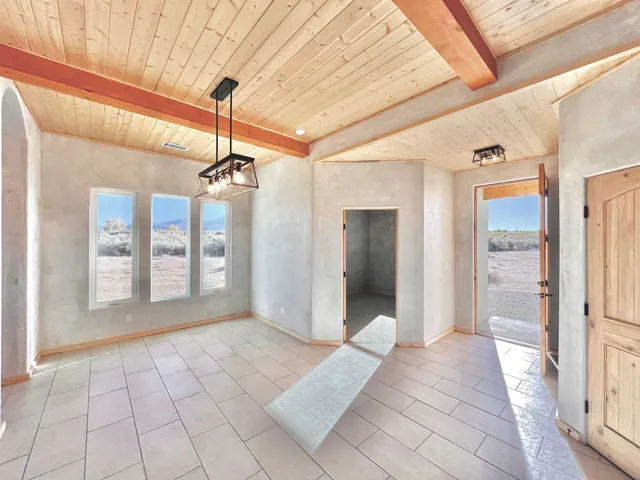 Discover a rare opportunity to enjoy golf-course living without the constraints of HOA dues or restrictive covenants. Positioned along the outskirts of the 3rd fairway at the renowned Taos Country Club Golf Course, this newly built custom residence captures the essence of upscale desert living—serene, sophisticated, and surrounded by breathtaking natural beauty. Set on 1.27 expansive acres, the home offers unobstructed panoramic views of the Sangre de Cristo Mountains, the dramatic Taos Valley, and the rugged Rio Pueblo Gorge. Outdoor enthusiasts will appreciate immediate access to world-class hiking, biking, and the nearby UNM Taos Klauer Campus—all while enjoying the ease of a quick southbound drive toward Santa Fe. Crafted in an elegant pueblo-inspired architectural style, the home showcases impeccable workmanship and timeless Southwestern design. Inside, 2,430 square feet of refined living space features hand-laid tile floors, tongue-and-groove and beam ceilings, Diamond Finish plaster walls, and select-pine custom cabinetry. High ceilings and strategically placed windows flood the interior with natural light, capturing sunrise, sunset, and mountain vistas from multiple rooms. The gourmet kitchen serves as the heart of the home, appointed with granite countertops, a high-tech gas range with built-in air-fryer, and large picture windows framing unforgettable views. The living room is equally inviting, anchored by a beautifully designed fireplace that adds warmth and ambiance to the space. With four bedrooms and two and a half baths, the home thoughtfully balances luxury with functionality. The primary suite features privacy and comfort, while the additional bedrooms, elegantly carpeted, provide versatility for family or guests. The residence is engineered for year-round comfort with central heating, refrigerated air, a TPO roof with attic insulation, and a tankless water heater for efficiency. Modern convenience continues with smart-home technology that allows remote control of the garage doors, climate systems, and water heater. An oversized two-car garage with an insulated 8’ x 16’ door ensures vehicles and gear are protected from the elements, completing this exceptional property. Experience luxury, privacy, and panoramic beauty—without compromise. Schedule your private viewing and discover a home that stands apart in one of Taos’s most coveted settings.