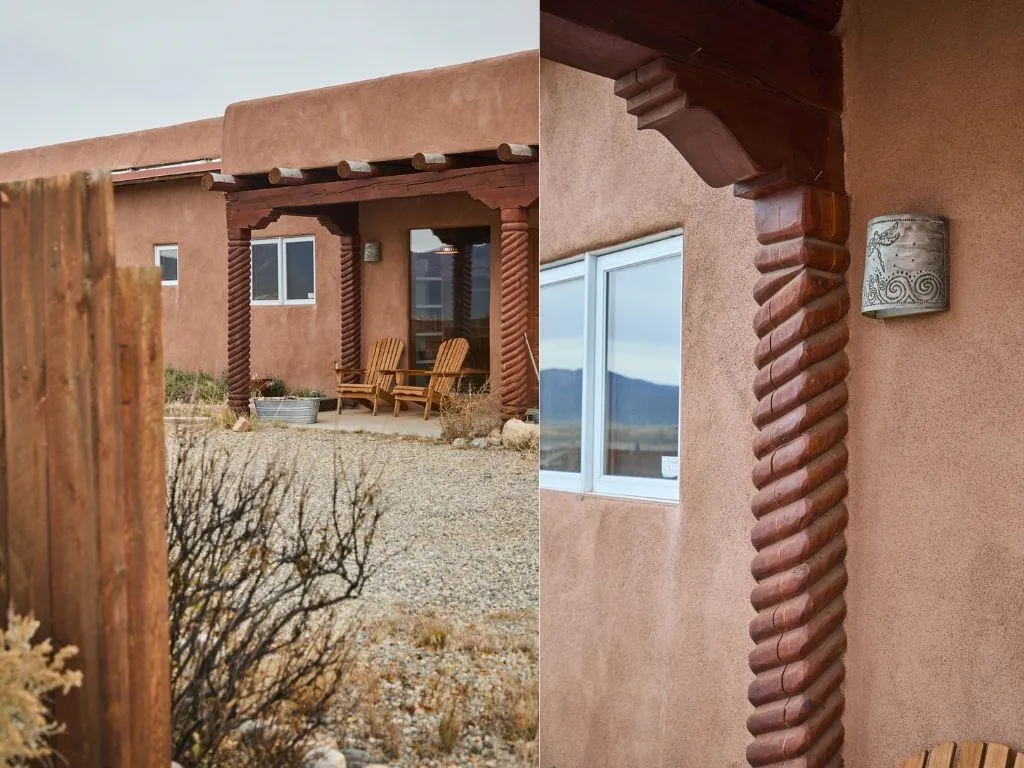 Perched at the top of Luz Del Monte, where the high desert opens its arms and the mountains rise in every direction, this perfectly laid-out 2-bed, 2-bath home invites you into a space that feels effortless, warm, and beautifully composed. An additional flex room, a third bedroom or a cute office if you work from home. Sunlight pours through the living room and kitchen windows, framing Pueblo Peak in soft morning light and painting the evenings in that unmistakable New Mexico glow. Inside, the home is draped in soothing neutrals and natural wood, an immaculate blank canvas ready for your style, your art, and your rhythm of life. A classic Southwestern kiva-style fireplace anchors the generous living area, adding a touch of soul and tradition to the open-concept layout. The kitchen flows with intention: custom natural-wood cabinetry, an efficient breakfast bar, and subtle, sophisticated lighting that infuses the space. Every inch of the square footage is used with precision. The two bedrooms are bright, neutral, and serene. Each with thoughtful access to well-designed bathrooms accented with a whisper of New Mexico tile and a refined, modern palette. An additional flex room offers the gift of options: a private office, a creative studio, or a third bedroom or nursery whatever your life calls forward next. An efficient laundry room also offers a nice living flow in this home. Step outside to the covered front porch and breathe in those sweeping, unobstructed views of the mountains and desert in all directions. Privacy fencing on both sides of the home and a gated driveway create a quiet sense of retreat, while ample parking and easy turnaround space make living here both elegant and practical. Whether you’re searching for a primary residence, a clean and efficient landing place in Taos, or a smart long-term/short term rental opportunity, this home offers exceptional value wrapped in timeless New Mexico charm. A neutral sanctuary. A mountain-view perch. A high-desert invitation to live, create, and settle right in. ALL furnishing convey with this property, a real perk.