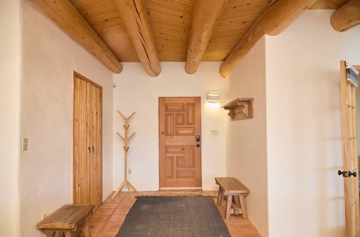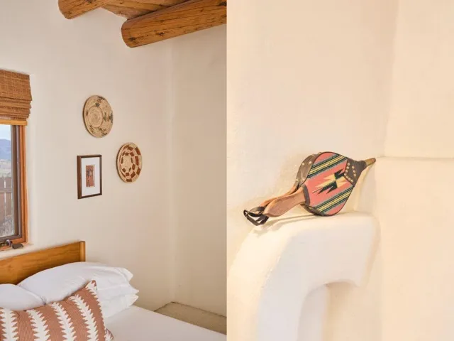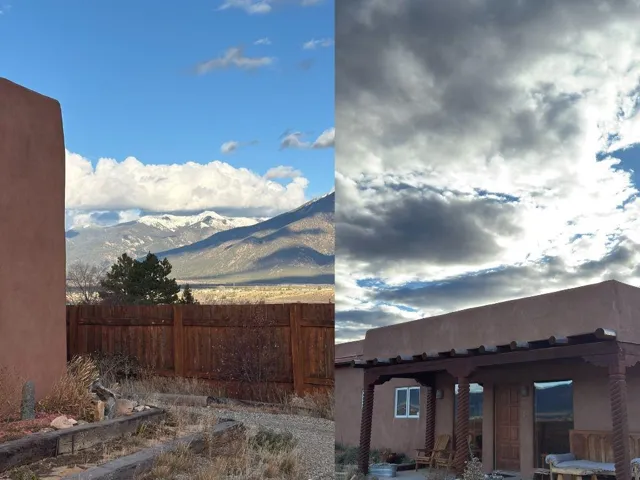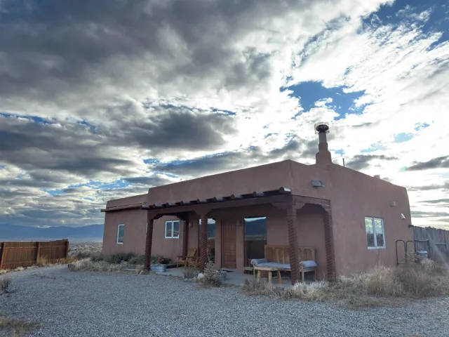 Perched at the top of Luz Del Monte, where the high desert opens its arms and the mountains rise in every direction, this perfectly laid-out 2-bed, 2-bath home invites you into a space that feels effortless, warm, and beautifully composed. An additional flex room, a third bedroom or a cute office if you work from home. Sunlight pours through the living room and kitchen windows, framing Pueblo Peak in soft morning light and painting the evenings in that unmistakable New Mexico glow. Inside, the home is draped in soothing neutrals and natural wood, an immaculate blank canvas ready for your style, your art, and your rhythm of life. A classic Southwestern kiva-style fireplace anchors the generous living area, adding a touch of soul and tradition to the open-concept layout. The kitchen flows with intention: custom natural-wood cabinetry, an efficient breakfast bar, and subtle, sophisticated lighting that infuses the space. Every inch of the square footage is used with precision. The two bedrooms are bright, neutral, and serene. Each with thoughtful access to well-designed bathrooms accented with a whisper of New Mexico tile and a refined, modern palette. An additional flex room offers the gift of options: a private office, a creative studio, or a third bedroom or nursery whatever your life calls forward next. An efficient laundry room also offers a nice living flow in this home. Step outside to the covered front porch and breathe in those sweeping, unobstructed views of the mountains and desert in all directions. Privacy fencing on both sides of the home and a gated driveway create a quiet sense of retreat, while ample parking and easy turnaround space make living here both elegant and practical. Whether you’re searching for a primary residence, a clean and efficient landing place in Taos, or a smart long-term/short term rental opportunity, this home offers exceptional value wrapped in timeless New Mexico charm. A neutral sanctuary. A mountain-view perch. A high-desert invitation to live, create, and settle right in. ALL furnishing convey with this property, a real perk.