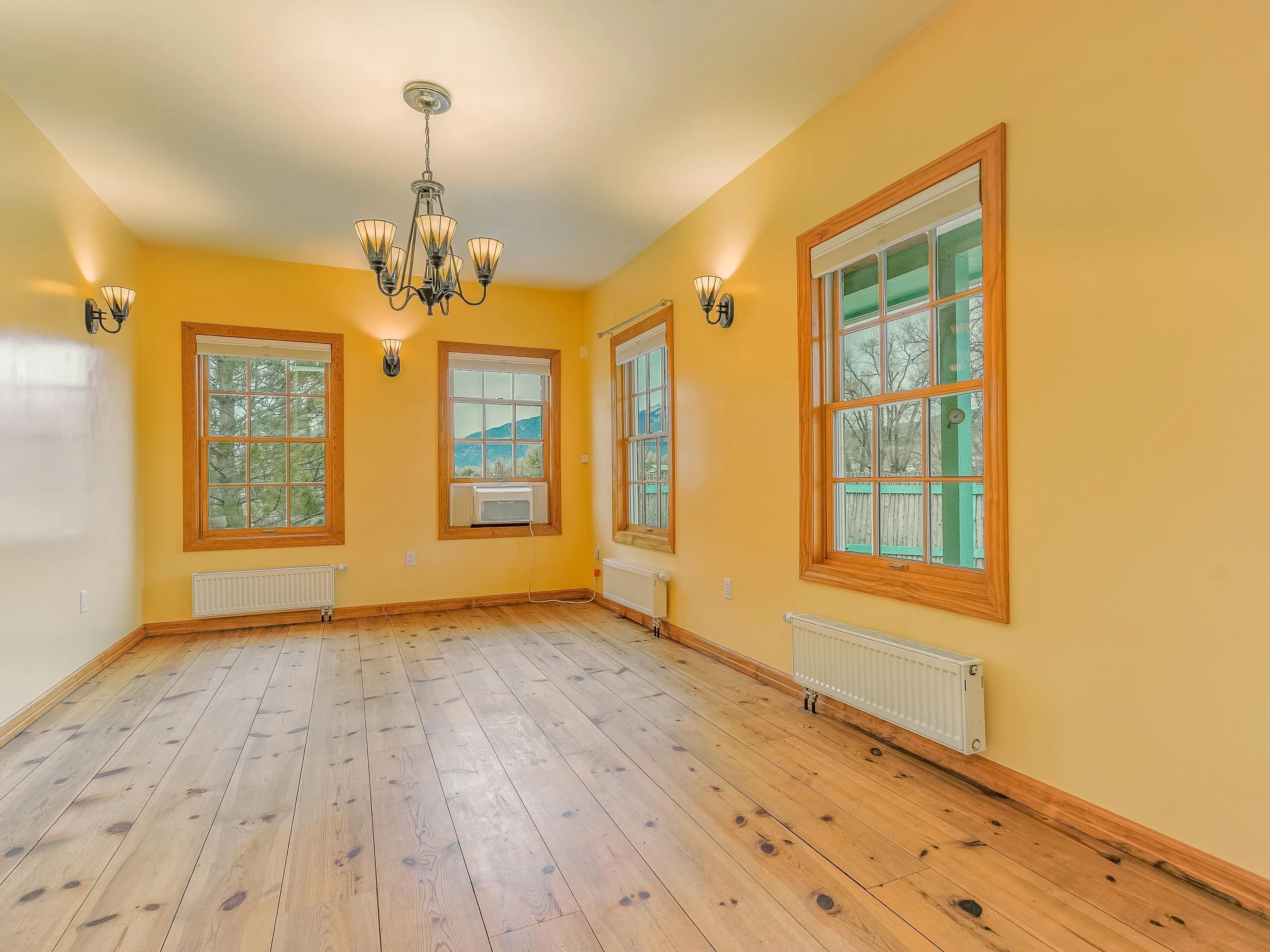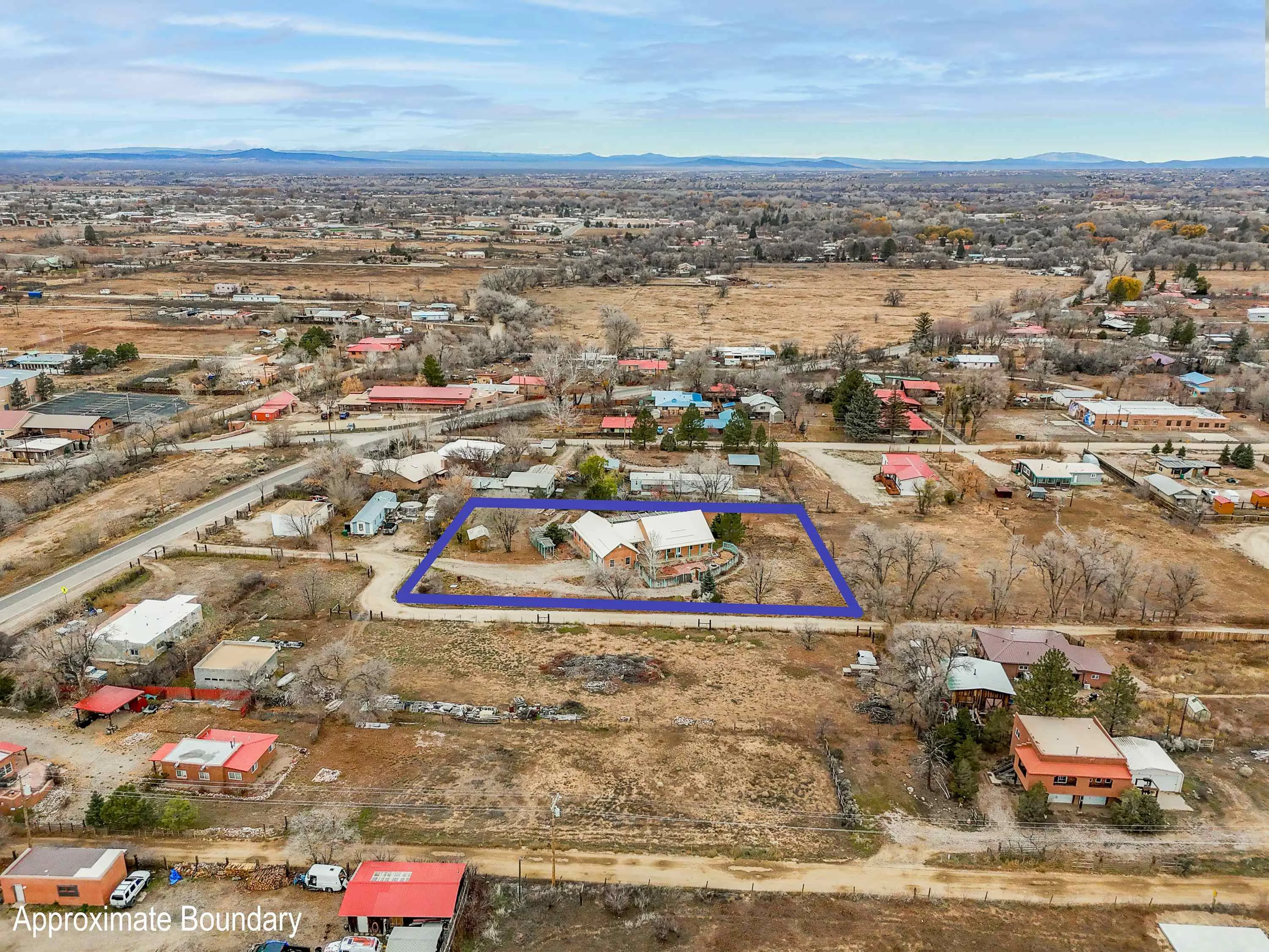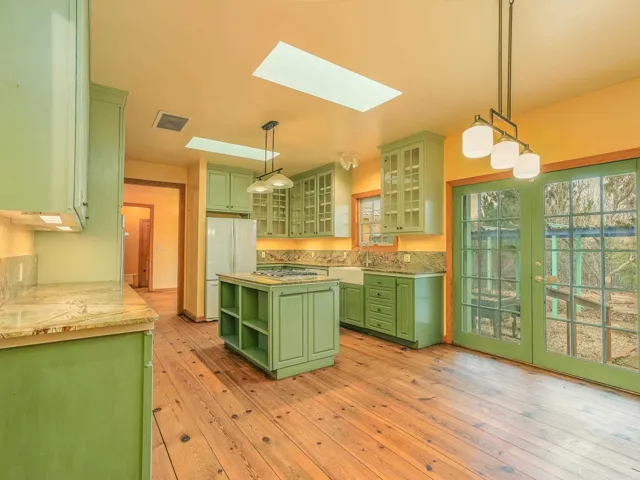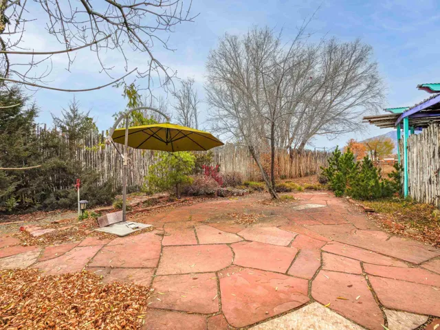 Just Off Kit Carson Road—1.4 Miles from Taos Plaza! This 2-bedroom, 2-bath home plus office offers 2,300 sq. ft. of Territorial-style living on 0.96 fenced acres with stunning north-facing views of the Sangre de Cristo Mountains. Inside, a formal living room with a pine-mantled fireplace sits across from the formal dining room highlighted by an art deco chandelier and sconces. The primary suite features a spacious ensuite and his-and-hers walk-in closets. The chef’s kitchen shines with ample cabinetry, an island, farmhouse sink, skylights, and gorgeous green marble countertops, plus a sunny kitchenette with French doors leading to the patio and cultivated gardens. Solid pine floors run throughout, with tile in the baths, laundry, and utility rooms. The home is comfortably warmed by European Buderus baseboard heating. Pergolas wrap around half the house, and in spring, the yard bursts with red and orange irises and red feathered poppies. Across the street, you can stroll over to the Taos Cow in the Anglada Building for a scoop of homemade ice cream and a taste of local flavor—just one more reason you’ll love calling this Taos retreat home.