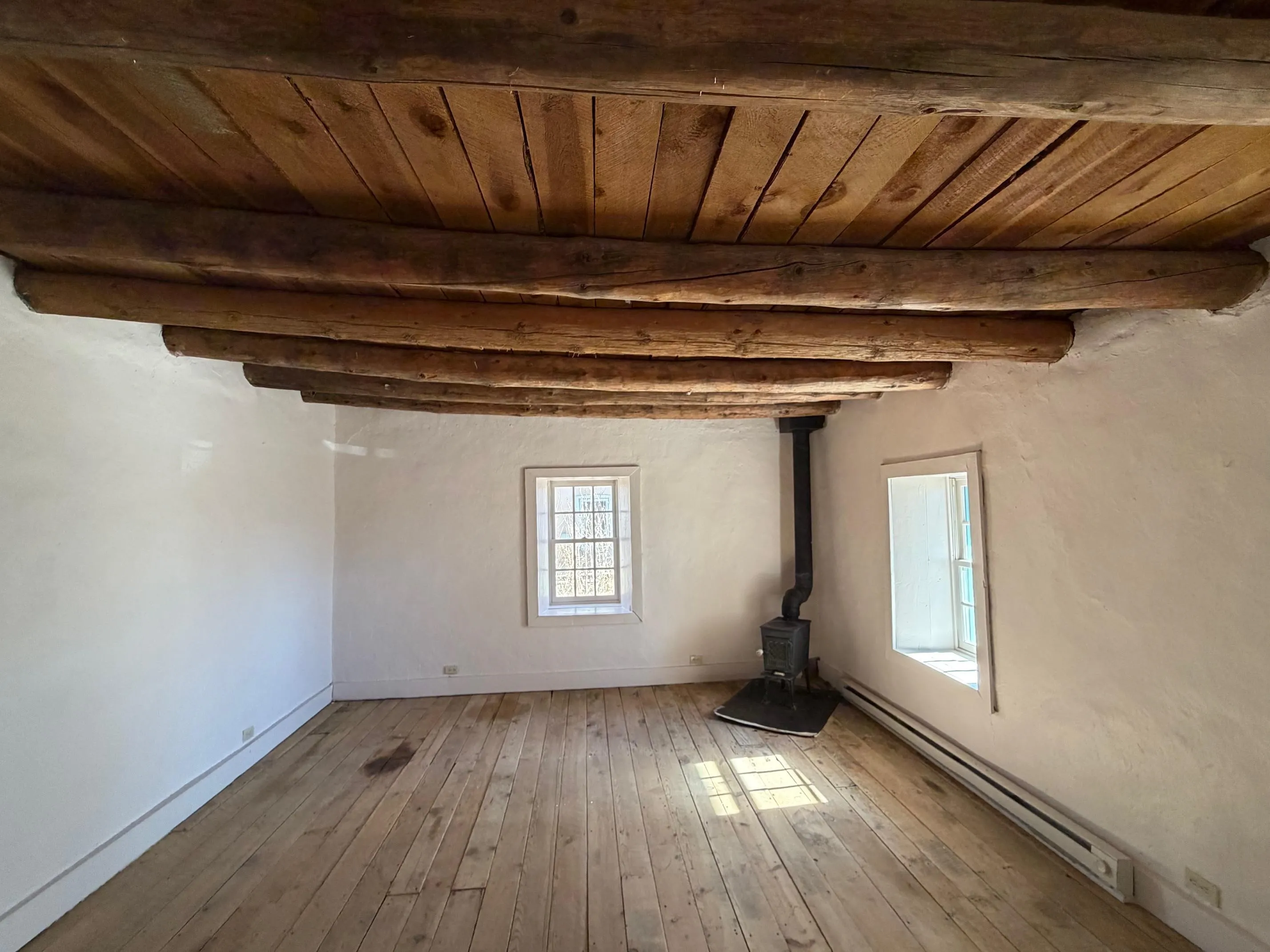 The Real Deal! A rare chance to own a true piece of Taos history. This 100-year-old, 2 bed/1 bath adobe home blends original mud-brick construction with glowing wood stoves, Viga ceiling beams, wood floors, thick walls, shade trees and a long covered portal. Located off the coveted Valdez Rim Rd at the gateway to Taos Ski Valley and snuggled into historic agricultural land, this little retreat will take you back in time. To simpler times in a setting that feels worlds away. The bath has been remodeled and features a tiled shower/tub, built-in shelves and a washer/dryer. There is a combination of baseboard heat and two woodstoves- one in the primary bedroom and a large one in the kitchen. This house is attached to the Upper Des Montes MDWCA Community water system and has a holding tank septic. If patina’d wood floors, thick adobe walls, wood framed windows, gracefully bowing vigas and crackling woodstoves are your thing, you have found it here. Weekend ski cabin or forever home, you decide. Classic. Authentic. Traditional. Timeless.