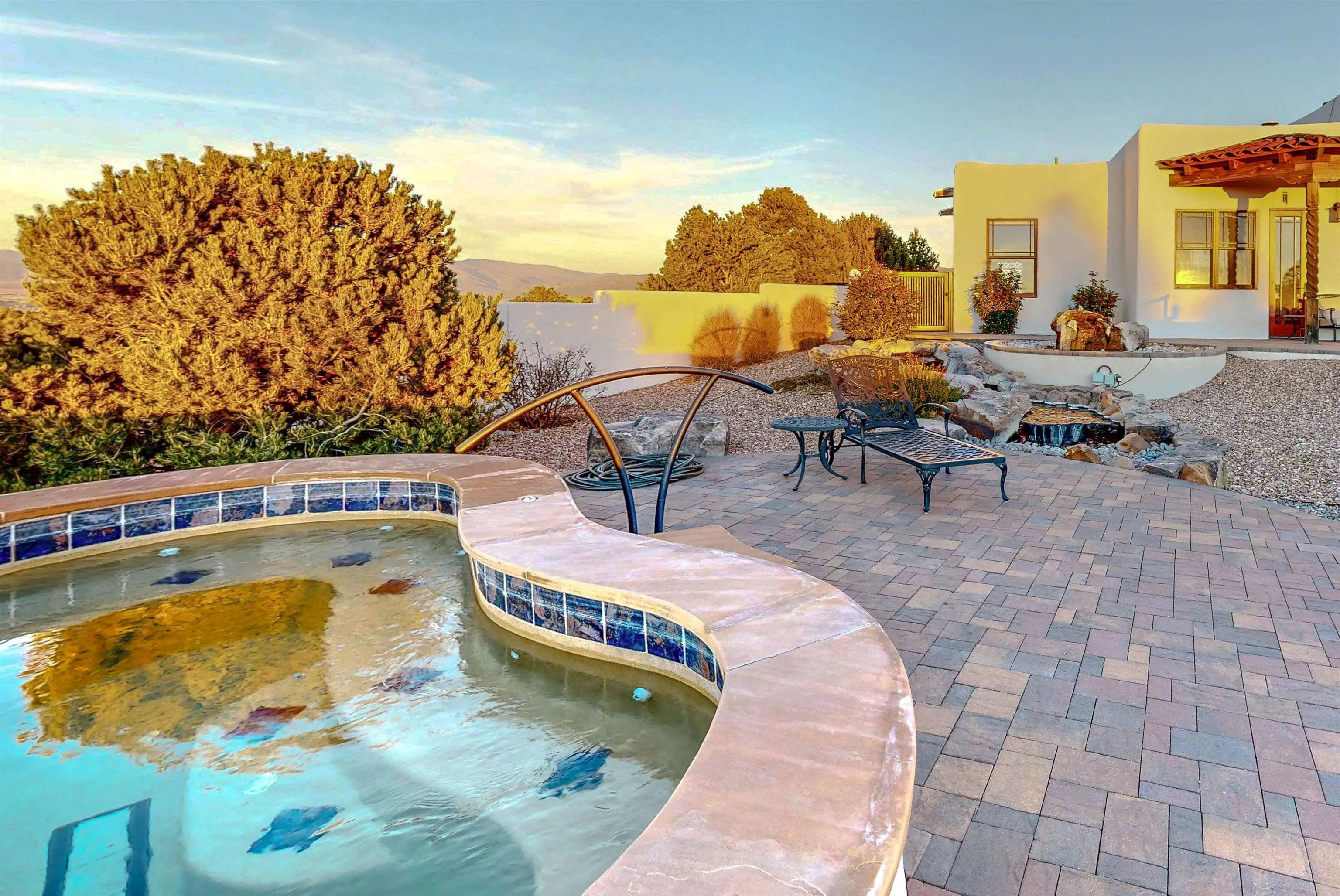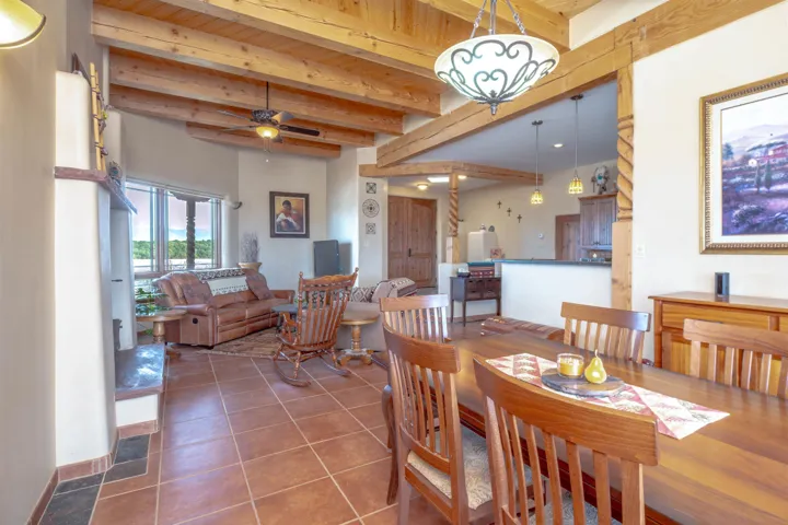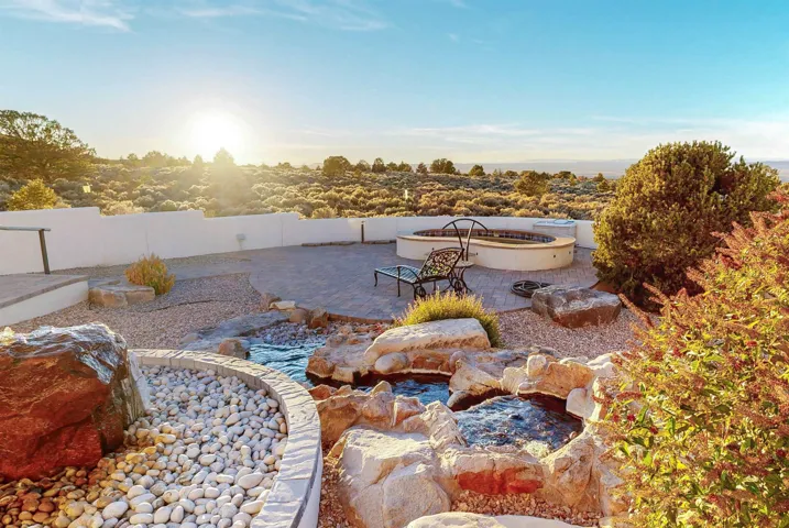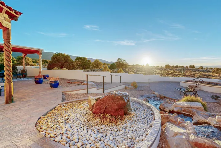 Welcome to one of the most breathtaking settings in northern New Mexico – a beautifully crafted 3-bedroom, 2.5-bath Rastra Block home on 10 pristine acres in the exclusive El Mirador neighborhood of the Taos Stakeout area. Designed and built by respected builder Mark Wilson, La Luz del Fuego (Fire Light) is a custom residence thoughtfully positioned to capture panoramic views of the Rio Grande Gorge, Taos Mountain, the Pedernal, Truchas Peaks, and the rolling foothills that make this region so iconic. Rastra Block construction ensures superb energy efficiency, staying warm in the winter and cool in the summer, while an upscale kitchen, open-concept living and dining areas, and well-designed split floor plan add to the home’s comfort and livability. The primary suite features its own fireplace and a spa-like bath. Outside, the transformation of the backyard into a true sanctuary is a masterpiece of design and craftsmanship. Enclosed by a beautifully finished stucco wall, this extraordinary outdoor living space features a custom 10-person hot tub/spa, a rock fountain with a faux stream and waterfall, extended portals for shaded dining, a custom staircase and railings, paver patios, elegant landscape lighting, drip irrigation, and Pentair remote-operated controls for the spa and water features. The result is a serene, private retreat that’s as stunning by day as it is magical at night. This property has been meticulously maintained and thoughtfully improved over the years, including a custom metal driveway gate, upgraded fiber internet, and front yard landscaping and irrigation. A full TPO roof replacement with redecking and warranties was completed in 2021, and a whole house restucco was completed in 2022. New tile flooring was completed in bedrooms two and three in 2023, and continued improvements in 2025 included a rebuilt flagstone walkway, spa system maintenance, and septic service. A rare offering in one of Taos’ most sought-after view corridors, this home blends exceptional construction, modern upgrades, and extraordinary outdoor living – all set against some of the most awe-inspiring scenery in New Mexico. This listing has an interior/exterior Matterport video and exterior drone video. Don’t let this one pass you by.