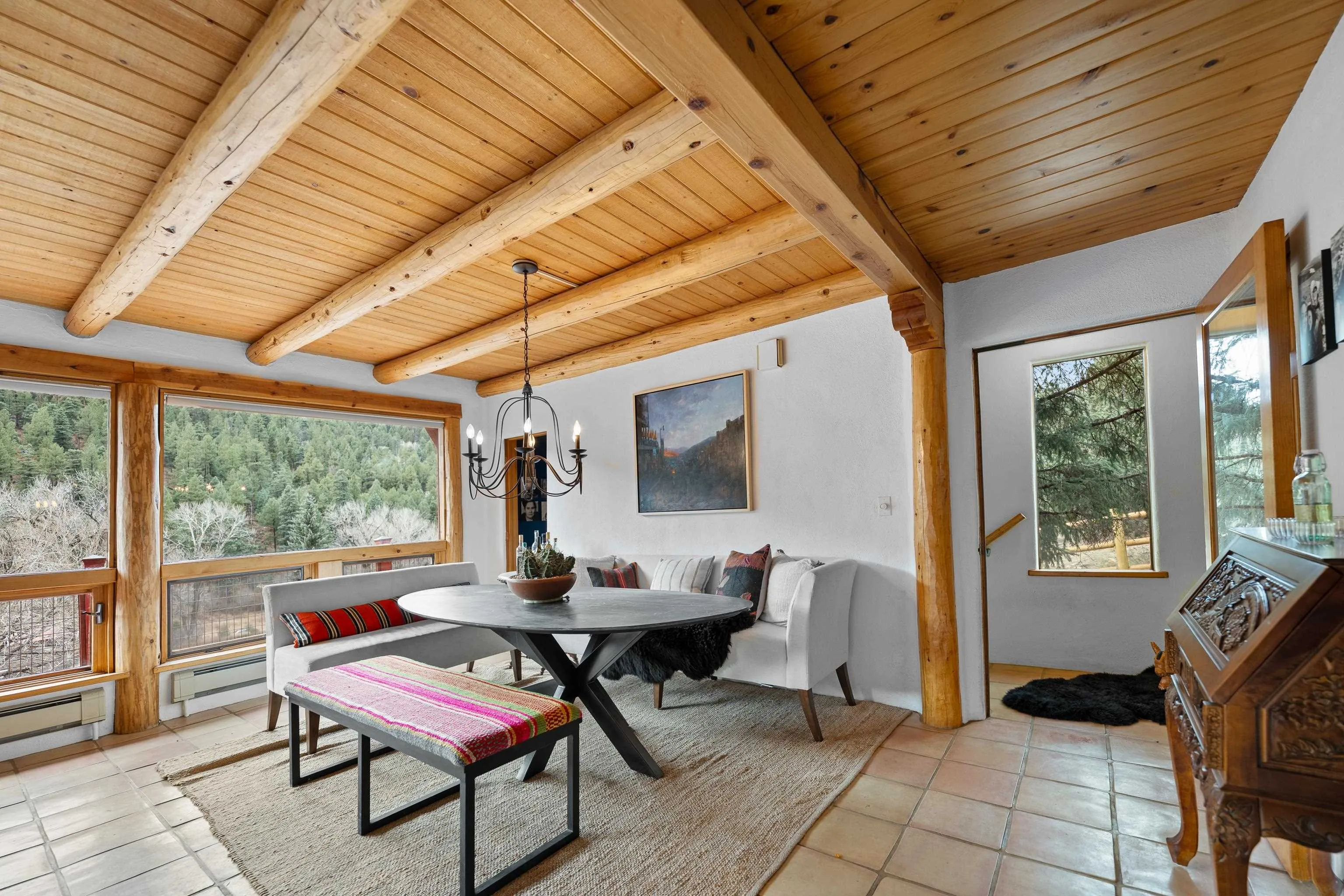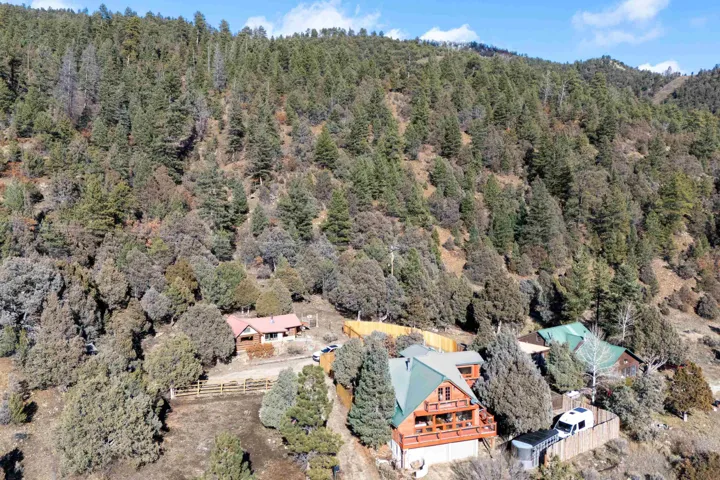 Just 10 minutes from the Plaza yet a world away, this 6.82-acre private retreat is the chic Taos getaway you’ve been waiting for. Stylish, cozy, and wonderfully versatile, the property offers room to breathe—and room for your horses, goats, chickens, and whatever else your countryside heart desires. The main home features three bedrooms, two baths, and *two* living rooms—ideal for spreading out, entertaining, or simply enjoying a little extra elbow room. South-facing and filled with warm natural light, the spaces feel serene and connected to the surrounding forest. Pour a cup of something delicious, sink into your stylish living room, and take in tranquil wooded views that shift with every season. And then there’s the bonus: a renovated mid-century cabin—one bedroom, one bath—perfect as a guest house, studio, or that creative escape you’ve been promising yourself. It’s bright, sunny, and sits on the “warm side of the street,” making it a year-round delight. A fenced backyard keeps pets happy, while the two-car garage adds practicality to the property’s charm. With acreage to roam and the Plaza just minutes away, this is the rare Taos property that blends privacy, personality, and possibility in all the right ways. If you’re searching for a home that feels like a retreat—but still keeps you close to everything—this one checks every box.