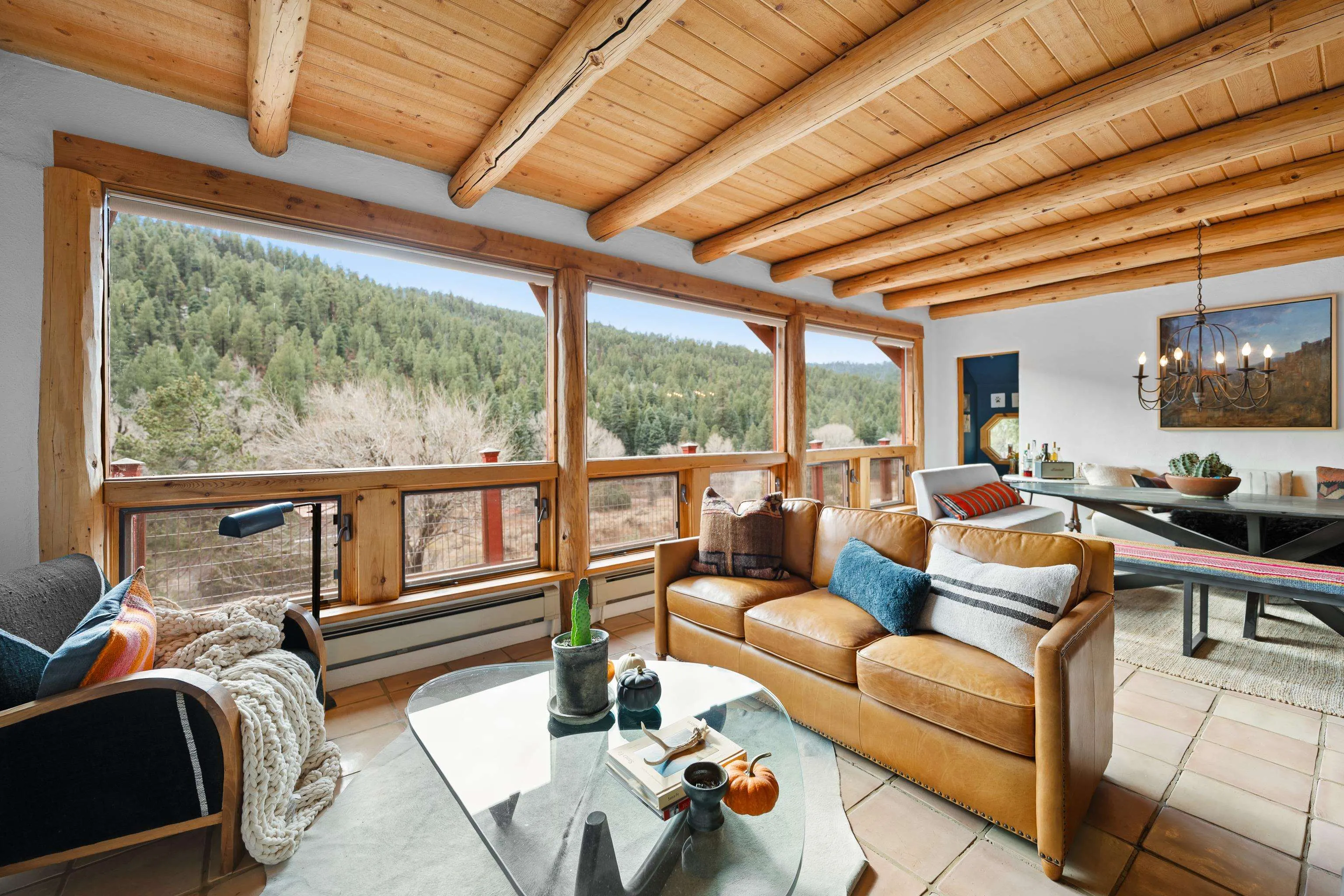 Just 10 minutes from the Plaza yet a world away, this 6.82-acre private retreat is the chic Taos getaway you’ve been waiting for. Stylish, cozy, and wonderfully versatile, the property offers room to breathe—and room for your horses, goats, chickens, and whatever else your countryside heart desires. The main home features three bedrooms, two baths, and *two* living rooms—ideal for spreading out, entertaining, or simply enjoying a little extra elbow room. South-facing and filled with warm natural light, the spaces feel serene and connected to the surrounding forest. Pour a cup of something delicious, sink into your stylish living room, and take in tranquil wooded views that shift with every season. And then there’s the bonus: a renovated mid-century cabin—one bedroom, one bath—perfect as a guest house, studio, or that creative escape you’ve been promising yourself. It’s bright, sunny, and sits on the “warm side of the street,” making it a year-round delight. A fenced backyard keeps pets happy, while the two-car garage adds practicality to the property’s charm. With acreage to roam and the Plaza just minutes away, this is the rare Taos property that blends privacy, personality, and possibility in all the right ways. If you’re searching for a home that feels like a retreat—but still keeps you close to everything—this one checks every box.