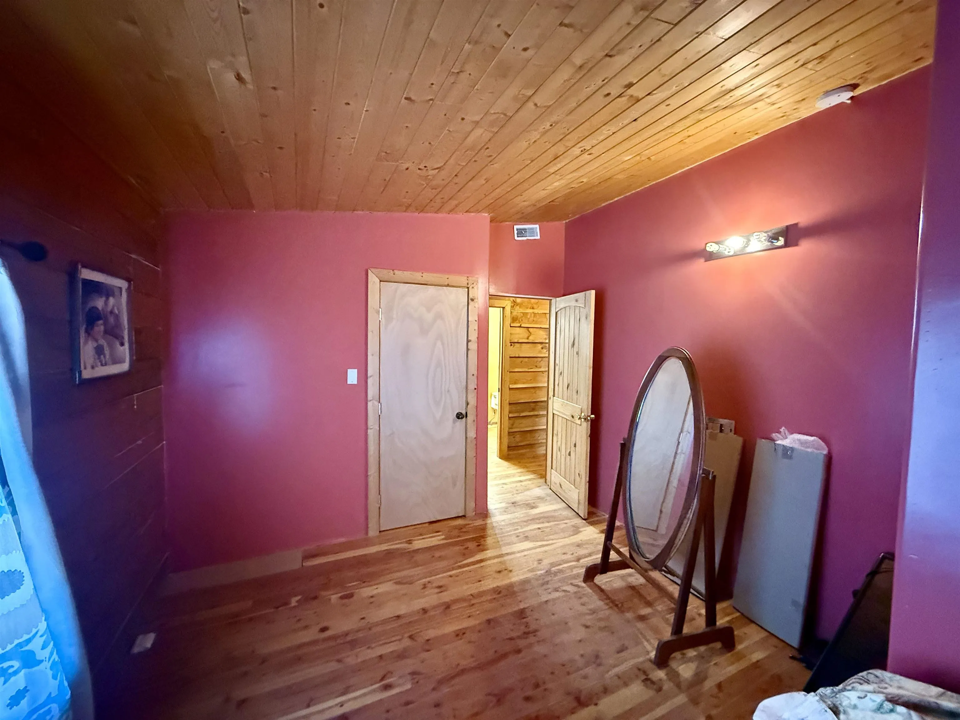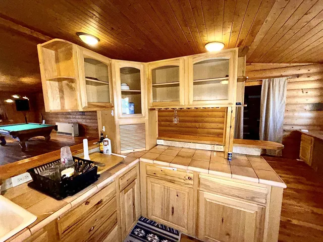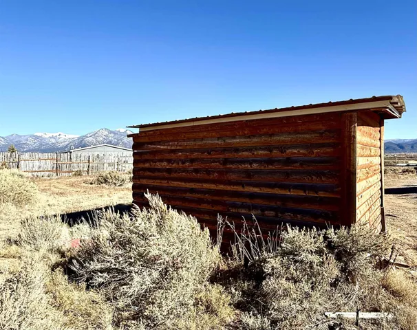 Charming log cabin with tons of character! Holds heat very nicely in the winter and stays cool in the summer. The master bedroom and living room have electric radiant heat and the 2nd and 3rd bedrooms have electric baseboards. There’s a wood stove and a third source of heat in the main living area – a space heater mounted to the ceiling. A nice, big open concept with so much square footage that an extra room could even be added if need be. A massive 2,700 square feet and a shed for storage outside. The home has a wrap around deck from the east to the north side and a covered porch at the north entrance. Perfect for BBQing, gatherings or watching the sunset on the mountains. A beautiful view from the porch and plenty of space to store wood for the winter. Some fencing on the north side but more fencing could be added to the entire property. Electrical outlets installed into the floor all over the home to easily decorate for Christmas or to create a reading nook with ambiance lights. Wood floors throughout, tongue and groove ceilings throughout most of the home and huge closets in each room! The master bedroom has a closet big enough to hold two twin size beds! Lots of room and immense amounts of character with the log cabin. Not far from town (14 minutes), the ski valley (32 minutes), Colorado (1 hour), or Santa Fe (1 hour, 26 minutes).