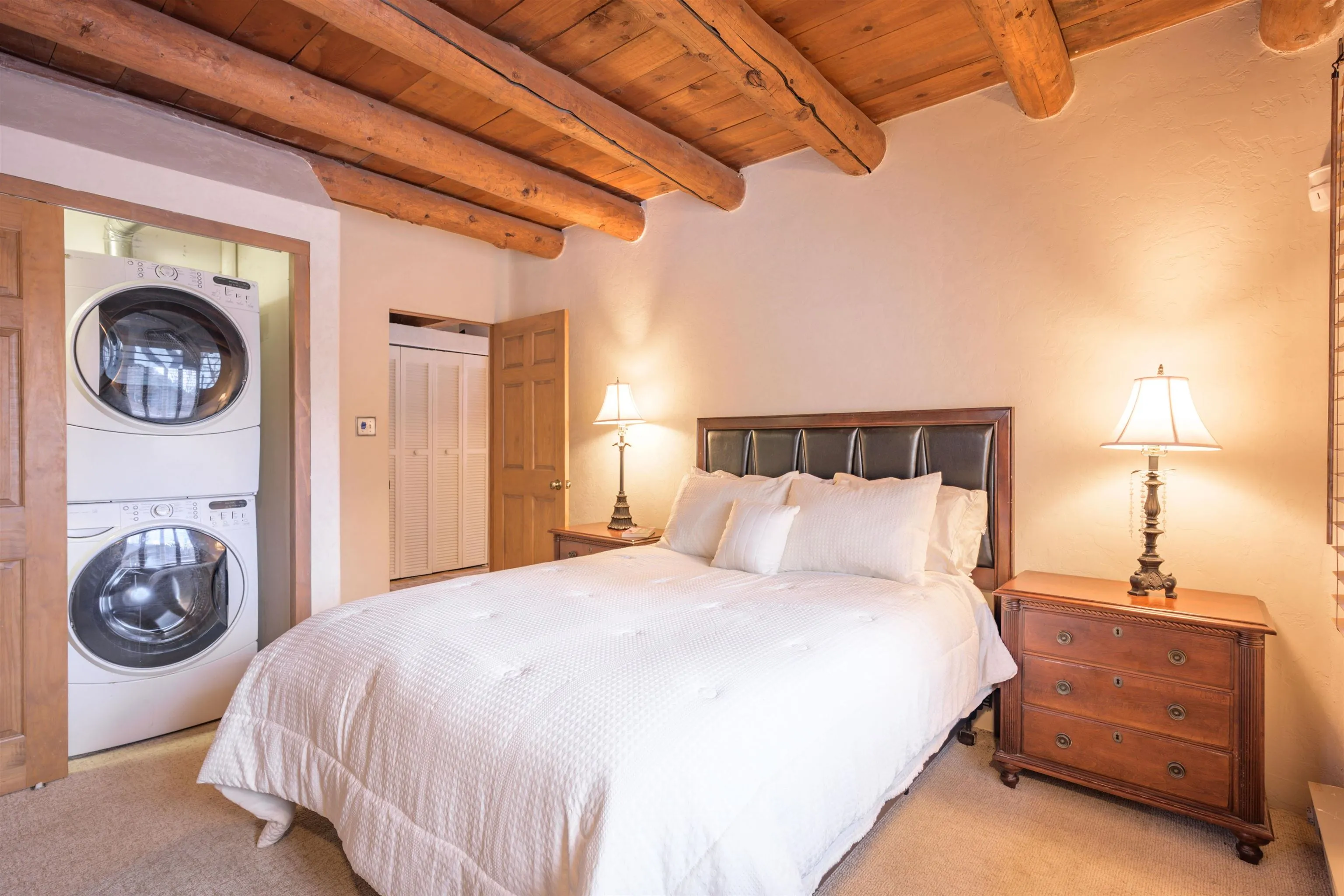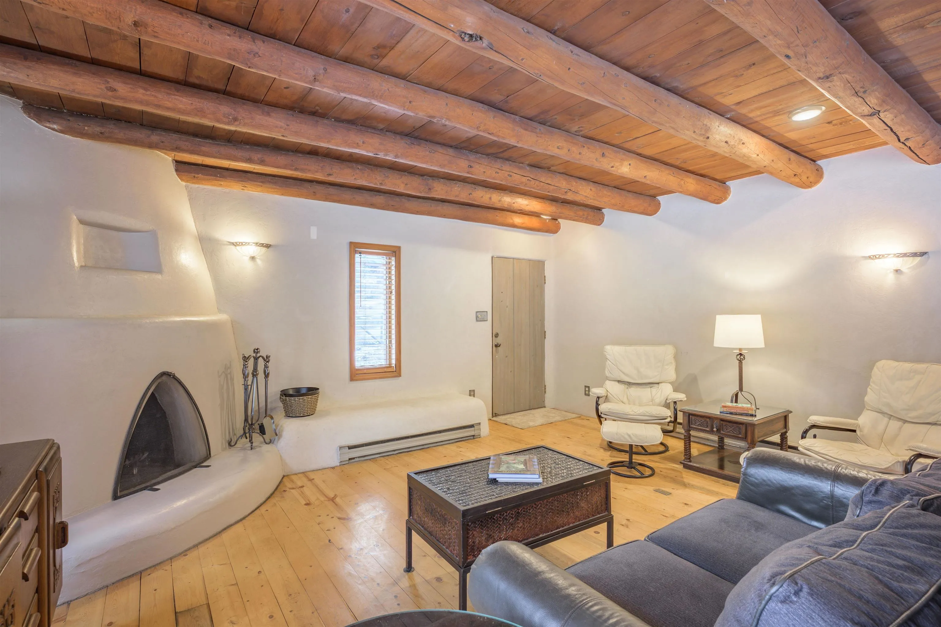 Your Winterwonderland Awaits! This turn key gem is being sold furnished as dipicted in the photos. Nestled in the heart of Taos Canyon along the Rio Fernando, this charming 1-bedroom adobe home offers a serene retreat on 0.91 acres of lush, wooded surroundings. Set back from the road and enveloped by mature trees, the property feels private and peaceful—an ideal escape just minutes from Taos and a short, scenic drive to Angel Fire or Taos. Inside, classic Southwestern craftsmanship shines through with vigas, tongue-and-groove ceilings, plaster walls, and a cozy kiva fireplace that warms the open living space. Large windows line the dining and living areas, bringing in natural light and uninterrupted views of the grassy yard and forest beyond. The updated kitchen features warm wood cabinetry, tile accents, stainless steel appliances, and a breakfast bar that blends seamlessly into the living space. The spacious bedroom includes its own kiva-style fireplace and looks out onto the surrounding greenery. A full bath and a conveniently located laundry closet complete the interior. Outdoor living is where this property truly stands out. Enjoy a morning coffee on the side patio, host gatherings on the large deck, or wander down to your own stretch of the Rio Fernando, where a shaded seating area offers a perfect spot to relax beside the running water. With nearly an acre of usable land, there’s ample room for gardening, pets, and outdoor recreation. Whether you’re looking for a year-round residence or a tranquil mountain getaway, this Taos Canyon gem brings together privacy, natural beauty, and timeless Northern New Mexico character. This Gem Won’t Last Long! Reach Out Today to Schedule Your Exclusive Showing! NOTE: Fire in fireplaces are virtually staged.