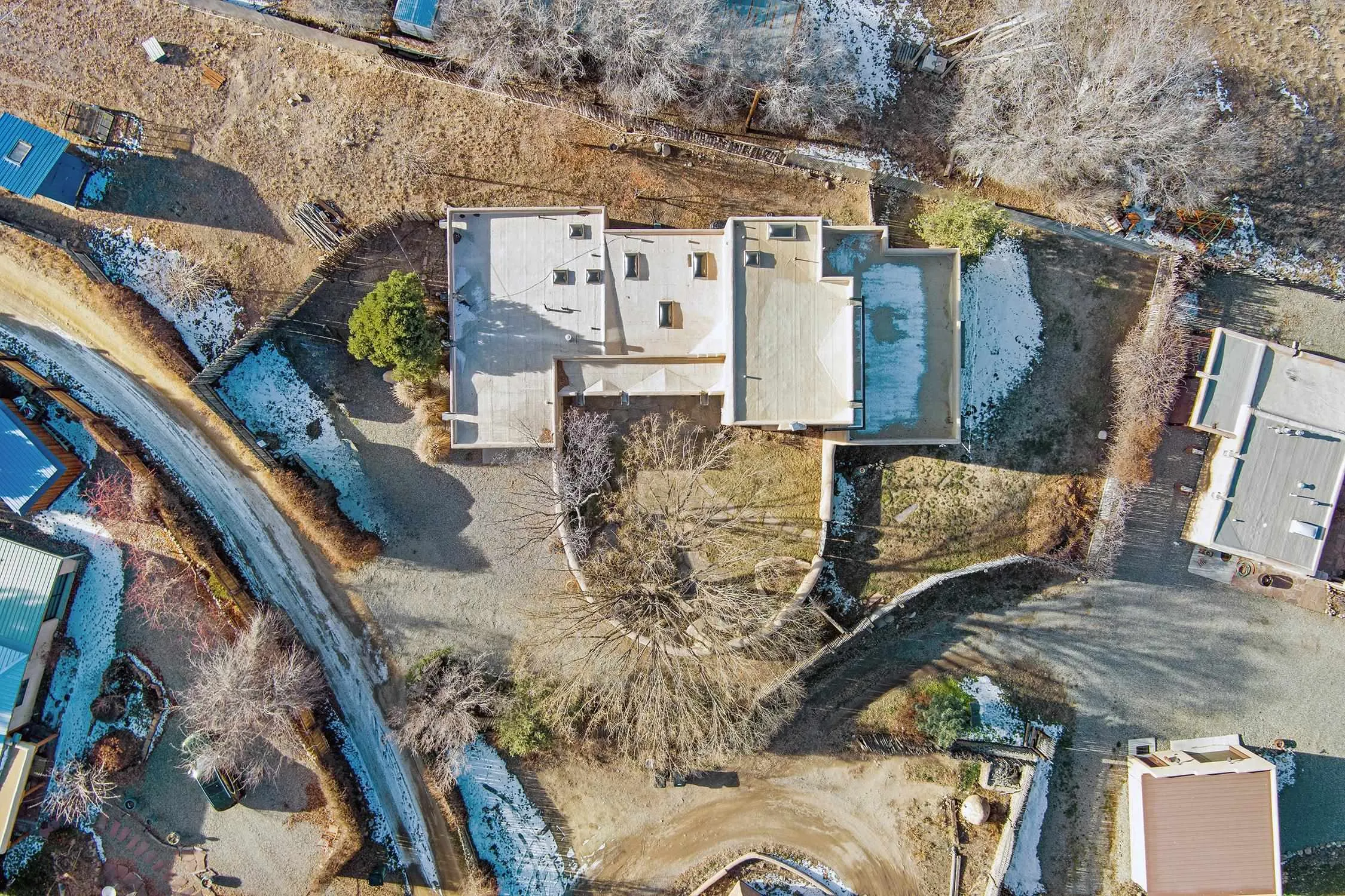 Nestled on over half an acre on the south end of Taos, this elegant 2,721 sq ft home perfectly captures the beauty, warmth, and spirit of Northern New Mexico. Step inside and feel the charm of classic Southwest design — graceful vigas and beams, Saltillo tile, stained concrete and wood floors, and abundant natural light streaming through skylights. The two-story layout offers 4 bedrooms, 3 baths, with the smaller bedroom being ideal to use as an office, studio, or nursery. Upstairs, a private suite features an ensuite bath, breathtaking Taos Mountain views, and access to a rooftop lounging area — the perfect spot to unwind beneath the New Mexico sky. Outside, you’ll find gardens, grassy spaces, and a patio with a fireplace, creating a tranquil setting for morning coffee or sunset gatherings. A flexible downstairs layout offers the potential for a glorious primary suite or even a lock off suite — ideal for guests, extended family, or rental income. Beautifully designed and filled with light, this home offers comfort, versatility, and a sense of place that is uniquely Taos.