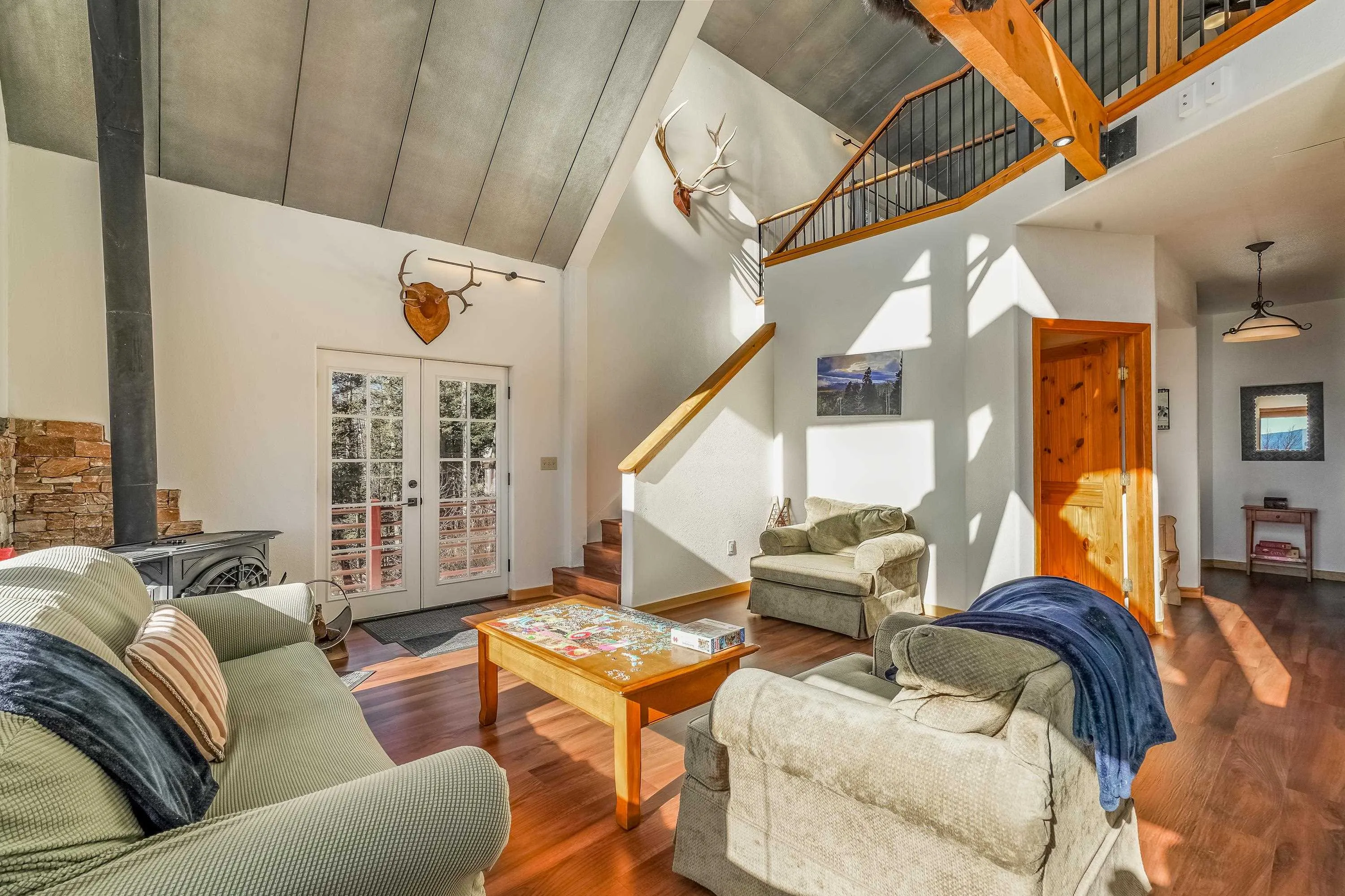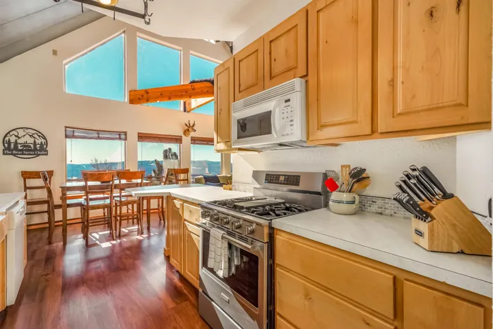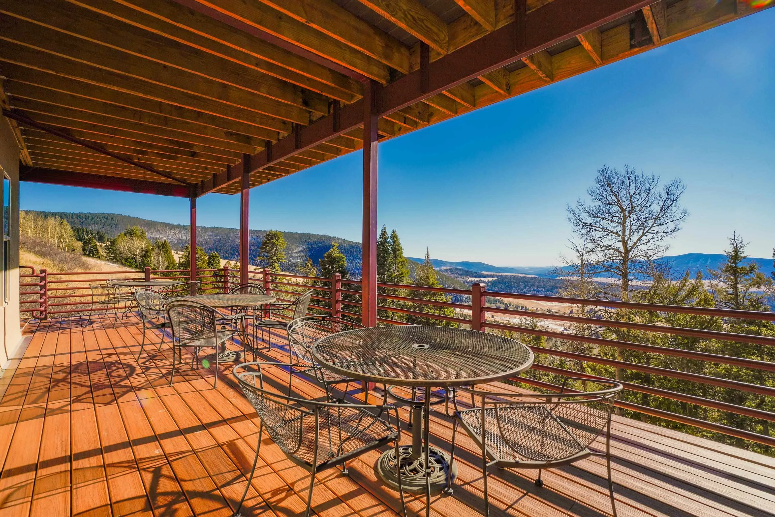 There’s living in the mountains… and then there’s living above them. That’s what 598 El Camino Real feels like, a ridge-top perch where the world opens up in every direction. The first thing you notice are the views. They’re not “pretty” views… they’re the kind that stop you mid-sentence because your brain needs a second to catch up. Eagles glide past the deck like they own the place, and sunsets spill across the peaks in colors that never look the same twice. The home itself has this easy, comfortable mountain energy, nothing fussy, nothing trying too hard. Just light, space, warmth, and that feeling of, yeah… I could stay here awhile. With three levels, vaulted ceilings, and windows that frame the landscape like giant art pieces, it’s built for people who want room to gather but also room to wander off and breathe. One of the best parts? Two separate living areas, each with its own kitchen. It’s perfect for extended family, guests who love to linger, or days when everyone needs their own rhythm. There’s even a loft with a full bath that feels like the perfect retreat for reading, working, or hiding with a blanket when the weather turns dramatic. Outside, the wooded lot gives you that classic Angel Fire feeling, tucked into the trees, surrounded by quiet, yet close enough to town to keep life easy. It’s the kind of property where morning coffee happens on the deck because the clouds literally drift below you. And evenings? They’re for slowing down, watching the sky catch fire, and reminding yourself that yes… you really do live here now. Life on this mountain top moves at a different pace. A better one. There’s space to breathe, space to reset, space to remember what matters. Whether you’re hosting a crowd for ski weekends or sneaking away for peaceful summers, this home stretches to fit whatever season of life you’re in. If you’ve been craving a mountain escape that feels both elevated and deeply grounding, a place with perspective, privacy, and that “wow” moment every time you step outside, this chalet on El Camino Real is ready to welcome you in. Come stand on that deck. The mountain will do the rest.