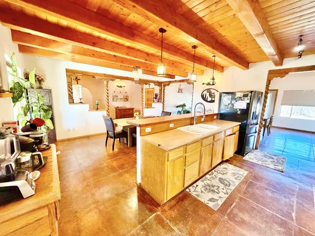 Discover Your Dream Home in the Los Cordovas Valley. Immerse yourself in the epitome of luxury at this exquisite residence nestled in the heart of the Los Cordovas Valley. With an expansive footprint of approximately 2,908 square feet, this four-bedroom, two-bathroom home boasts ample space to accommodate your cherished lifestyle. Encompassing an expansive 1.75 acres of land, the property features an attached three-car garage and a detached two-car garage, providing ample parking for your vehicles. The surrounding landscape is a harmonious blend of beautiful landscaping, enclosed by fencing and stucco walls, creating an unobstructed vista of Taos Mountain and Pueblo Peak. Indulge in moments of tranquility under the covered porches adorning the North, South, and West sides of the home. The property’s entertainment areas are meticulously designed to cater to your discerning tastes, featuring mature trees, lush greenery, a fire pit, and an array of additional amenities. Upon entering the home, you will be enveloped in a luxurious ambiance. Heated radiant cement slab floors, tongue-and-groove wood ceilings, decorated with vigas, plaster walls, and updated appliances contribute to the refined atmosphere. The spacious and well-appointed rooms exude a cozy and inviting atmosphere, perfect for a wide-open yet intimate living experience. Schedule an appointment with us today to experience this magnificent home firsthand, whether through an in-person visit or a virtual tour.