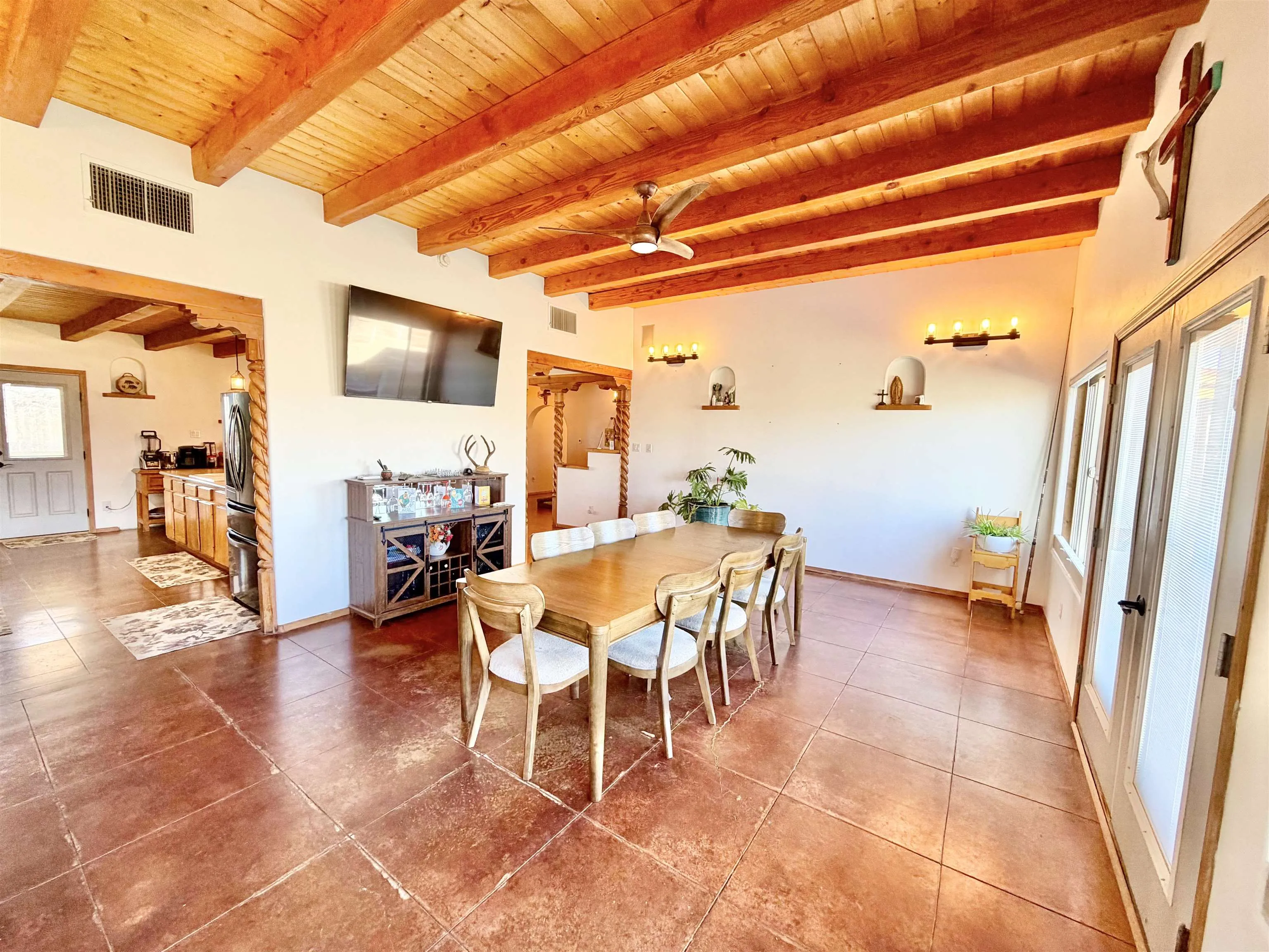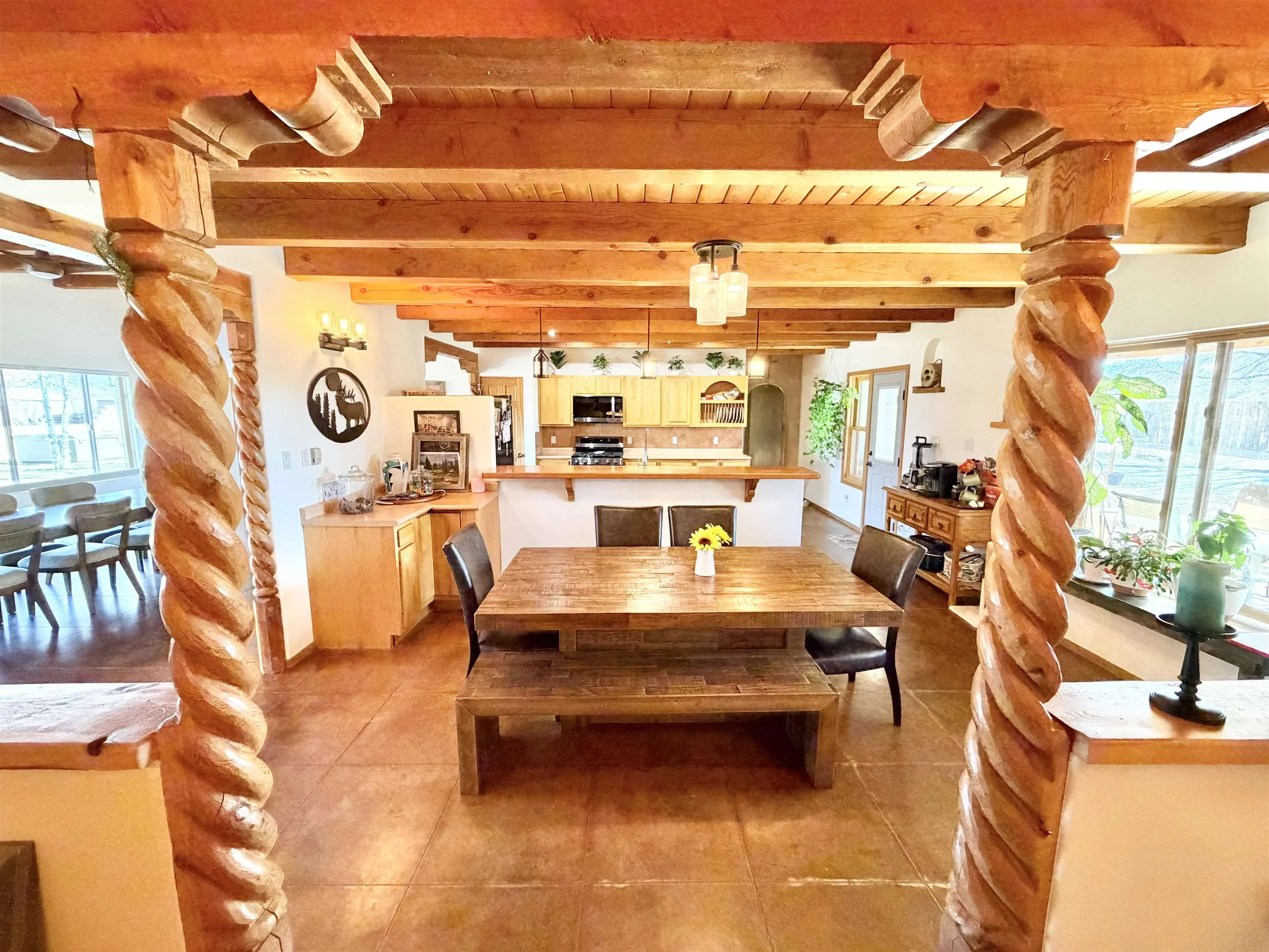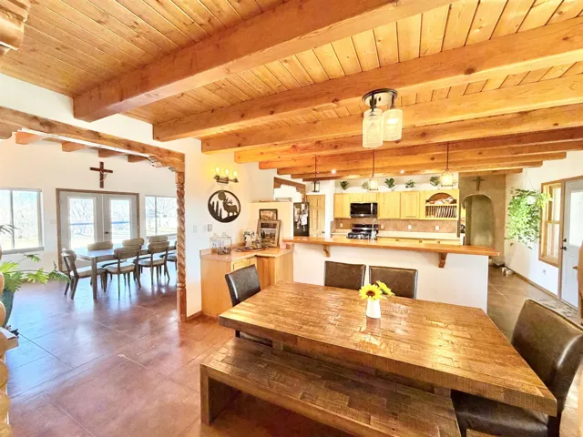 Discover Your Dream Home in the Los Cordovas Valley. Immerse yourself in the epitome of luxury at this exquisite residence nestled in the heart of the Los Cordovas Valley. With an expansive footprint of approximately 2,908 square feet, this four-bedroom, two-bathroom home boasts ample space to accommodate your cherished lifestyle. Encompassing an expansive 1.75 acres of land, the property features an attached three-car garage and a detached two-car garage, providing ample parking for your vehicles. The surrounding landscape is a harmonious blend of beautiful landscaping, enclosed by fencing and stucco walls, creating an unobstructed vista of Taos Mountain and Pueblo Peak. Indulge in moments of tranquility under the covered porches adorning the North, South, and West sides of the home. The property’s entertainment areas are meticulously designed to cater to your discerning tastes, featuring mature trees, lush greenery, a fire pit, and an array of additional amenities. Upon entering the home, you will be enveloped in a luxurious ambiance. Heated radiant cement slab floors, tongue-and-groove wood ceilings, decorated with vigas, plaster walls, and updated appliances contribute to the refined atmosphere. The spacious and well-appointed rooms exude a cozy and inviting atmosphere, perfect for a wide-open yet intimate living experience. Schedule an appointment with us today to experience this magnificent home firsthand, whether through an in-person visit or a virtual tour.