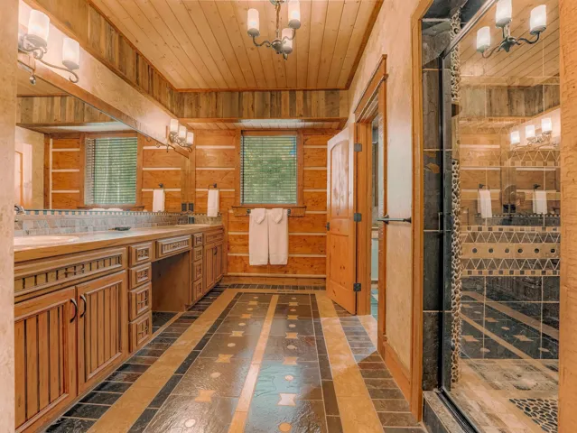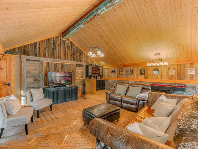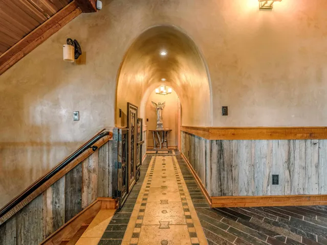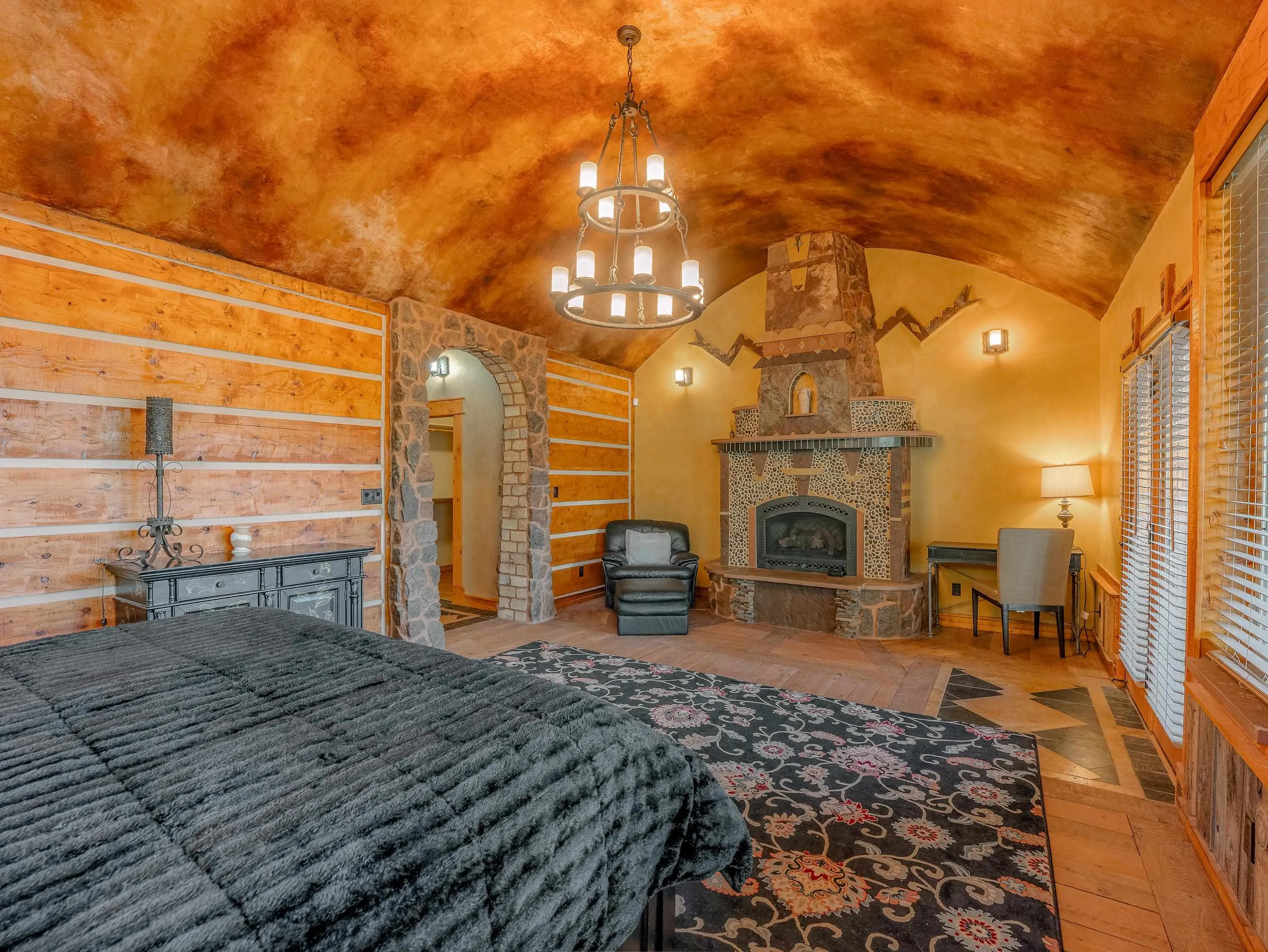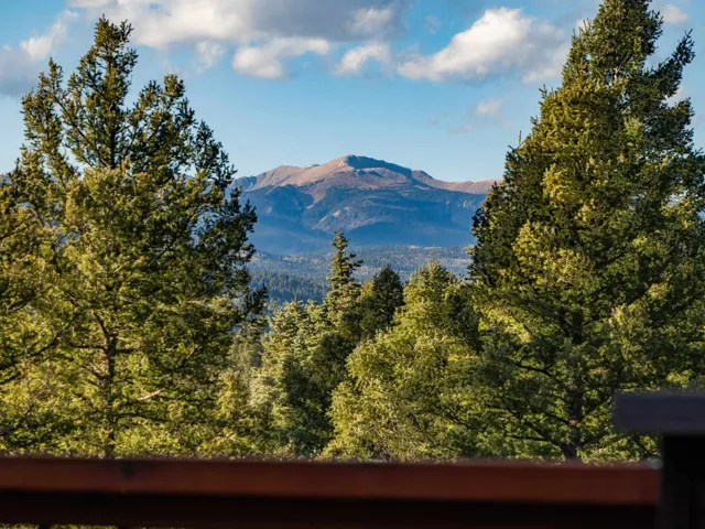 Known as Woodland Castle, this one-of-a-kind architectural masterpiece was designed and built by renowned artist Ray Renfro. Featuring over 7,000 sq. ft. of intricate artistry with a style all its own, the unbelievable level of custom detail defies description and must be seen to be truly appreciated. The home sits on over 2.5 acres of beautiful woodland and backs up to greenbelt space. The tallest peaks in New Mexico are framed like a picture from the back deck. The property is in a perfect location with the privacy and feel you’re looking for in a mountain home but also just across the street from Monte Verde Lake, three minutes from the golf course, five minutes from the grocery store, and seven minutes from the ski lifts. There are four separate living areas; the main floor living room, a walkout living room downstairs, a spacious loft, and ‘the pub.’ The main floor living room features majestic vaulted ceilings, a towering fireplace, and a fantastic view of the mountains through the floor-to-ceiling window wall. The pub has a wet bar, an ice-maker, fireplace, and is set up for parlor games, arcade games, card games, or just catching the game on T.V. The kitchen has a standard oven and a steam oven, plenty of countertop space, tons of cabinets, and a large walk-in pantry. A highlight of the home is the four primary suites, three of which offer direct access to the decks. There is also a large bedroom/bunkroom downstairs, and an office that can be utilized as a bedroom, fitness room, crafting room… you name it! The fully furnished decks include two propane fire pit tables. There are plentiful covered areas and ample space to get some sun. The upper deck has a direct line-of-sight view of Wheeler Peak; the lower deck features an extra large hot tub. There are a lot of incredible homes but there is only one Woodland Castle, truly a marvel of creative architecture.