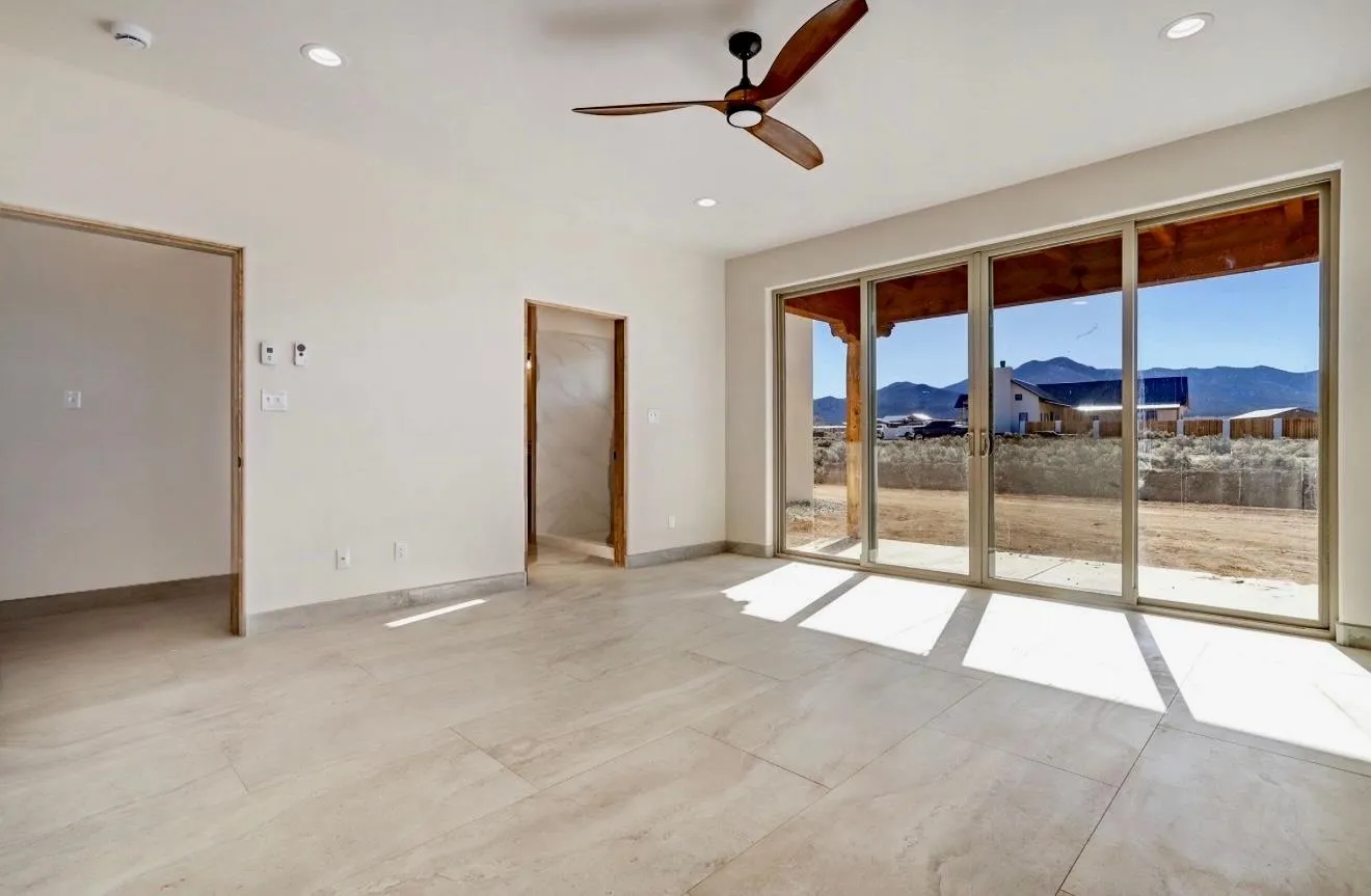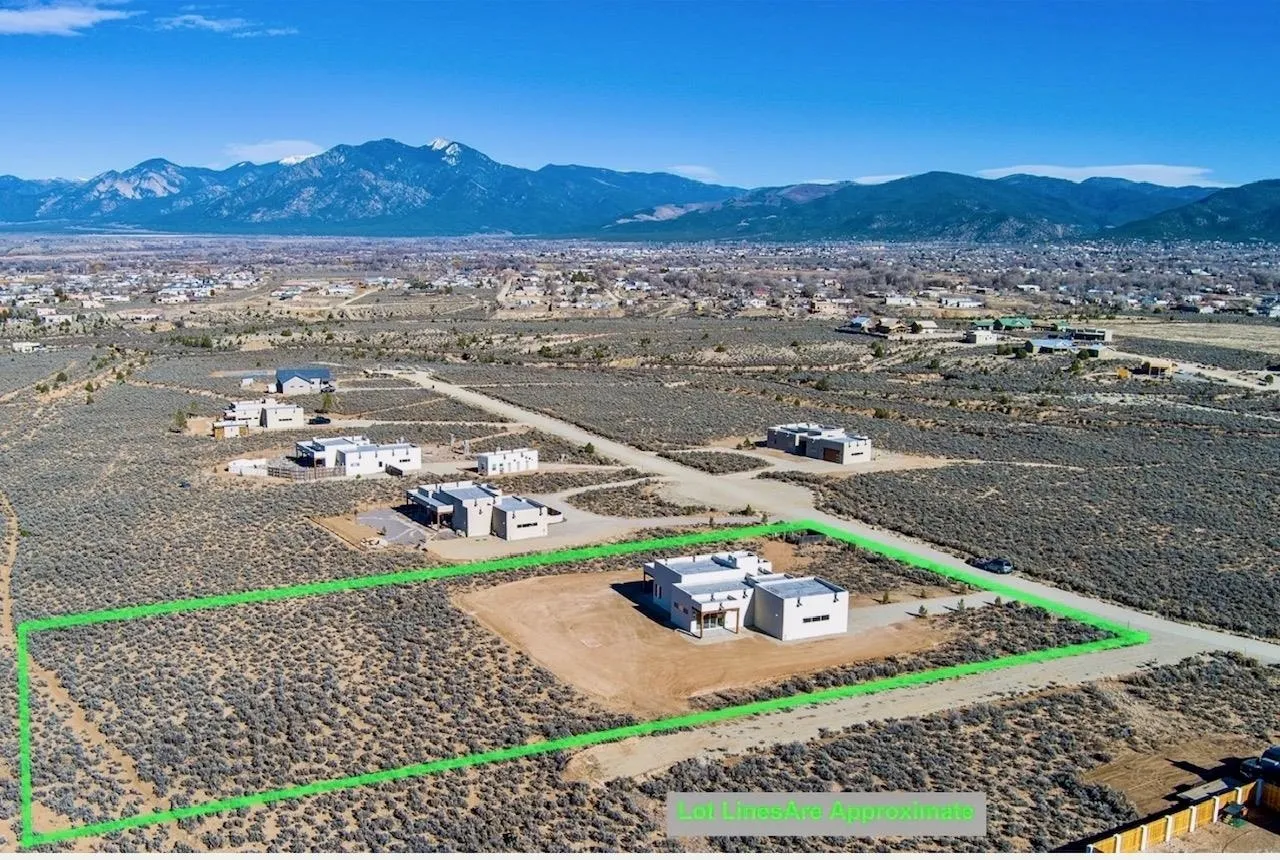 NEW CONSTRUCTION; 100% COMPLETE. Superb craftmanship by one of Taos’ best builders, In and Out Plumbing and Construction. Three bedrooms and two bathrooms nicely spread out over 2034 square feet. Has granite tops, semi-custom cabinets, tile, vigas, and stainless steel appliances. The entire house has in slab, radiant heating, including the garage. Features the most amazing views of Taos Mountain.