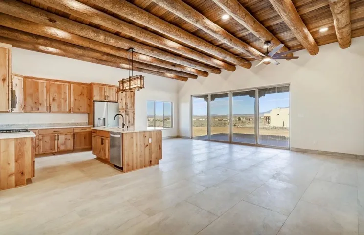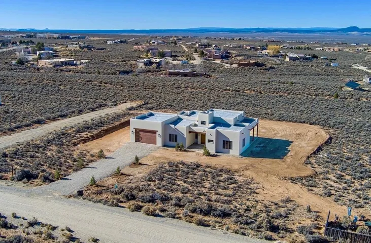 NEW CONSTRUCTION; 100% COMPLETE. Superb craftmanship by one of Taos’ best builders, In and Out Plumbing and Construction. Three bedrooms and two bathrooms nicely spread out over 2034 square feet. Has granite tops, semi-custom cabinets, tile, vigas, and stainless steel appliances. The entire house has in slab, radiant heating, including the garage. Features the most amazing views of Taos Mountain.
