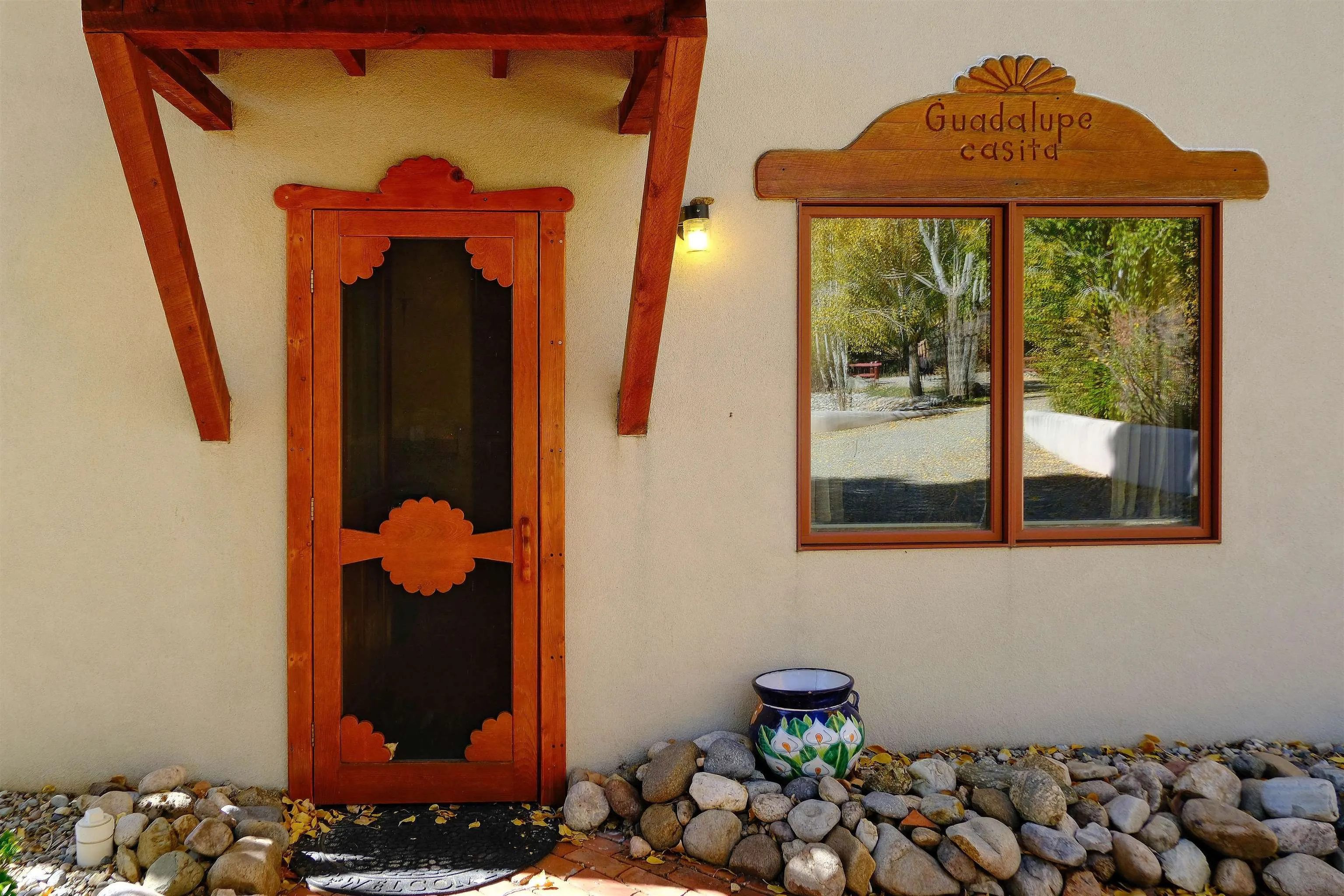 Tucked into the coveted El Salto enclave along the scenic road to Taos Ski Valley, this soulful adobe estate captures the timeless spirit of Northern New Mexico living. Set against big skies and high-desert light, the home enjoys classic Southwestern touches and stunning views in every direction. Authentic adobe construction grounds the main residence in warmth and character, with thick earthen walls, viga ceilings, diamond finish plaster, custom carved built-ins and handcrafted traditional details throughout. The main house has two beds, two baths, a fantastic chef’s kitchen, an office nook with stunning, direct views of El Salto Mountain, front and back portals designed for slow mornings and golden-hour evenings, and a heated attached garage with a built-in work bench. To the side of the primary residence is a wonderful, large shady Ramada with a sunken-firepit-a perfect place to gather with friends and family under the large, expansive starry sky. The property unfolds as a true compound: the charming guest house with a full kitchen is wonderful for visitors or rental potential. The guesthouse also has a dedicated workshop for creative or practical pursuits, and an additional attached garage. There is a 3-bay pole barn on the Western edge of the property, ideal for storing equipment, and all the gear you will want to support the outdoor recreating opportunities that are literally right outside your door. 8 Juan Martinez is located at the mouth of the canyon that connects to Taos Ski Valley- 15 minutes and you’re at the base of one of the best Ski and snowboard resorts in the Rockies! This custom home has been lovingly maintained by the original Owner who has created many of the custom finishes that grace this property on-site. Valuable water rights enhance both lifestyle and long-term value, supporting gardens, land stewardship, or future vision. Private, grounded, and rich with character, this El Salto offering is perfectly positioned for those who want serene mountain living with quick access to skiing, hiking, and the cultural heartbeat of Taos. A rare blend of authenticity, versatility, and location—this is Northern New Mexico living at its most genuine.