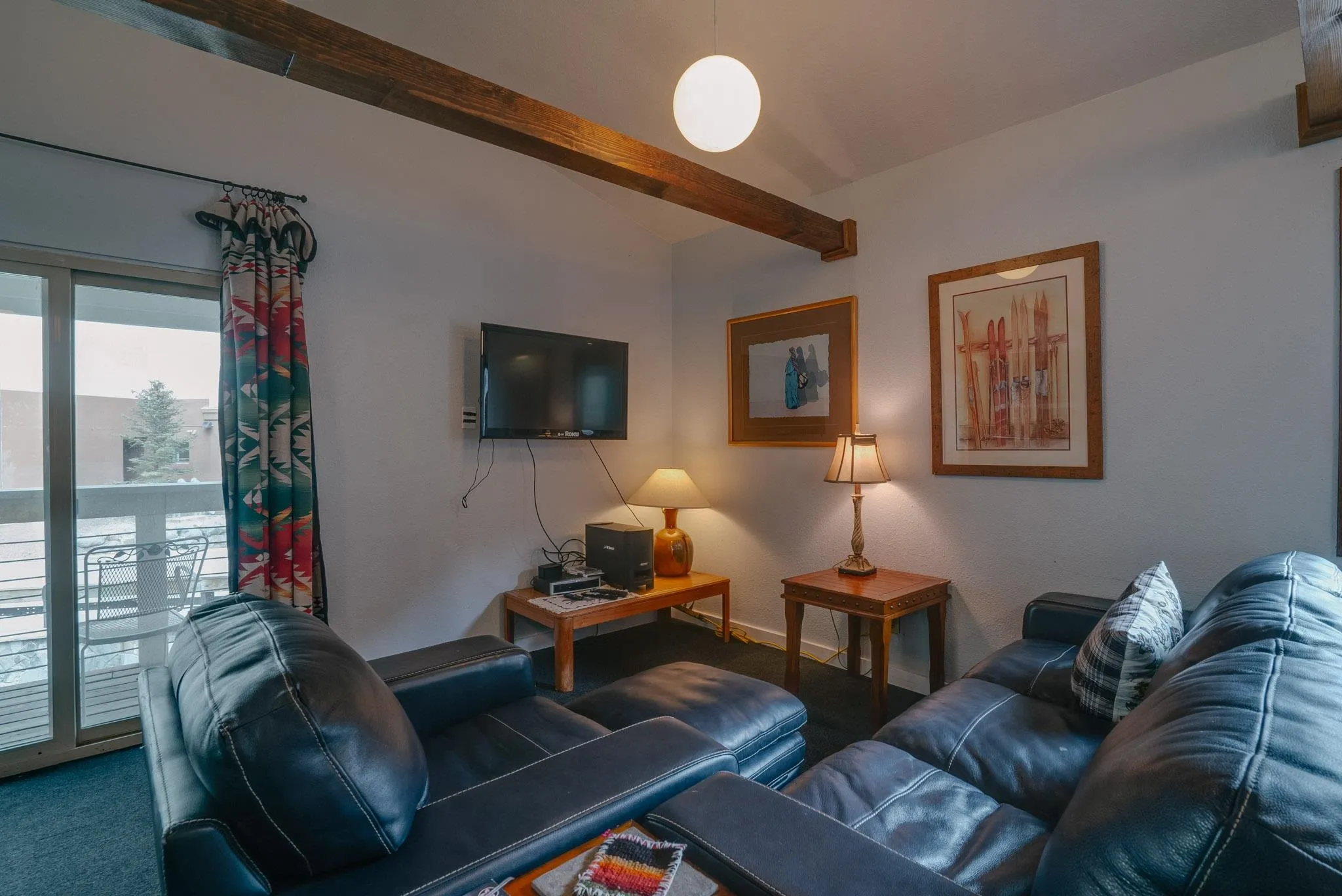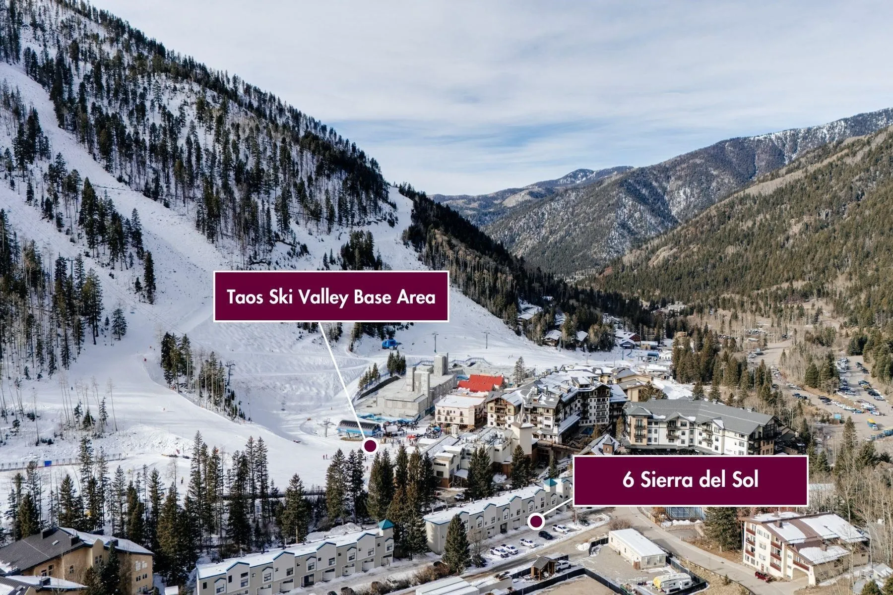 The perfect location and view of the iconic Taos Ski Valley slopes. The balcony over looks the the Lake Fork stream, which is an arm of the Rio Hondo river. Literally just a few minutes walk to Chair 1 and the Pioneers lift, shops, restaurants and the main Plaza. Fully furnished and move in ready. Be sure to click on and watch the “Virtual Tour” for a full appreciation of the location, beauty and amenities of this unique property. Previously rented on some years through Vacasa. The complex amenities include a recreation room with, ping pong, Foosball and games. HOA dues include almost everything including, water, sewer, internet, all exterior maintenance and insurance, management, snow removal and some firewood for the wood burning fireplace. There is a large sauna and hot tub room, free laundry for owners and their guests. .