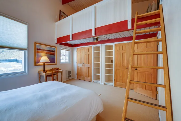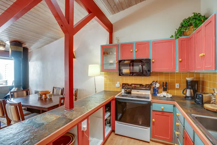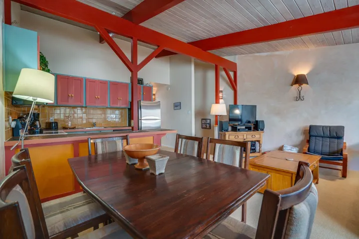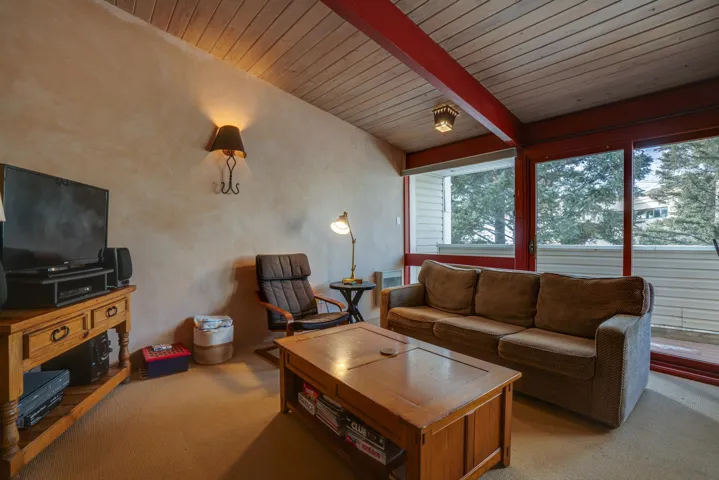 The perfect location and view of the iconic Taos Ski Valley slopes. The balcony over looks the the Lake Fork stream, which is an arm of the Rio Hondo river. Literally just a few minutes walk to Chair 1 and the Pioneers lift, shops, restaurants and the main Plaza. Fully furnished and move in ready. Be sure to click on and watch the “Virtual Tour” for a full appreciation of the location, beauty and amenities of this unique property. Previously rented on some years through Vacasa. The complex amenities include a recreation room with, ping pong, Foosball and games. HOA dues include almost everything including, water, sewer, internet, all exterior maintenance and insurance, management, snow removal and some firewood for the wood burning fireplace. There is a large sauna and hot tub room, free laundry for owners and their guests. .