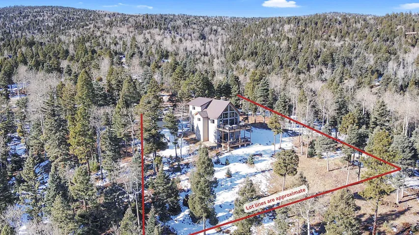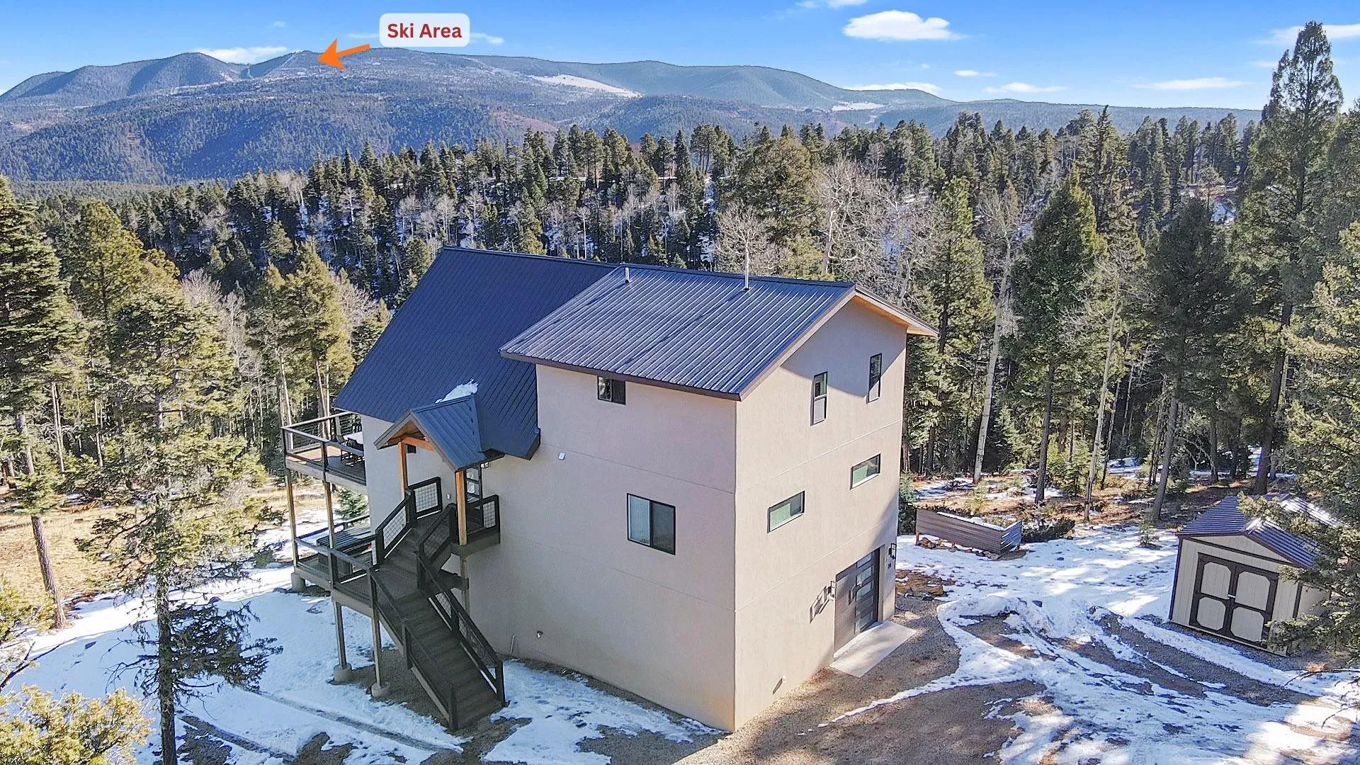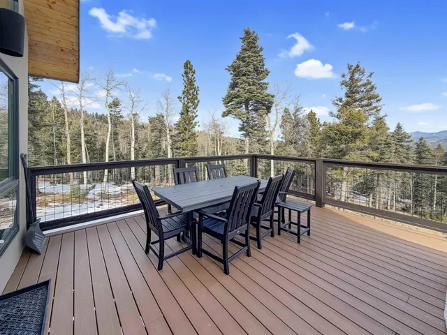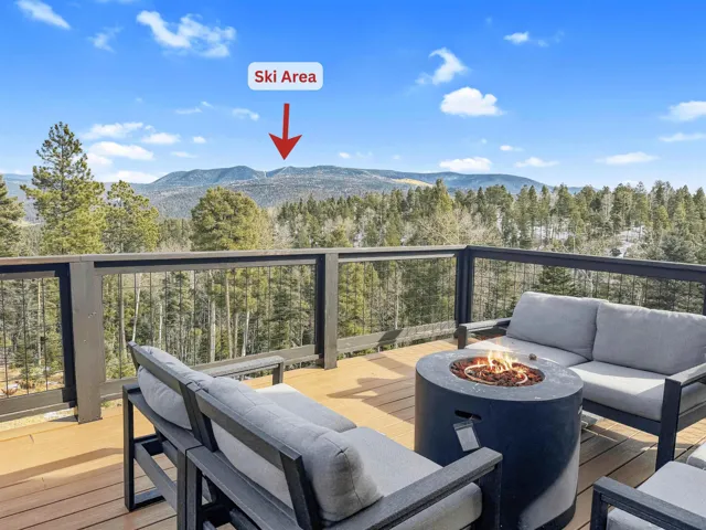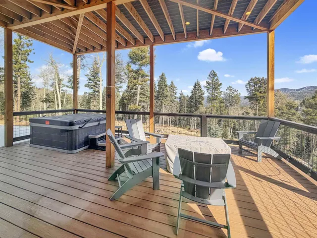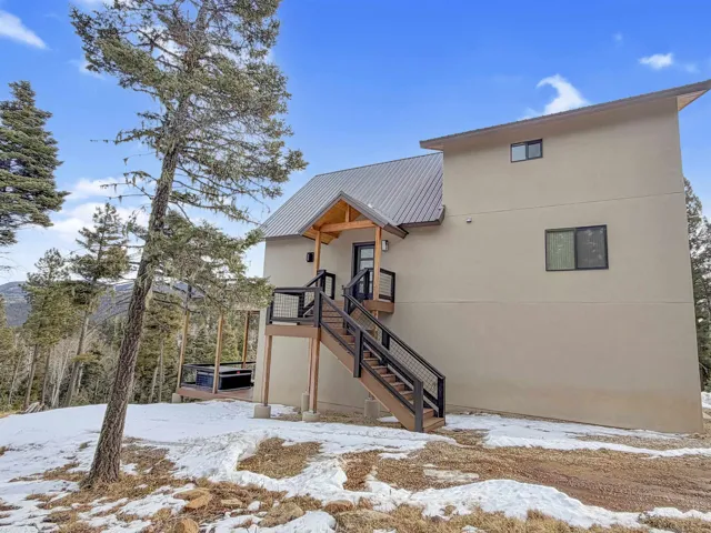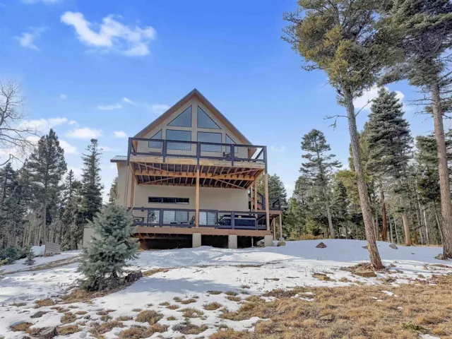 Come and discover modern mountain luxury in this beautiful, chalet-style retreat in Angel Fire, NM! Custom-built in 2021, this 4 bedroom, 3 bathroom home offers beautiful views, a spacious layout, and easy access to all of the great activities and amenities Angel Fire offers. Inside, the open-concept living, kitchen and dining area make it easy to entertain and spend time with friends and family. The lower level consists of an oversized one car garage, perfect for storing a side by side, golf cart, or other outdoor gear in addition to your vehicle. The den/recreational room is also located on the lower level, along with a bedroom and full bathroom, providing the ideal setup for family and guests. Take in the sunrises while sipping coffee on the deck surrounded by expansive views of the Sangre de Cristo Mountains. In the evening, enjoy your beverage under the dark northern New Mexico sky with the warmth of the outdoor (propane heated) firepit. Relax to the max in the hot tub under the covered deck off the den/recreational room while taking in the crisp mountain air. With 1.16 acres and the Cougar hiking/biking trail right in your backyard, outdoor exploration starts at your doorstep – all while keeping you just a short drive from the Resort’s top attractions. Summers invite you to tee off at Angel Fire Resort’s PGA rated 18-hole golf course or enjoy peaceful afternoons of tennis, pickleball, and fishing at Monte Verde Lake. For the thrill seekers, the Resort’s world class mountain bike park is just minutes away. The area becomes a premier destination for skiing, snowboarding, cross country skiing, and snowshoeing once the winter kicks in, ensuring a vibrant outdoor lifestyle through every month of the year. A convenient storage shed adjacent to the garage offers additional dedicated space for your outdoor equipment, ensuring your mountain essentials are organized and ready for the next adventure. This home can be the perfect mountain sanctuary for those seeking peace and privacy, or a great investment opportunity. Start envisioning the memories to be made in the mountains! Call us today to schedule a showing.