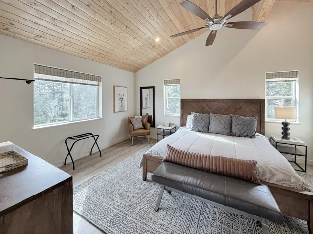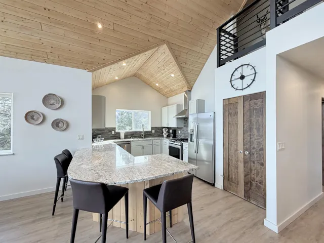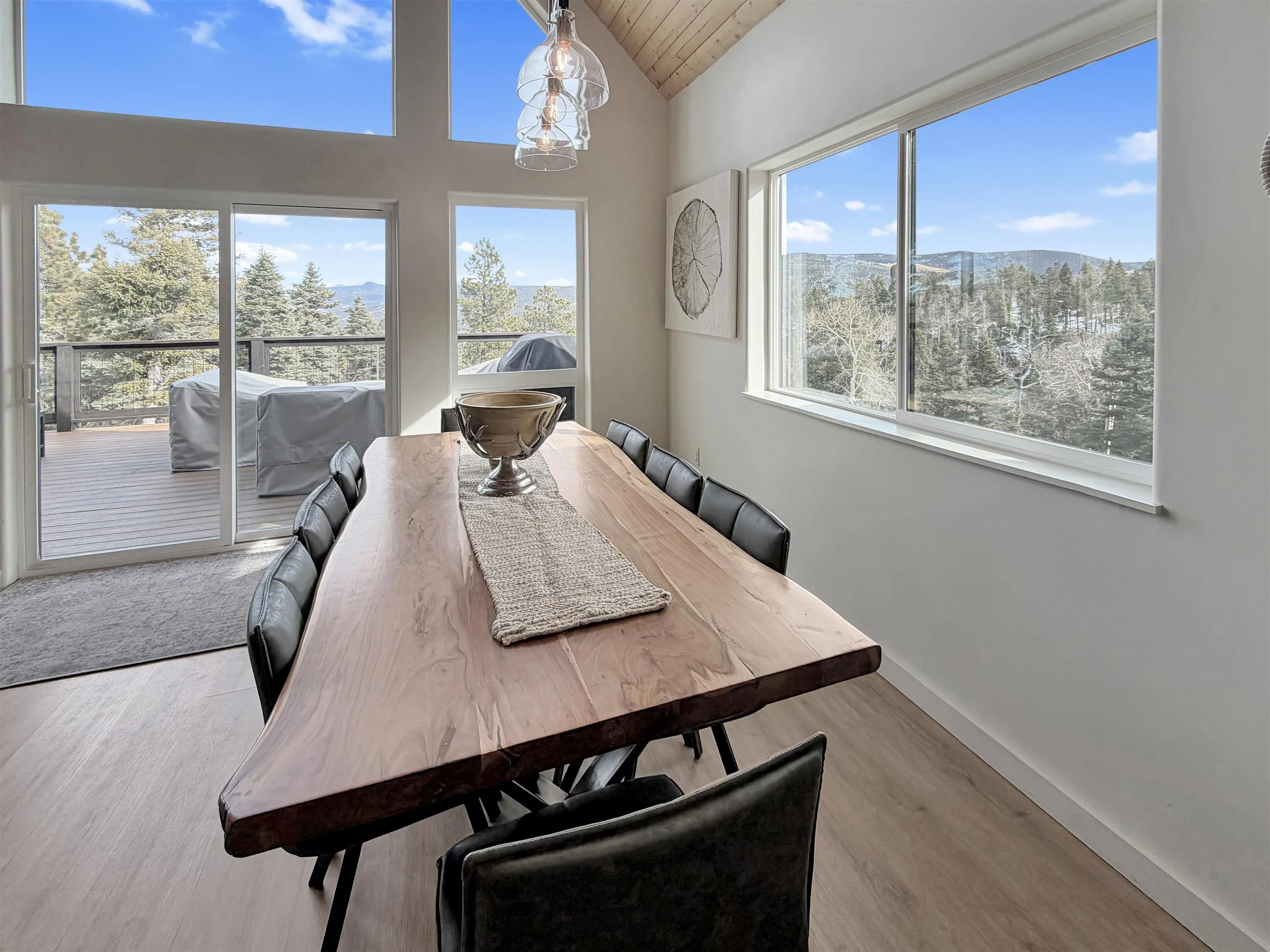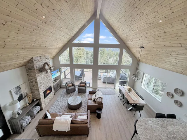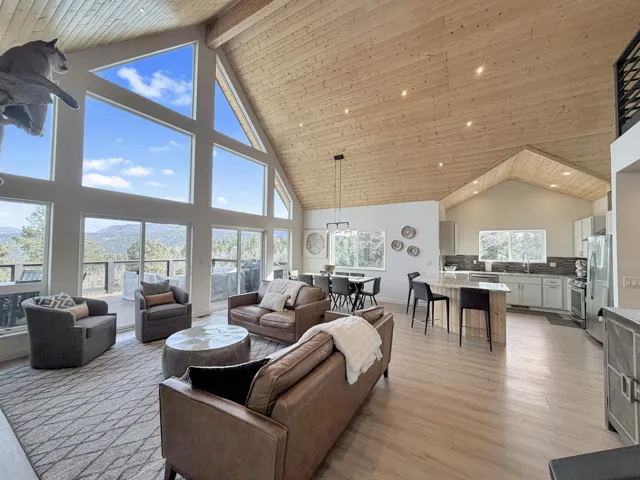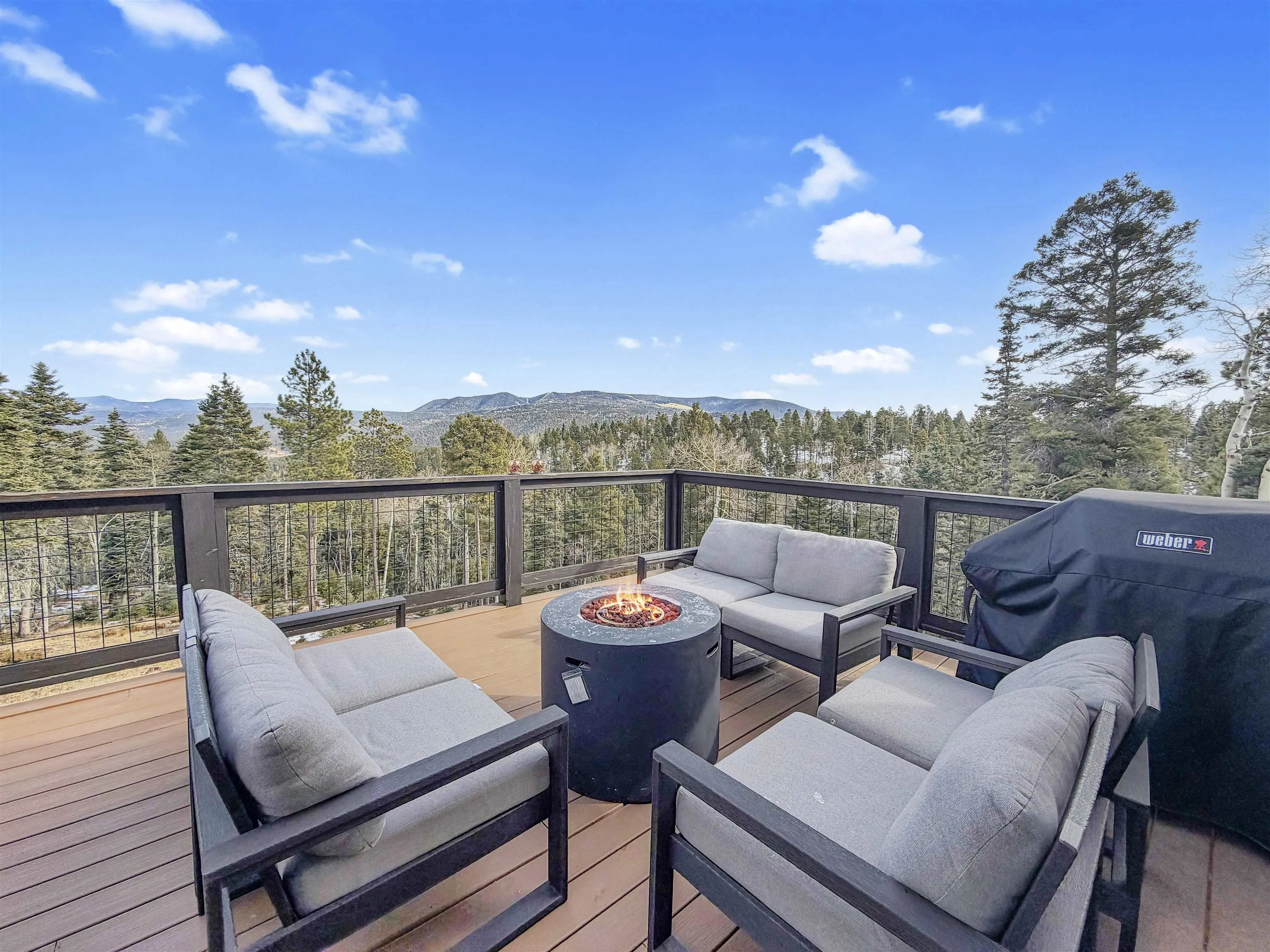 Come and discover modern mountain luxury in this beautiful, chalet-style retreat in Angel Fire, NM! Custom-built in 2021, this 4 bedroom, 3 bathroom home offers beautiful views, a spacious layout, and easy access to all of the great activities and amenities Angel Fire offers. Inside, the open-concept living, kitchen and dining area make it easy to entertain and spend time with friends and family. The lower level consists of an oversized one car garage, perfect for storing a side by side, golf cart, or other outdoor gear in addition to your vehicle. The den/recreational room is also located on the lower level, along with a bedroom and full bathroom, providing the ideal setup for family and guests. Take in the sunrises while sipping coffee on the deck surrounded by expansive views of the Sangre de Cristo Mountains. In the evening, enjoy your beverage under the dark northern New Mexico sky with the warmth of the outdoor (propane heated) firepit. Relax to the max in the hot tub under the covered deck off the den/recreational room while taking in the crisp mountain air. With 1.16 acres and the Cougar hiking/biking trail right in your backyard, outdoor exploration starts at your doorstep – all while keeping you just a short drive from the Resort’s top attractions. Summers invite you to tee off at Angel Fire Resort’s PGA rated 18-hole golf course or enjoy peaceful afternoons of tennis, pickleball, and fishing at Monte Verde Lake. For the thrill seekers, the Resort’s world class mountain bike park is just minutes away. The area becomes a premier destination for skiing, snowboarding, cross country skiing, and snowshoeing once the winter kicks in, ensuring a vibrant outdoor lifestyle through every month of the year. A convenient storage shed adjacent to the garage offers additional dedicated space for your outdoor equipment, ensuring your mountain essentials are organized and ready for the next adventure. This home can be the perfect mountain sanctuary for those seeking peace and privacy, or a great investment opportunity. Start envisioning the memories to be made in the mountains! Call us today to schedule a showing.
