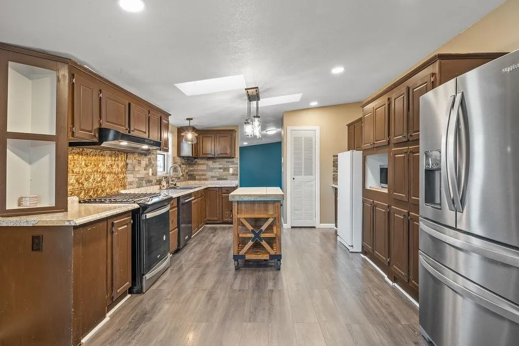 This unique Questa property offers an exceptional opportunity for the right buyer. Tucked behind solar-powered gates, the setting opens to a lush oasis with mature trees and the Red River flowing below the property. Trout fish provide excellent fishing, while deer and local wildlife are frequent visitors, creating a special connection to creation. Set on 1.62 acres, the home offers 2,240 square feet of living space with four bedrooms, three bathrooms, a large kitchen, and generous living areas. A wraparound deck invites seamless indoor-outdoor living, making entertaining effortless and enjoyable. The grounds are thoughtfully improved with a hot tub, koi pond, lush green lawn, garden shed, barn, basketball court, and children’s playset. Not to forget irrigation rights. Covered parking is included, along with up to three RV hookups—ideal for guests, extended family, or potential investment use. A whole-house backup generator adds peace of mind and functionality. Take in breathtaking Sangre de Cristo Mountain views, enjoy trout fishing, and experience a property perfectly suited for raising a family or hosting unforgettable gatherings. This rare multifamily homestead offers space to farm, gather, and create a peaceful country retreat that feels like a fairytale escape away from the hustle and bustle of everyday life. Schedule your showing today!