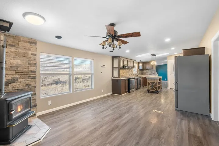 This unique Questa property offers an exceptional opportunity for the right buyer. Tucked behind solar-powered gates, the setting opens to a lush oasis with mature trees and the Red River flowing below the property. Trout fish provide excellent fishing, while deer and local wildlife are frequent visitors, creating a special connection to creation. Set on 1.62 acres, the home offers 2,240 square feet of living space with four bedrooms, three bathrooms, a large kitchen, and generous living areas. A wraparound deck invites seamless indoor-outdoor living, making entertaining effortless and enjoyable. The grounds are thoughtfully improved with a hot tub, koi pond, lush green lawn, garden shed, barn, basketball court, and children’s playset. Not to forget irrigation rights. Covered parking is included, along with up to three RV hookups—ideal for guests, extended family, or potential investment use. A whole-house backup generator adds peace of mind and functionality. Take in breathtaking Sangre de Cristo Mountain views, enjoy trout fishing, and experience a property perfectly suited for raising a family or hosting unforgettable gatherings. This rare multifamily homestead offers space to farm, gather, and create a peaceful country retreat that feels like a fairytale escape away from the hustle and bustle of everyday life. Schedule your showing today! Accessed as real property!