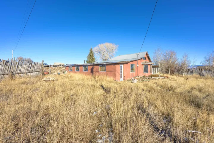 This Tres Piedras homestead has been remodeled, added onto and cared for over several decades. The original cabin is log and stone with the adjoining room additions providing a workshop, utility room, sunroom and sleeping quarters. The previous owner was an artist and his architectural stonework, sculptures and handiwork are visible throughout. The home benefits from much solar gain but relies on four woodstoves to heat the home with small gas space heaters protecting crucial mechanical areas. The rustic kitchen features a Vulcan commercial range with dual ovens eight burners. The main house, surrounding landscaping and aging animal pens will all require attention. However, the attached workshop would be the perfect place to stage materials, tools or even be used as an artist studio. Short term owner financing available with appropriate down payment if a buyer plans to eventually seek a conventional mortgage. Square footage is from County Assessor files and a qualified appraiser should be used if accurate measurements are required for lending purposes.