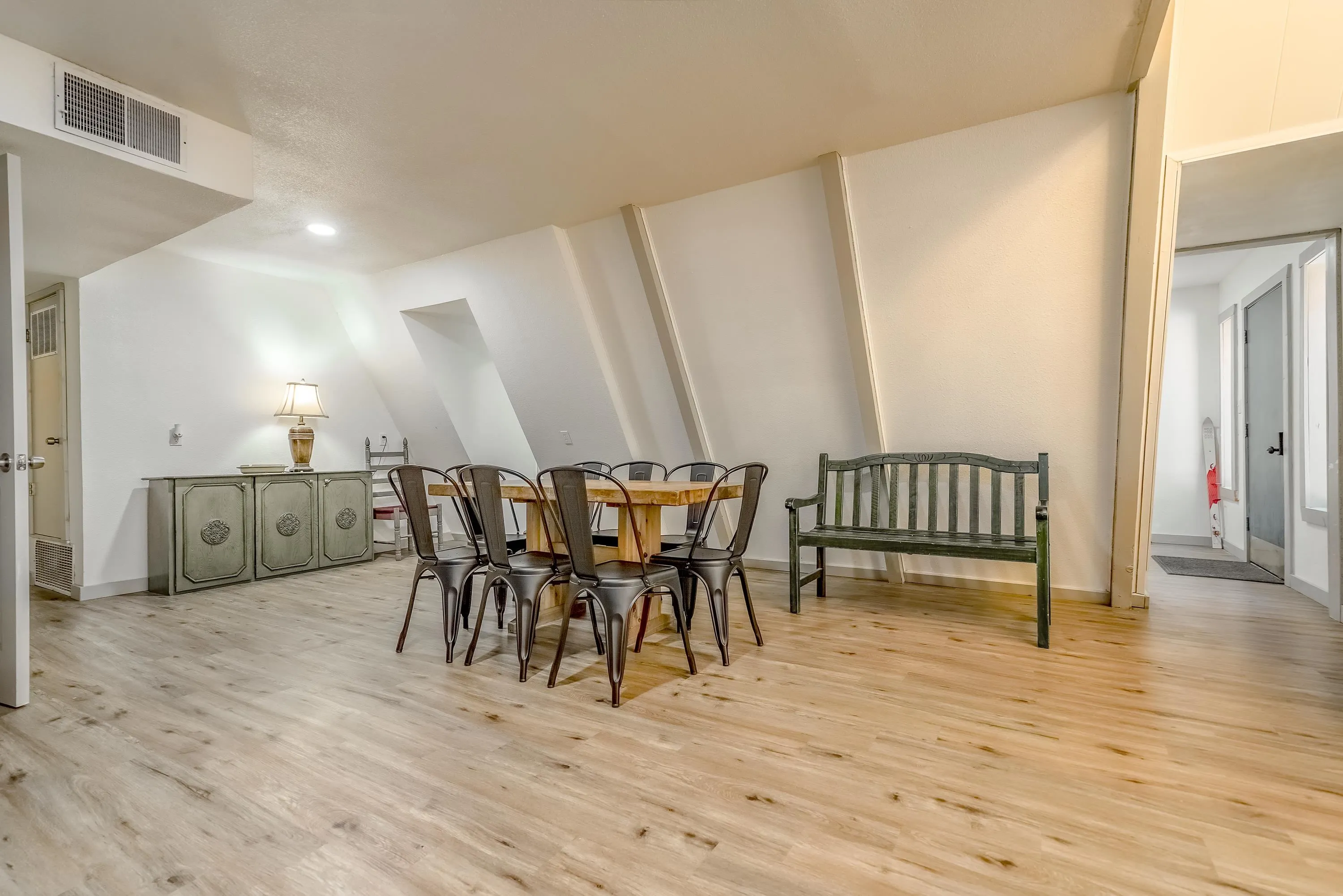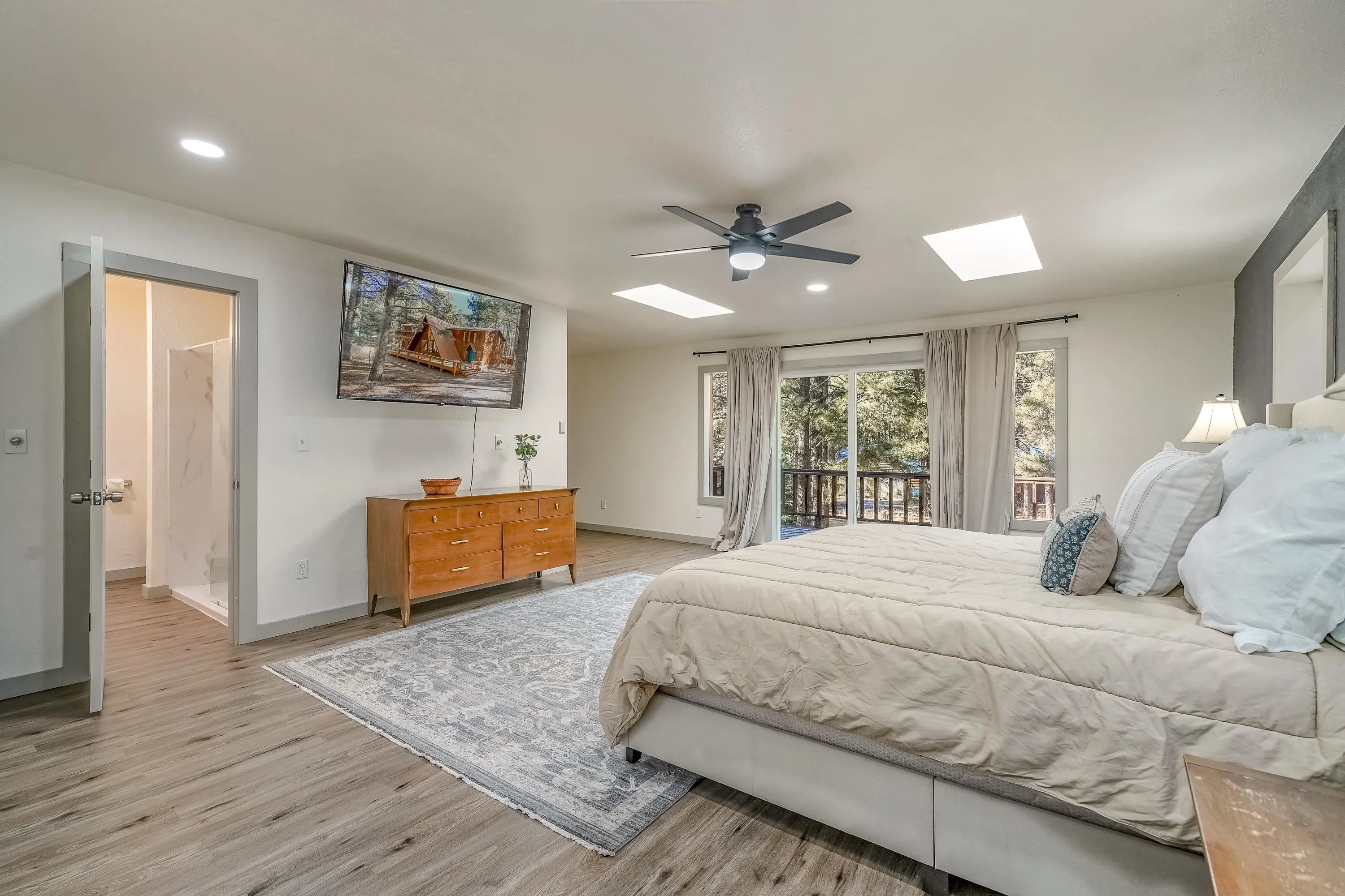 Welcome to 50 Knollwood Way, a quintessential A-frame chalet tucked into the trees with easy year-round access. Set on a peaceful, wooded half-acre, this refreshed mountain home blends timeless alpine character with thoughtful modern updates—ideal as a family retreat or rental opportunity. Inside, soaring vaulted ceilings and a dramatic window wall flood the main living area with natural light. The open living space is anchored by a freestanding wood stove, creating a cozy gathering space for après-ski evenings and mountain getaways. With five bedrooms and four full baths across nearly 3,000 square feet, there is ample room for large groups, multi-generational living, or flexible sleeping arrangements. Recent 2024 updates include refreshed flooring and paint, kitchen and bathroom improvements, a new wood stove, and a new advanced septic system designed to support the full bedroom count. Multiple decks extend the living space outdoors, perfect for relaxing among the pines and enjoying the crisp mountain air. Located just minutes from skiing, golf, hiking, and all that Angel Fire has to offer, this classic A-frame offers a rare combination of charm, space, and accessibility.