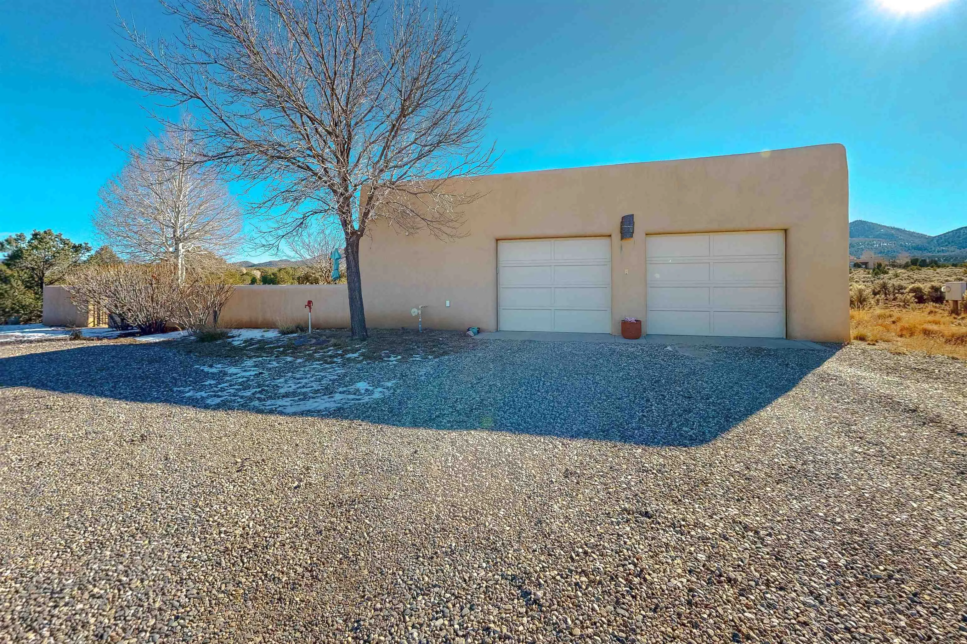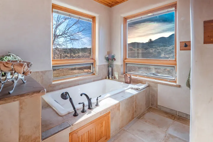 Introducing La Esencia de El Mirador, a home designed for the essence of entertaining: sharing life, good food, and spectacular views. Located in the peaceful county setting of Ranchos de Taos in the exclusive El Mirador subdivision, La Esencia de El Mirador is an exceptional single-level residence offering approximately 2,600 square feet of refined living space, masterfully crafted by respected builder Ken Wolosin – known for his quality construction and meticulous attention to detail. A private security gate welcomes you onto the property, immediately setting the tone for the thoughtful design, elevated finishes, and enduring craftsmanship found throughout. Inside, the open-concept floor plan lives effortlessly with no interior steps, elegant porcelain stone floors, and radiant in-floor heating that extends into the expansive 779 sq ft heated garage with storage areas. The inviting living room is anchored by a cozy fireplace and framed by Pella triple-pane R-4 windows, filling the home with natural light while delivering outstanding energy efficiency and serene comfort. Pella doors and windows are featured throughout, with enclosed blinds for additional insulation, and reinforcing the home’s commitment to quality and performance. The chef’s kitchen is a true gathering space, thoughtfully designed for both daily living and entertaining. Viking appliances – including a gas cooktop with hood and double electric wall ovens – are complemented by stone countertops, a dedicated coffee counter, and a well-planned pantry area complete with a wine fridge and microwave. A separate wine closet adds an extra layer of sophistication and convenience rarely found at this level. The primary suite offers a private retreat, featuring a custom California walk-in closet and a luxurious spa-inspired bathroom with an oversized soaking tub and bidet. Two additional bedrooms and a beautifully appointed full guest bath provide comfort and flexibility for family and guests alike. Additional upgrades enhance both form and function, including a Bry fire-resistant roof, ceiling fans in every room, and a security system installed during construction. The spacious utility room includes a deep sink, cabinetry, ample storage, and a gas dryer. The radiant-heated garage is fully finished and exceptionally well-equipped, offering a workbench, wall organizers, a storage room, and a dedicated mechanical room – ideal for projects, hobbies, or outdoor gear. The roof is a flat roof with a 1/2″ per every foot slope instead of the standard 1/4″ per foot slope, allowing for the rain to spew out of the canales feeding all the Aspen trees and wildflowers. The current owner is the original owner of this home and was heavily involved in its construction and has kept meticulous maintenance records for the entire 18 years. The home is also being sold mostly furnished. Set on 11.93 quiet, open acres, La Esencia de El Mirador offers remarkable privacy, sweeping views, and space to savor the surrounding landscape – an increasingly rare opportunity in today’s market. With superior craftsmanship, a thoughtfully designed layout, and high-end finishes throughout, this is a home created to be experienced, shared, and enjoyed. This listing has very detailed exterior and interior videos for your viewing pleasure.
