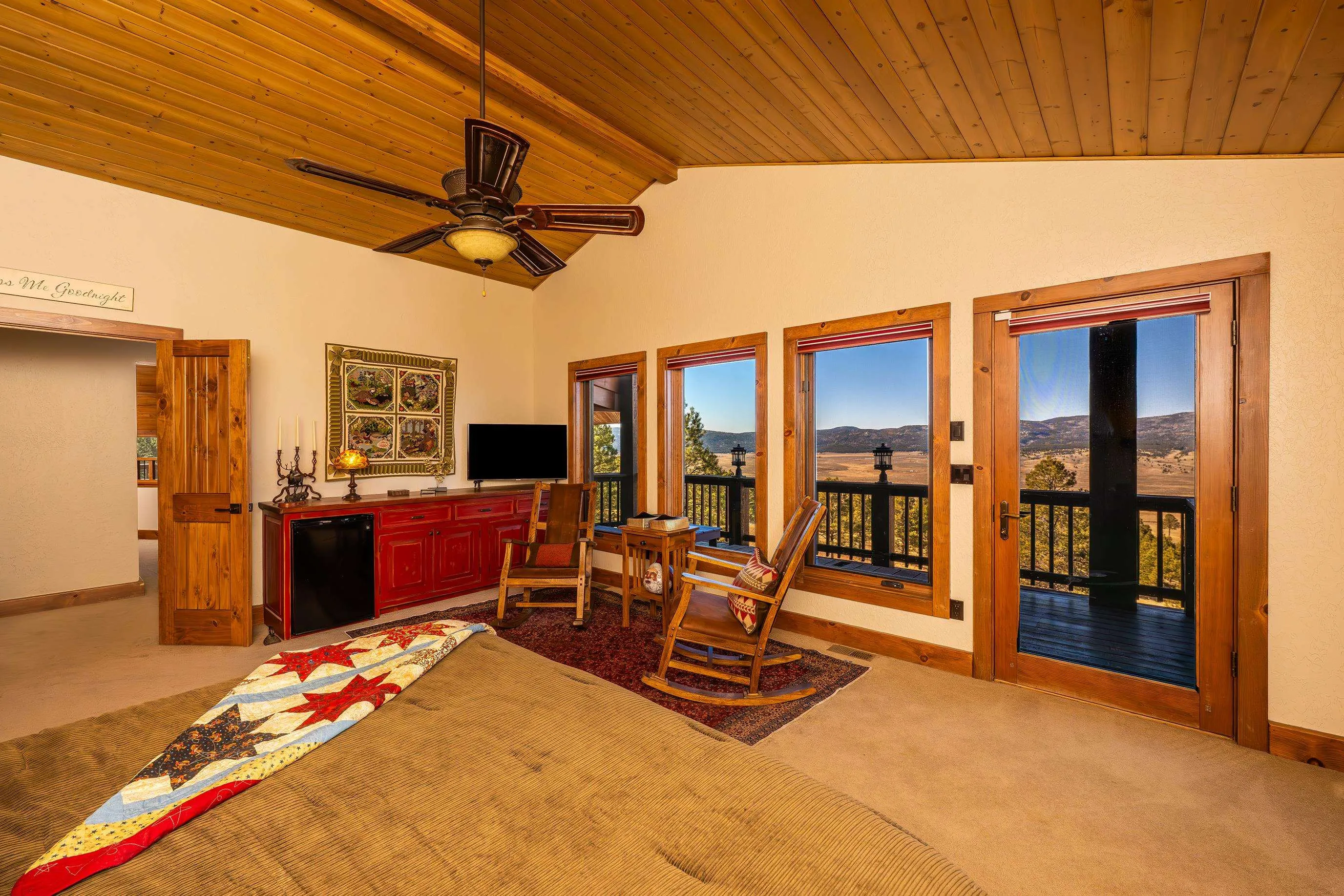 You would be hard-pressed to find a more beautiful home in a more breathtaking setting. This exceptional custom mountain residence showcases high-end finishes throughout, including granite countertops, custom cabinetry, two stone fireplaces, a whole-house generator, and an elevator accessing all levels. The expansive great room features a stone fireplace, TV, and pool table, and opens seamlessly to the massive kitchen and dining area—perfect for entertaining. A second living area offers a wet bar, fireplace, and a dramatic wall of windows framing sweeping views of the Wheeler Peak range and abundant wildlife. The primary suite is a true retreat, boasting stunning views and a spa-like bath with a large soaking tub, walk-in shower, separate vanities, and generous space. The lower level includes a cozy den and a charming wine room with a sitting area—ideal for quiet moments of relaxation. A four-car garage provides ample room for vehicles and mountain toys. Step outside to enjoy the gazebo, complete with an antique wood-burning stove and accessed by a wood walkway for year-round enjoyment. Make the right offer and the 2015 Ford pickup and Ranger side-by-side will be included. Additionally, the owners are offering their Angel Fire Resort membership lot as part of the sale, adding exceptional value and access to resort amenities. This spectacular home offers the perfect blend of luxury, comfort, and natural beauty—ideal for entertaining and creating lasting generational memories. Shown by appointment to qualified buyers only.