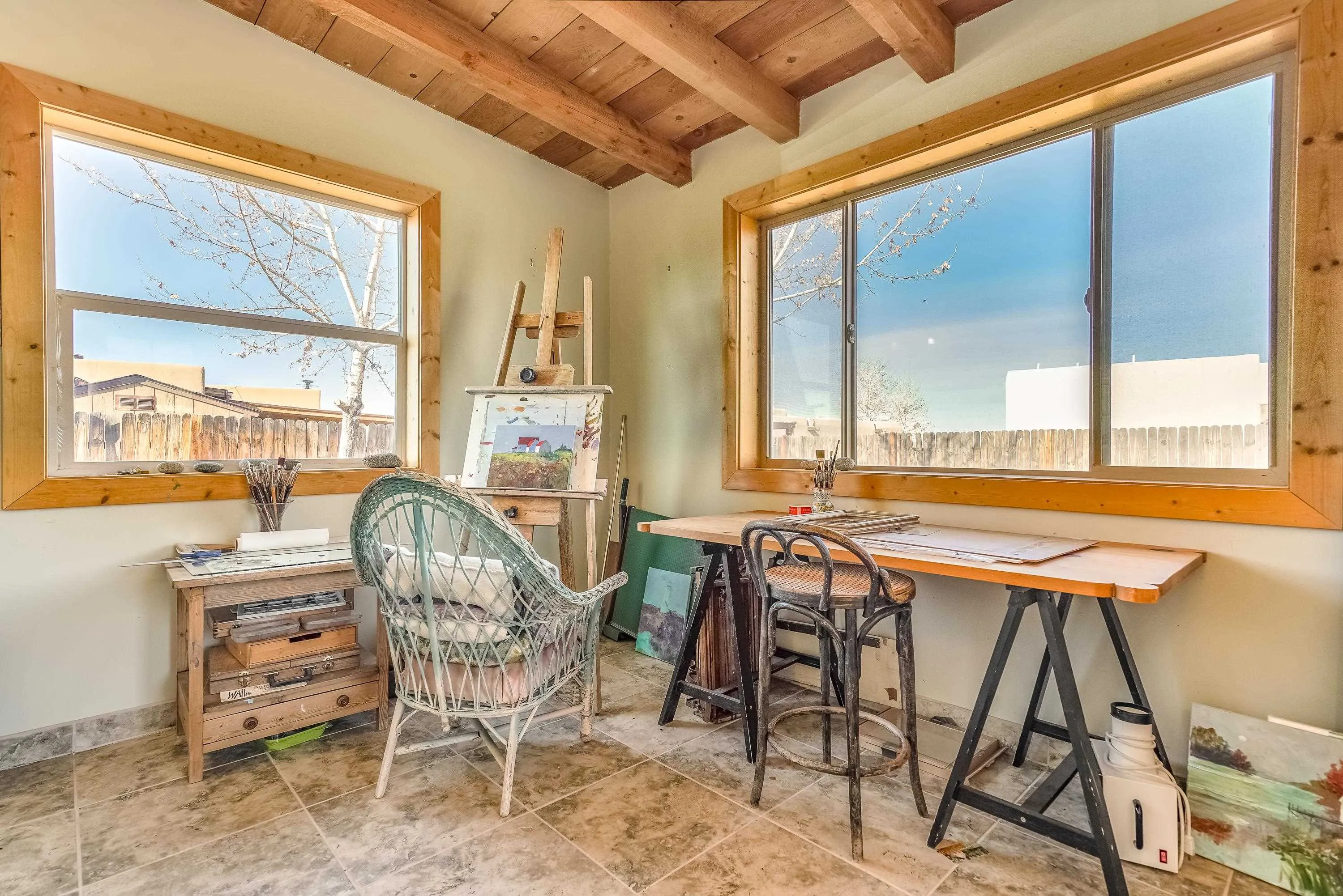 This beautiful 2 bed 2 bath home is sure to delight. Owned by renowned artist Nancy St Lawrence. Enjoy an open and spacious living area filled with natural light from abundant windows offering lovely views. The upscale kitchen is thoughtfully designed and features granite countertops plus stainless-steel appliances. Relax on the covered porch taking in great mountain views and unforgettable sunsets. The thoughtfully designed split-bedroom layout offers privacy and the primary suite and has a large walk-in closet. There is a charming artist’s studio or office attached which has its own entrance ideal for a quiet workspace. A truly special home combining comfort, creativity, and convenience. Conveniently located near the hospital in the Las Olas Subdivision, offering established covenants and close access to a walking trail.