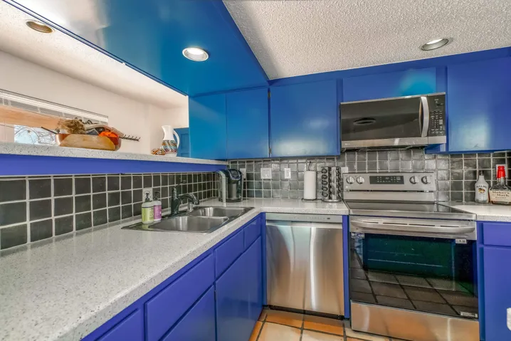 This Antoine Predock designed 2 story, 3 bed/2.5 bath, 1997 sq ft condo with a heated 1 car garage is located in the quiet cul-de-sac of Comanche Court. Part of the Quail Ridge Resort this bright and view-filled home comes with access to the Quail Ridge tennis courts and pool. Extensive renovations to the condo include, hard wood and tile floors, a new lighting package, new stainless appliances and an updated Main Bath. You enter the property through a large walled private courtyard with a 220 v Hot tub that conveys. There are decks facing east and south that give you views of Taos Mountain during both sunrise and sunset. Spacious, secluded and modernized, this condo with its own sauna and reasonable HOA fees could easily be your home or an easy-living vacation pad. Come see why folks love the northside of Taos – and the proximity to superb hiking, biking, skiing or fly fishing – located just 15 min from Taos Ski Valley, the Rio Grande at the John Dunn Bridge or from the center of Taos and the shops and museums and art that you love so well.