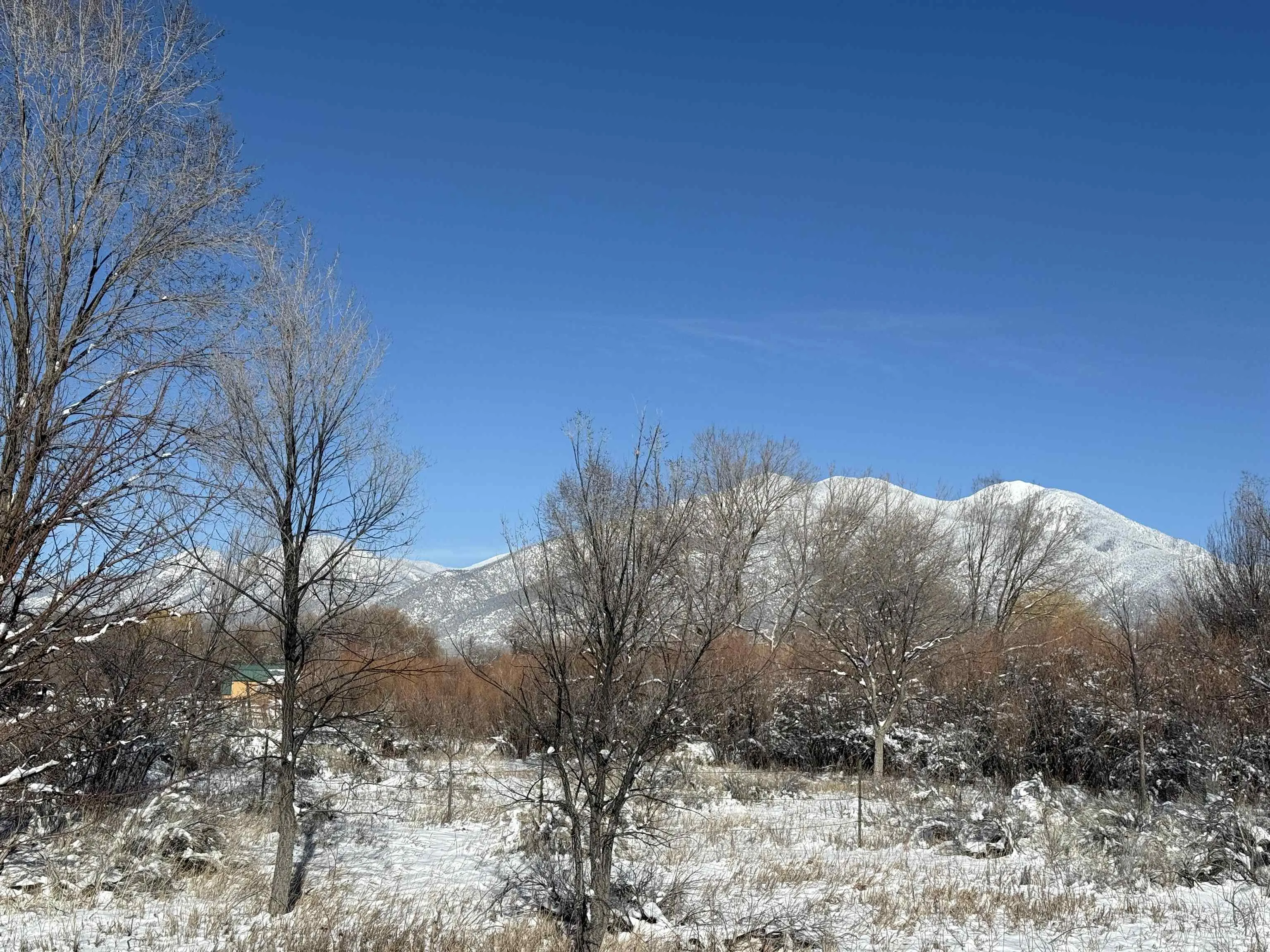 This charming Adobe artist residence has numerous upgrades completed in 2011: galvanized metal roof, doublepane windows, electrical upgrade and exterior stucco. Furnace replaced in 2022. Situated on a half acre adorned with plum trees (still producing!) Chinese elms, lilacs & junipers with views of Taos Mountain and Truchas Peak. Bordering El Prado and Town of Taos, this home enjoys city water, natural gas and city sewer connections. Adjacent attached building provides generous sunlit space for your studio, workshop or future casita. Equipped with 220v for kiln or other equipment and propane heater (currently not connected). Abundant parking can accomodate art classes or other gatherings. The north half of property provides tranquil setting with spectacular views of Taos Mountain for an additional dwelling or SUBDIVIDE for development opportunity. Enjoy a cornucopia of wildlife such as hawks , kestrel, magpie and red-winged blackbirds while you are serenaded by the howls of distant coyote. The remains of an historic corral add to this serene landscape. Walk to Cids or just a short drive into town. This rare, affordable home offers the best of all worlds!