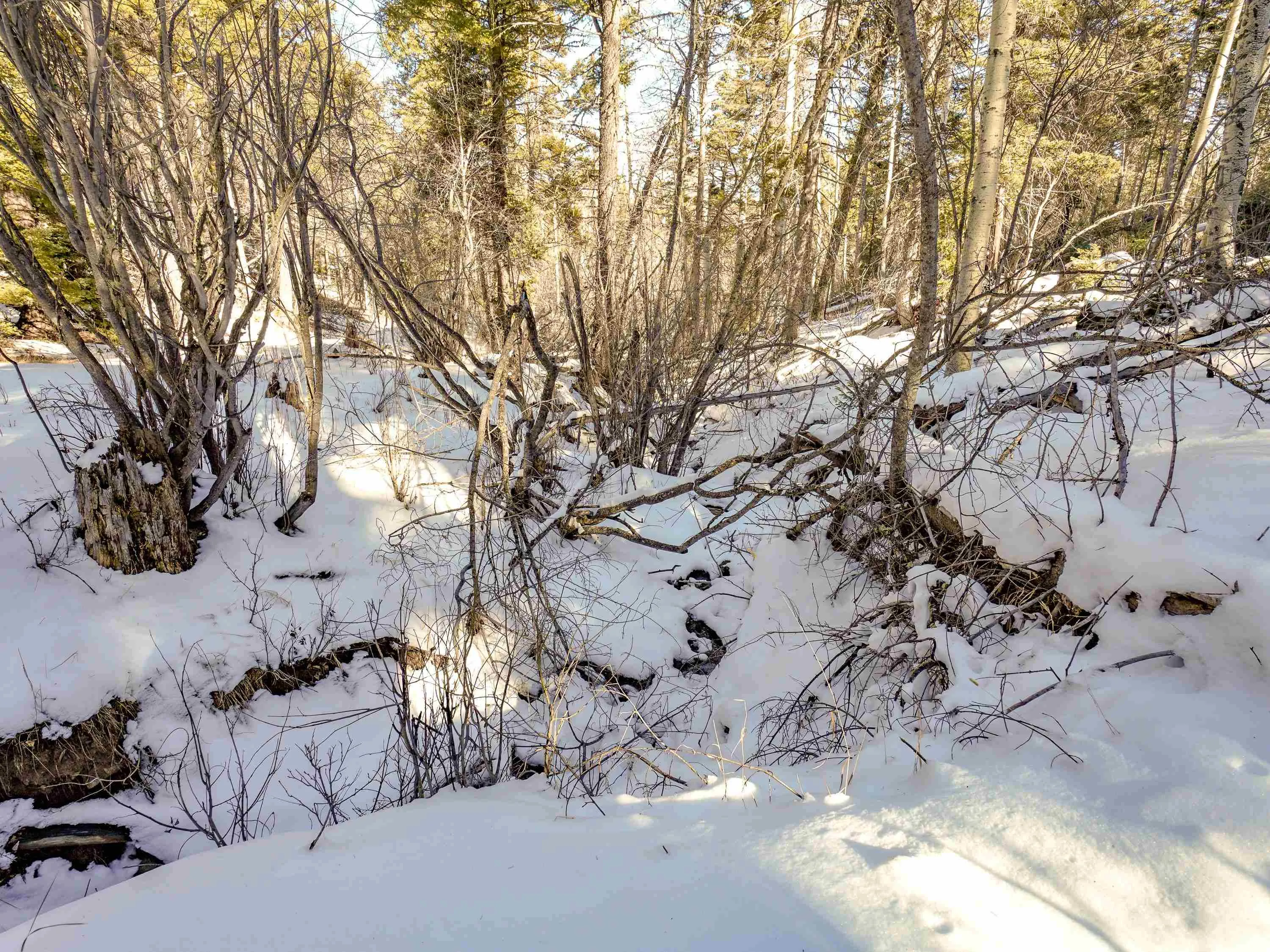 Beautiful 9.68-acre single-family equestrian lot tucked at the end of a quiet cul-de-sac, offering the rare combination of privacy, aspens, and easy year-round access. This stunning parcel feels like you’re deep in the mountains, with rugged terrain that includes a mature stand of aspens, a seasonal stream, and a dramatic cliff feature. The topography offers potential for a driveway and building site, with a view corridor across the valley and even a glimpse toward the ski area. Bordering greenbelt, the property feels exceptionally secluded, with room to create private trails and access to the Cougar Trail, yet still just an easy drive to all the amenities of Angel Fire.