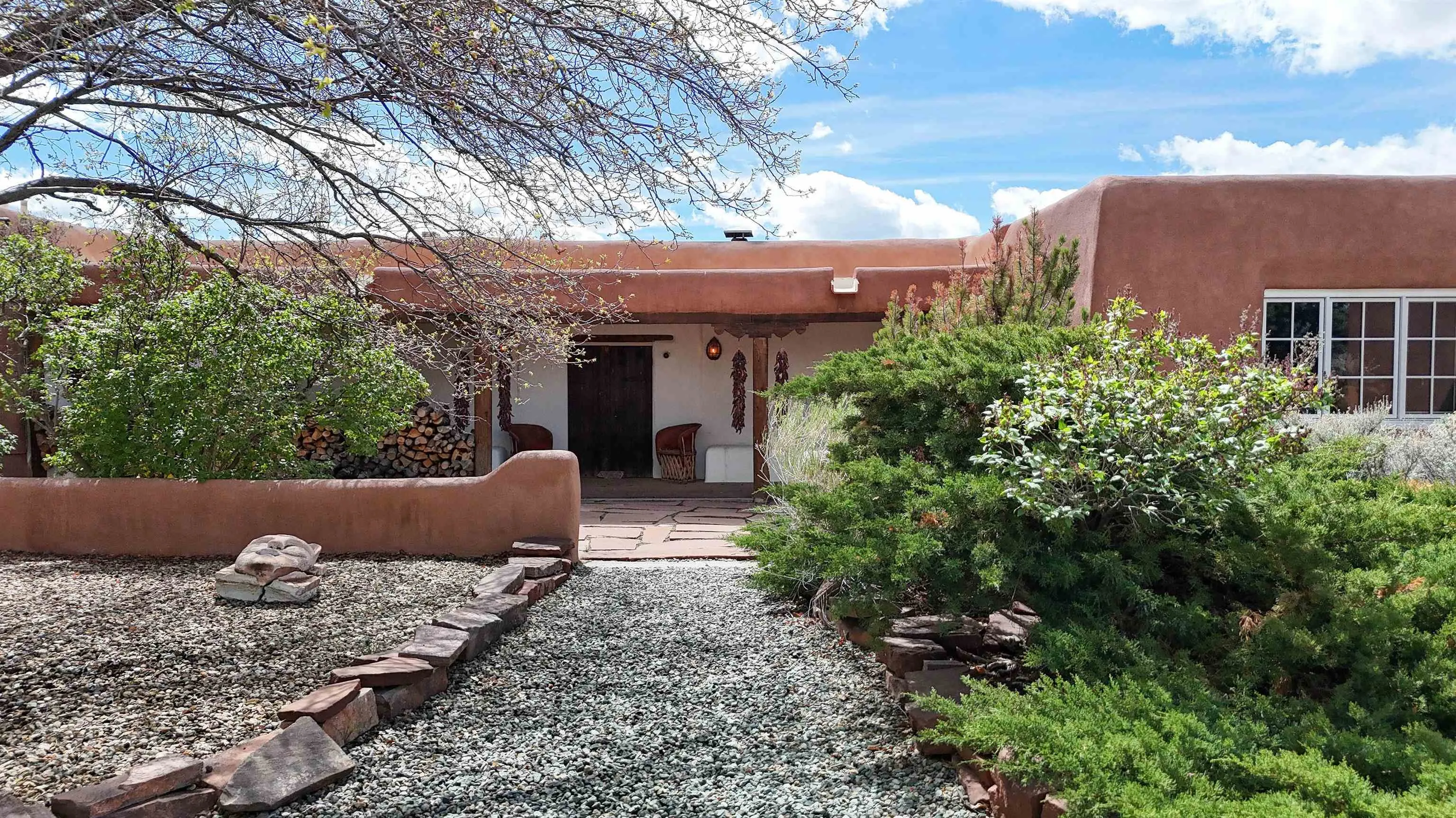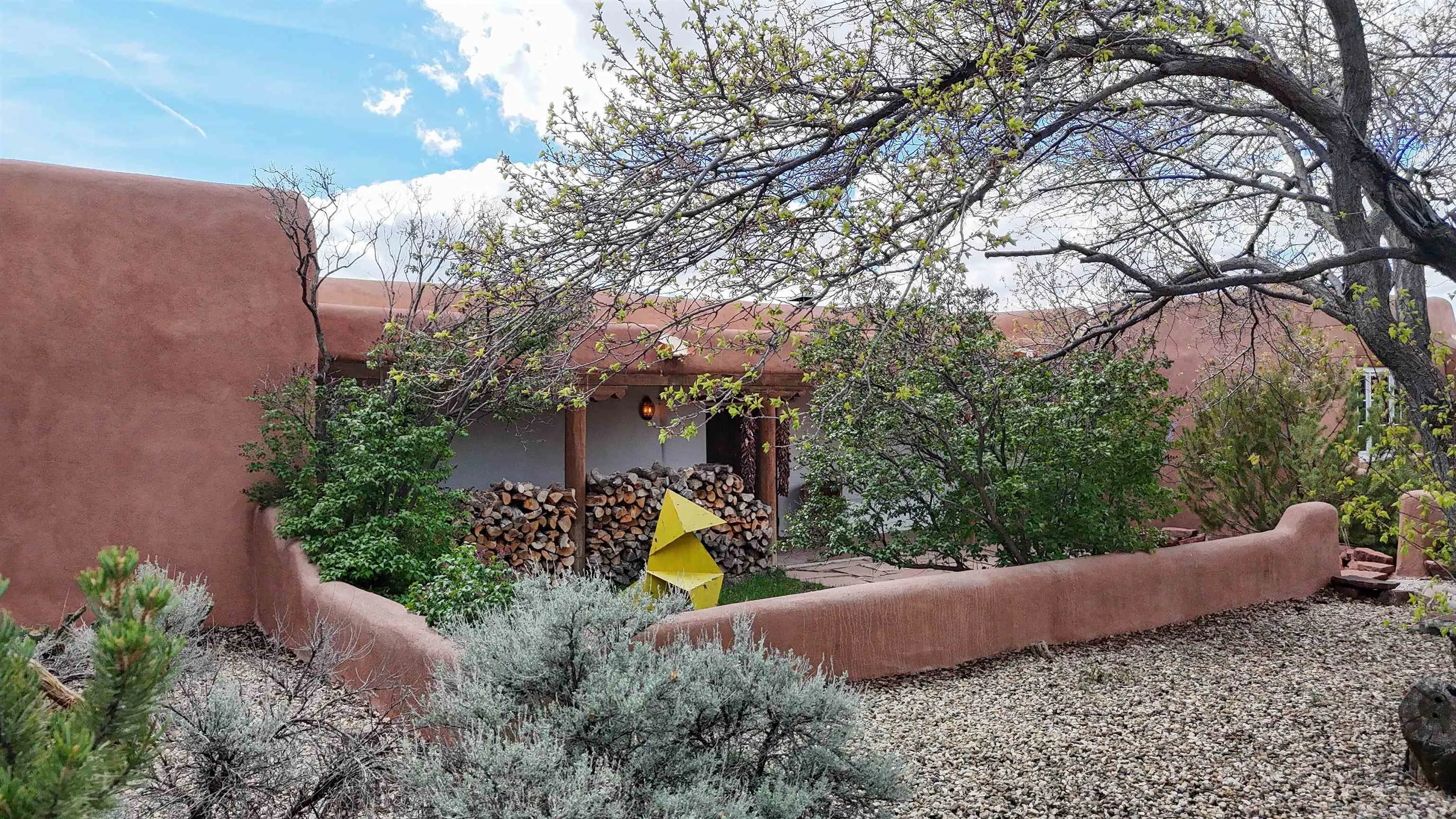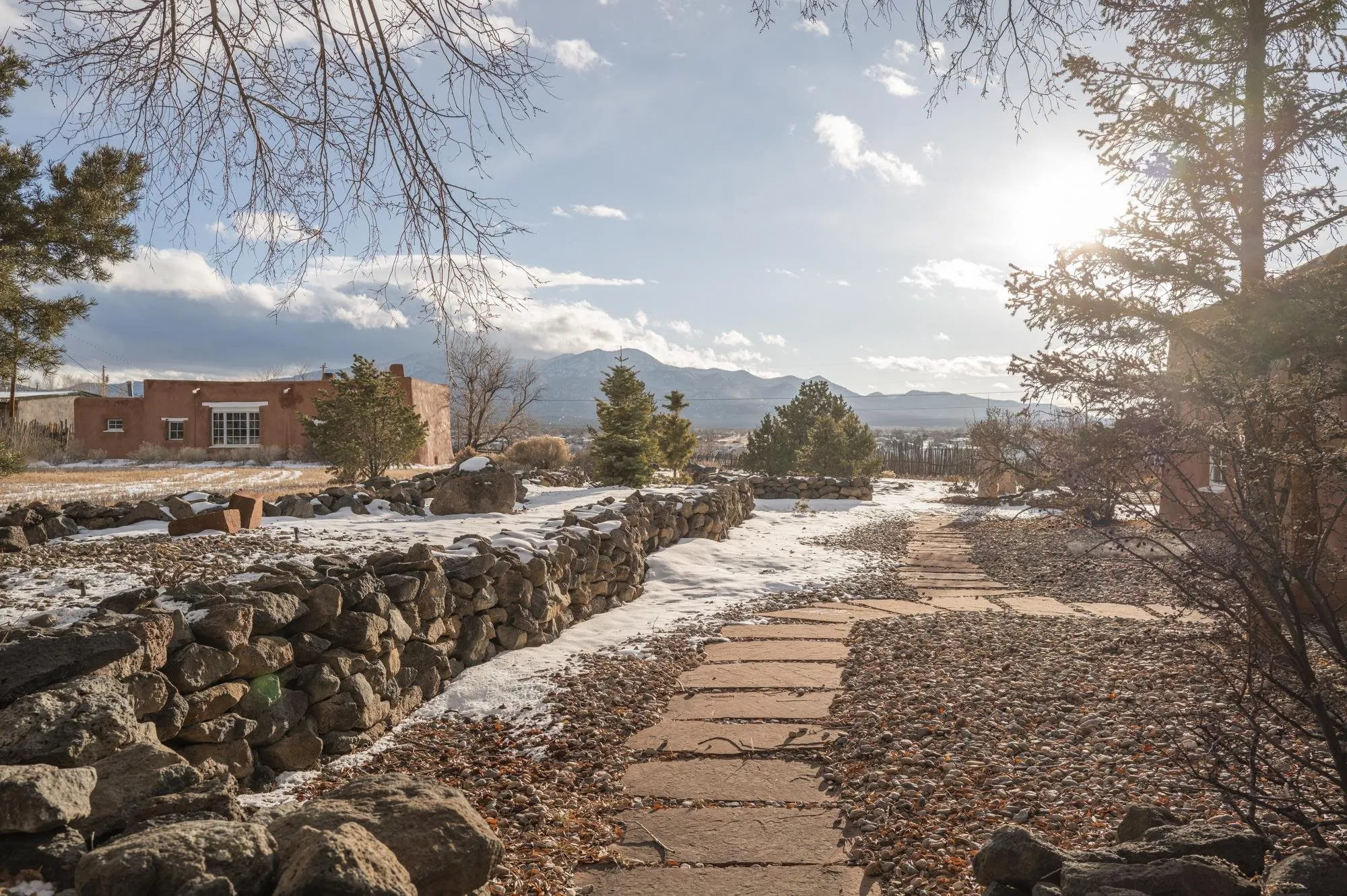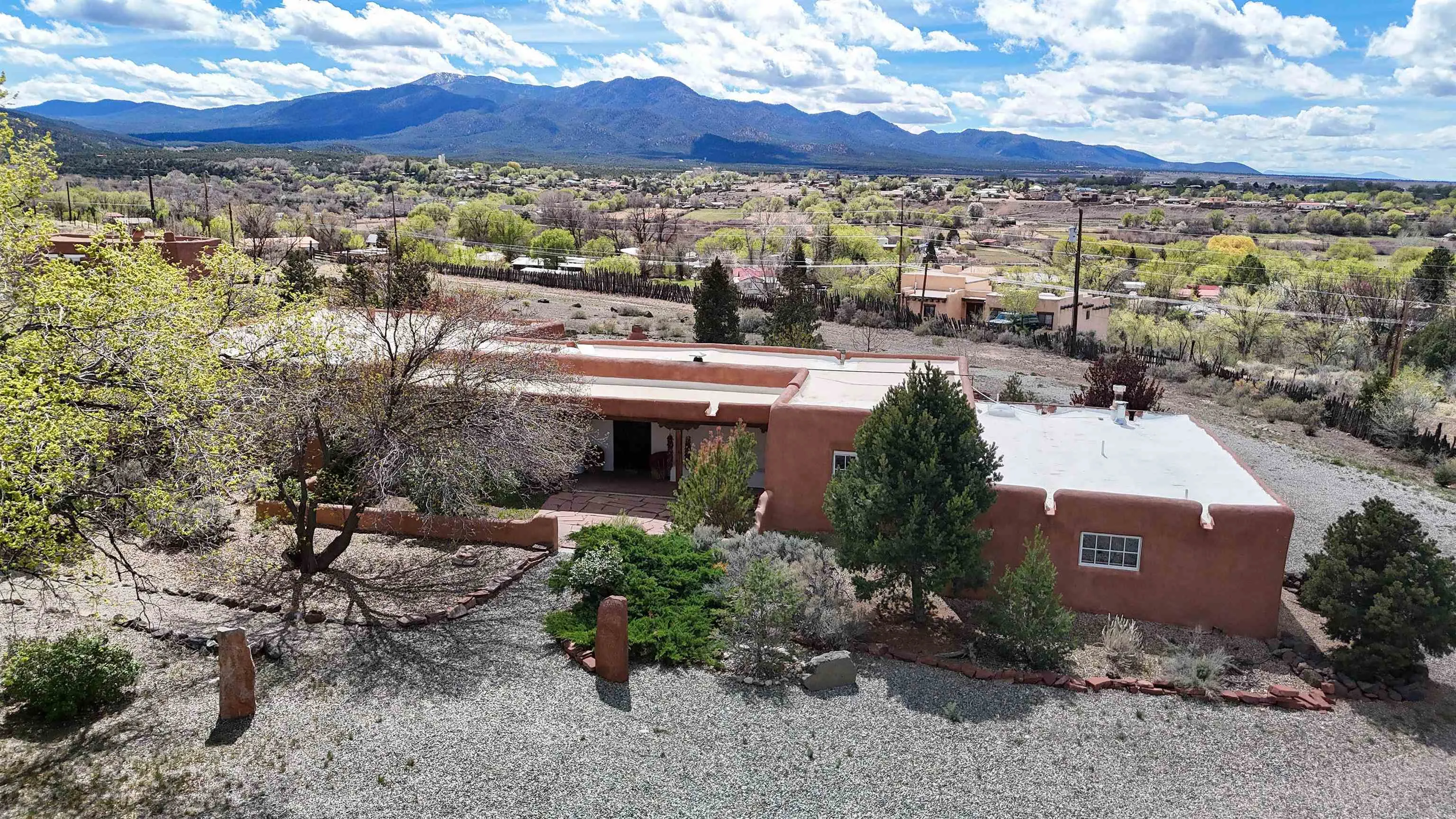 Tucked away in Ranchos de Taos, this exceptional adobe compound is ideally located along a ridge line for views, and in one of the oldest and most storied parts of Taos. Just minutes from the iconic San Francisco de Asís Church, and along the gateway to the scenic High Road to Taos, the property also offers easy access to Taos Plaza, Ranchos Plaza, Angel Fire and the Taos Country Club to the south. The feeling of History is unmistakable in this timeless Northern New Mexico Hacienda, situated on 4.61 acres of irrigated land, and a part of the ancient acequia water system that flows throughout the Taos valley. Originally built in the 1830s, and once home to renowned Modernist painter Andrew Dasburg, the property thoughtfully blends architectural authenticity and location, with modern comforts and upgrades for the next Owner. The main residence features six traditional kiva fireplaces, thick adobe walls, soft plaster finishes, arched doorways, Built-in wall nichos and bancos, and handcrafted details throughout. Upgraded Sierra Pacific windows frame expansive views of Taos Mountain and the surrounding Sange de Cristos. The main house is over 2,700 SF and includes three bedrooms and four baths. The country kitchen includes, hand-tiled counters, herringbone brick floors, exposed beams, open shelving, upscale appliances, and a vintage-style gas range. Multiple living and dining spaces with traditional kiva fireplaces, provide flexibility for entertaining, creative use, or quiet retreat. Baths feature artisan details with Saltillo tile floors, custom-painted sinks, updated fixtures, and tile accents. In addition to the main house, this expansive compound includes a private 935 SF adobe guesthouse. The one bedroom, 1.5 bath casita is filled with natural light, has a large kitchen, and two kiva fireplaces! It’s perfect for a creative studio or workshop, living quarters for a parent or older children, visitors, or even a rental for extra income. Outdoor living is a hallmark of the Taos lifestyle, and this property is highlighted by a deep covered exterior portal with carved wood supports, brick floors, and multiple seating areas. The Landscaped grounds include flowering beds, extensive gardens, mature trees, and irrigation rights. Don’t miss the lovely outdoor gathering space, with a large kiva fireplace, curved banco seating, and a flagstone patio and firepit. There is room for additional buildings and plenty of open space to enhance the feel of a Taos Oasis. Additional features of this home include a detached carport, a storage shed, fully fenced property, and Exceptional privacy—just minutes from the cultural heart of Taos, known for its galleries, history, and outdoor recreation. Call us today to arrange a private tour or for additional questions. We look forward to showing you just how iconic this property really is!