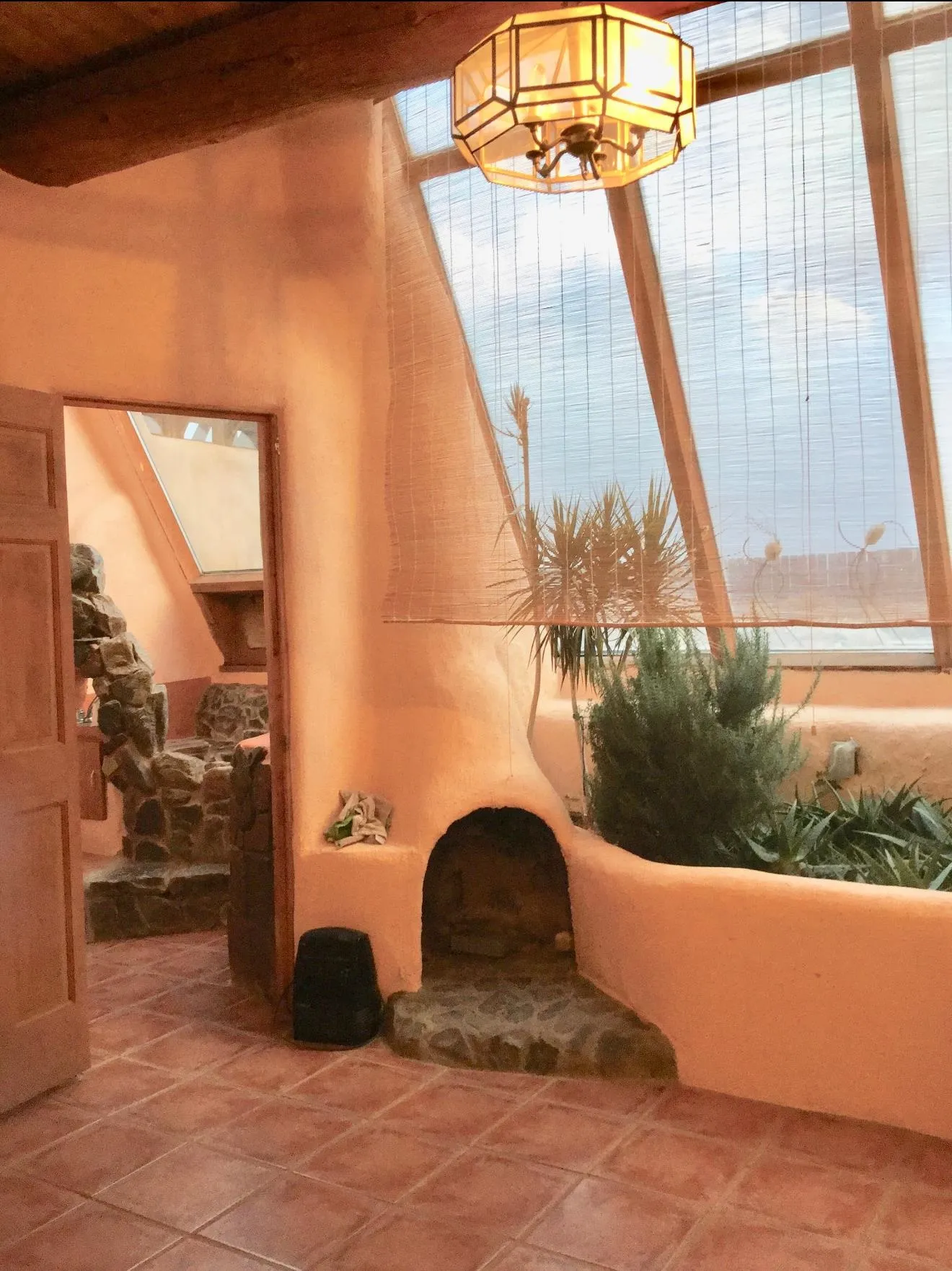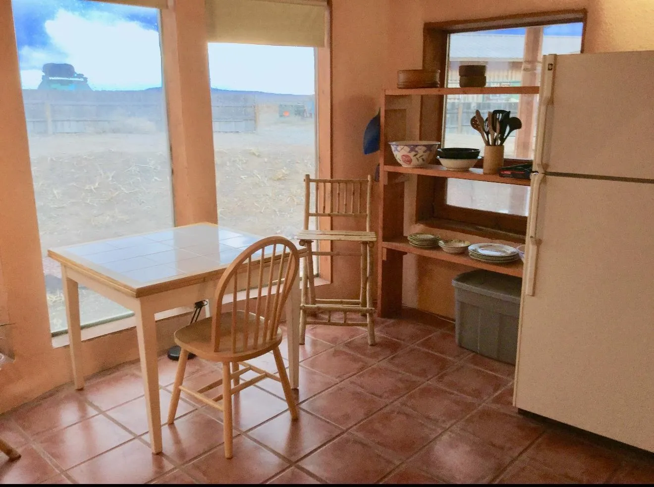 An Earthship (Aloe Vera House) as the main house, shared wall with the Casita (Rosemary Casita), and a Studio (Turquoise House) as a separate guest house with a barn, five stalls, corrals, and extra space to expand with ~2 empty acres of land. All income producing properties could bring in $6,000 per month with all three rented out. The Aloe Vera House has the furthest entrance with a private fenced -in yard and a sliding door to the living room or possible second bedroom. Insert woodstove in the kiva fireplace for toasty warmth with your honey on cold nights. A few steps down to the Master Bedroom, two closets (His and hers etc.), and a beautifully lit bathroom with a skylight. This home was re-stuccoed three years ago and is in great shape/well-maintained/loved. The open concept dining, kitchen and possible mini-living room allow lots of storage with a wash room/pantry off the kitchen and a foyer to the front door. Completely remodeled kitchen! Move-in ready or investment property with current tenants. A shared mechanical room to the Casita, fiberoptic for the whole building, and an on-demand water heater for you or your tenants! The Casita also has a private entrance so nobody really sees each other in passing. As you enter the Casita you step into another foyer for your shoes and coats and a kitchenette with two hot plates mounted on the counter with a mini double-oven included. The Pantry/closest is a tri-level design hidden behind the mini living space! The tri-level loft bedroom is cozy and built above the pantry. Laundry on-site for tenants at the Turquoise House next door. The bathroom is the star of the show at the Casita with a stunning rock tub and rock features. Natural light doesn’t disappoint! The Studio Turquoise House has been transformed into an Artist’s Dream with a huge open studio space, woodstove, office space, propane heater and a loft bedroom. The second half of the studio is the living space with a full kitchen, full bath, living room, and bedroom with a reading nook for your bookshelves and office space. The Turquoise House has two outdoor seating areas – one in the front for extra sun and one in the back for shade and sunsets on the mountains! About 2-3 acres of the property comprise of corrals and the barn. Hiking and riding trails nearby and possible investment behind the property – 50,000 acres! Full of history, beauty, infinite ideas, and creativity for a new owner to take over current leases or to turn this dwelling into your mini universe of divine energy!