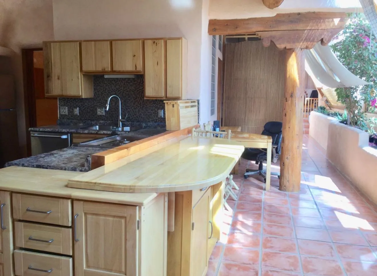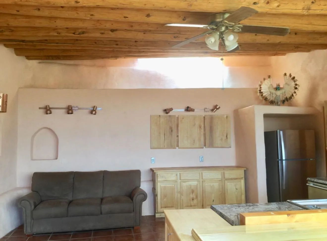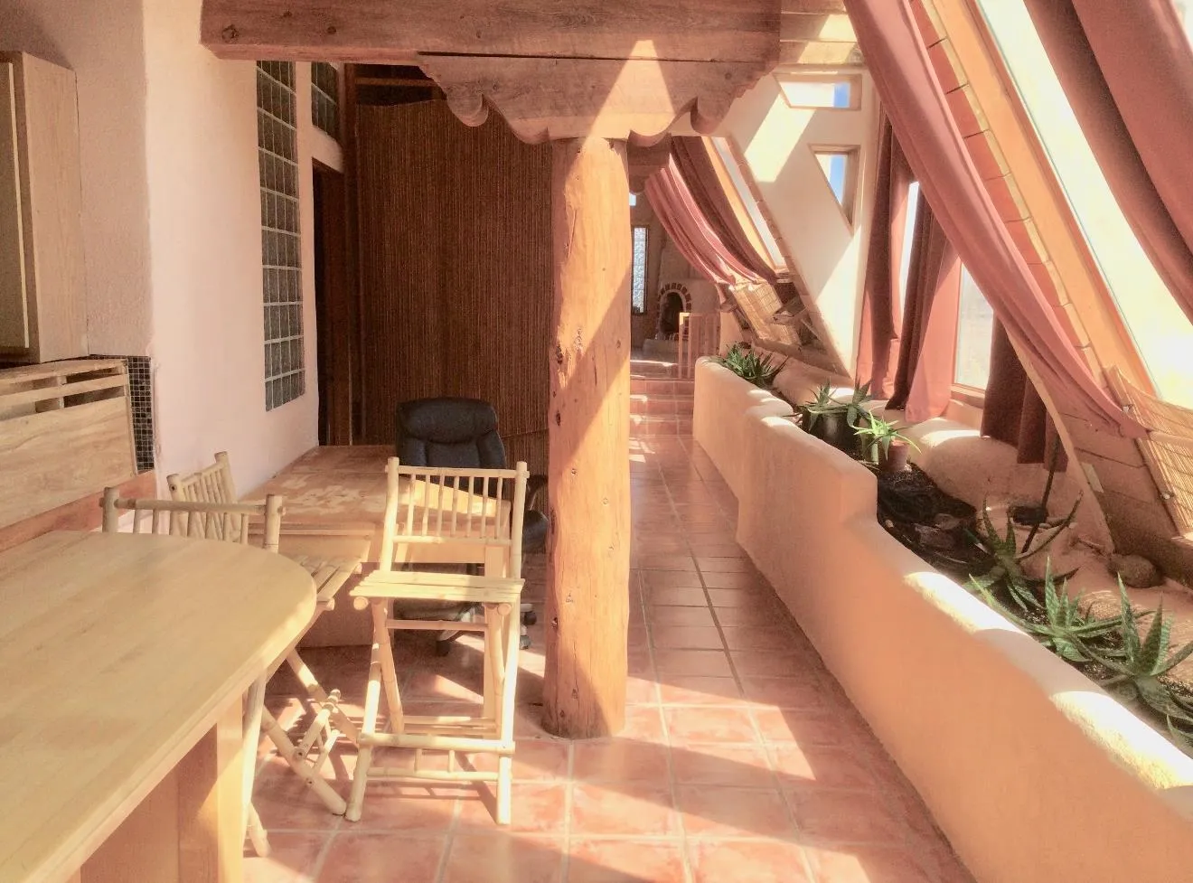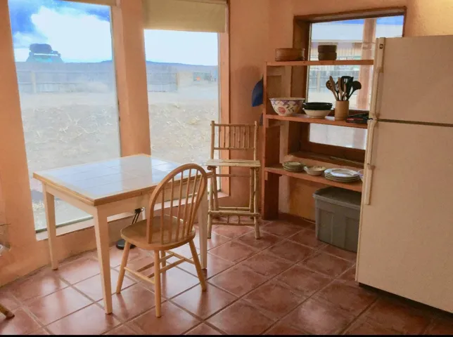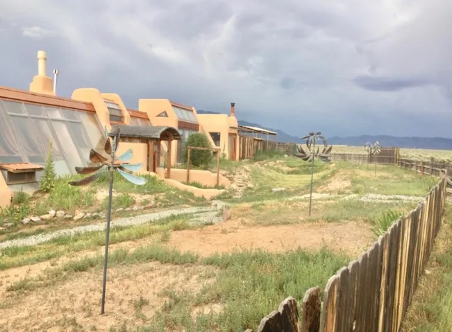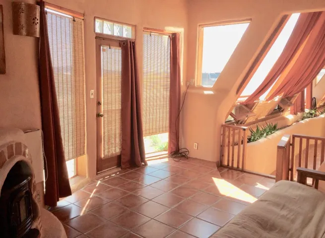 An Earthship (Aloe Vera House) as the main house, shared wall with the Casita (Rosemary Casita), and a Studio (Turquoise House) as a separate guest house with a barn, five stalls, corrals, and extra space to expand with ~2 empty acres of land. All income producing properties could bring in $6,000 per month with all three rented out. The Aloe Vera House has the furthest entrance with a private fenced-in yard and a sliding door to the living room or possible second bedroom. Insert woodstove in the kiva fireplace for toasty warmth with your honey on cold nights. A few steps down to the Master Bedroom, two closets (His and hers etc.), and a beautifully lit bathroom with a skylight. This home was re-stuccoed three years ago and is in great shape/well-maintained/loved. The open concept dining, kitchen and possible mini-living room allow lots of storage with a wash room/pantry off the kitchen and a foyer to the front door. Completely remodeled kitchen! Move-in ready or investment property with current tenants. A shared mechanical room to the Casita, fiberoptic for the whole building, and an on-demand water heater for you or your tenants! The Casita also has a private entrance so nobody really sees each other in passing. As you enter the Casita you step into another foyer for your shoes and coats and a kitchenette with two hot plates mounted on the counter with a mini double-oven included. The Pantry/closest is a tri-level design hidden behind the mini living space! The tri-level loft bedroom is cozy and built above the pantry. Laundry on-site for tenants at the Turquoise House next door. The bathroom is the star of the show at the Casita with a stunning rock tub and rock features. Natural light doesn’t disappoint! The Studio Turquoise House has been transformed into an Artist’s Dream with a huge open studio space, woodstove, office space, propane heater and a loft bedroom. The second half of the studio is the living space with a full kitchen, full bath, living room, and bedroom with a reading nook for your bookshelves and office space. The Turquoise House has two outdoor seating areas – one in the front for extra sun and one in the back for shade and sunsets on the mountains! About 2-3 acres of the property comprise of corrals and the barn. Hiking and riding trails nearby and possible investment behind the property – 50,000 acres! Full of history, beauty, infinite ideas, and creativity for a new owner to take over current leases or to turn this dwelling into your mini universe of divine energy!