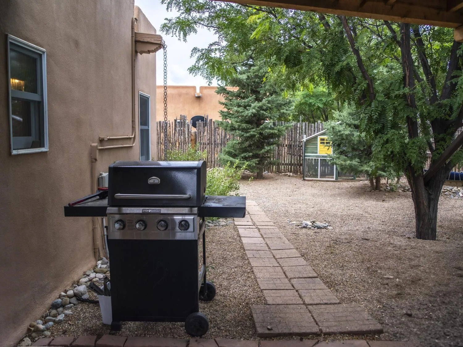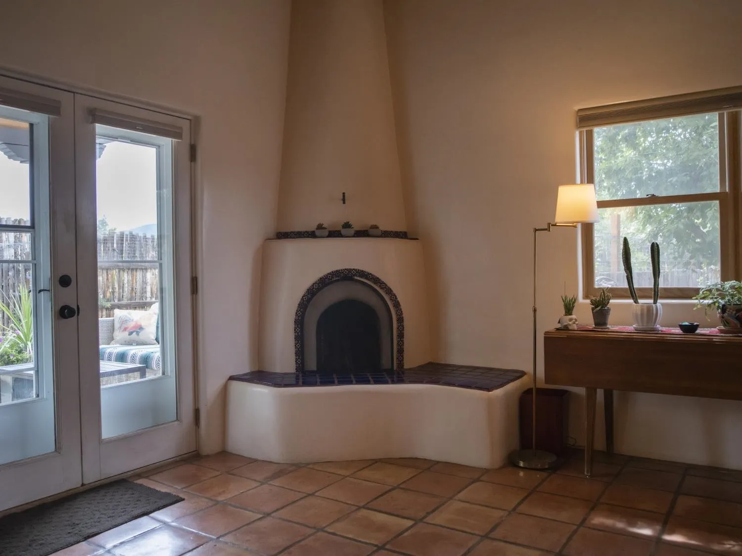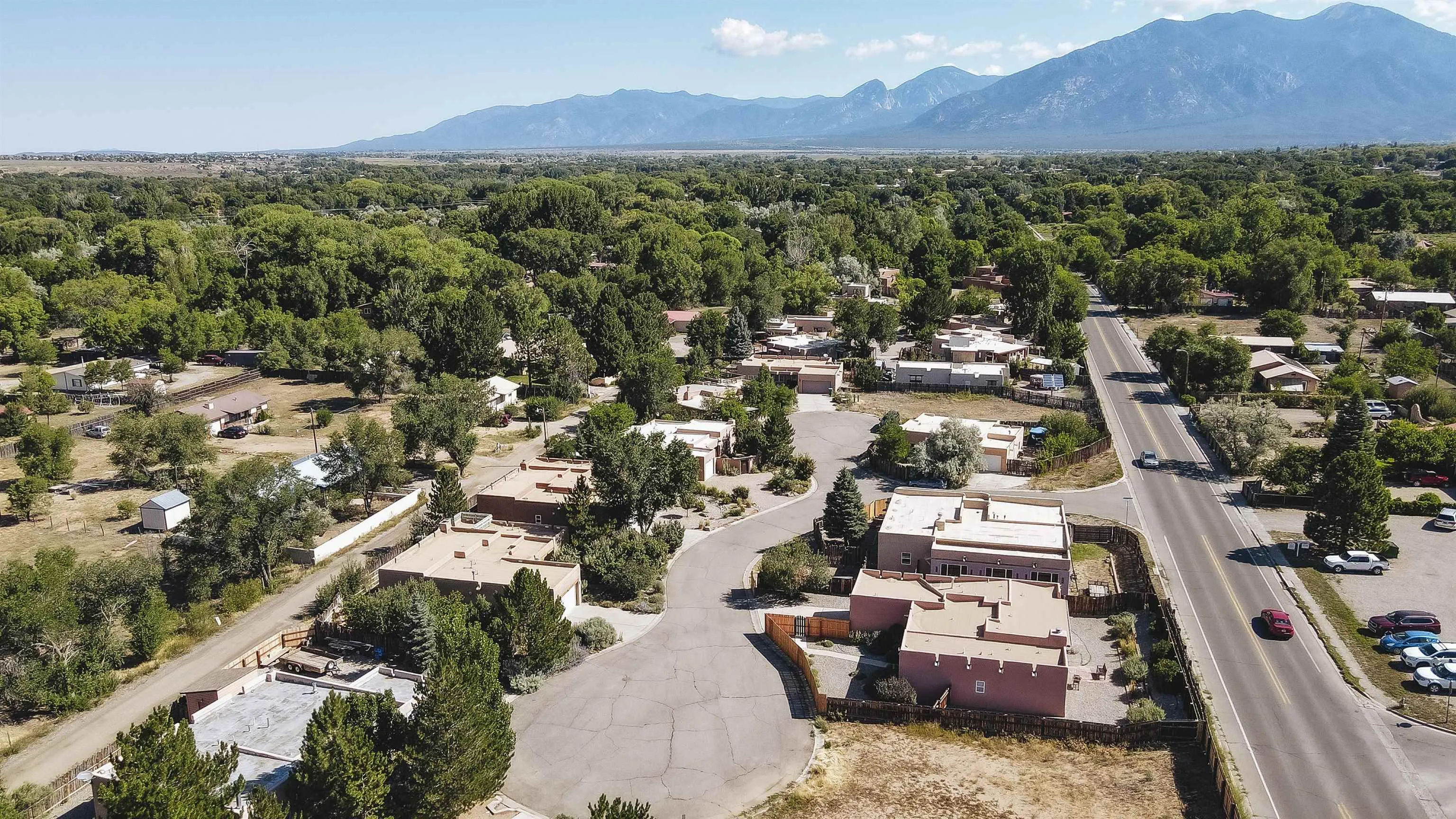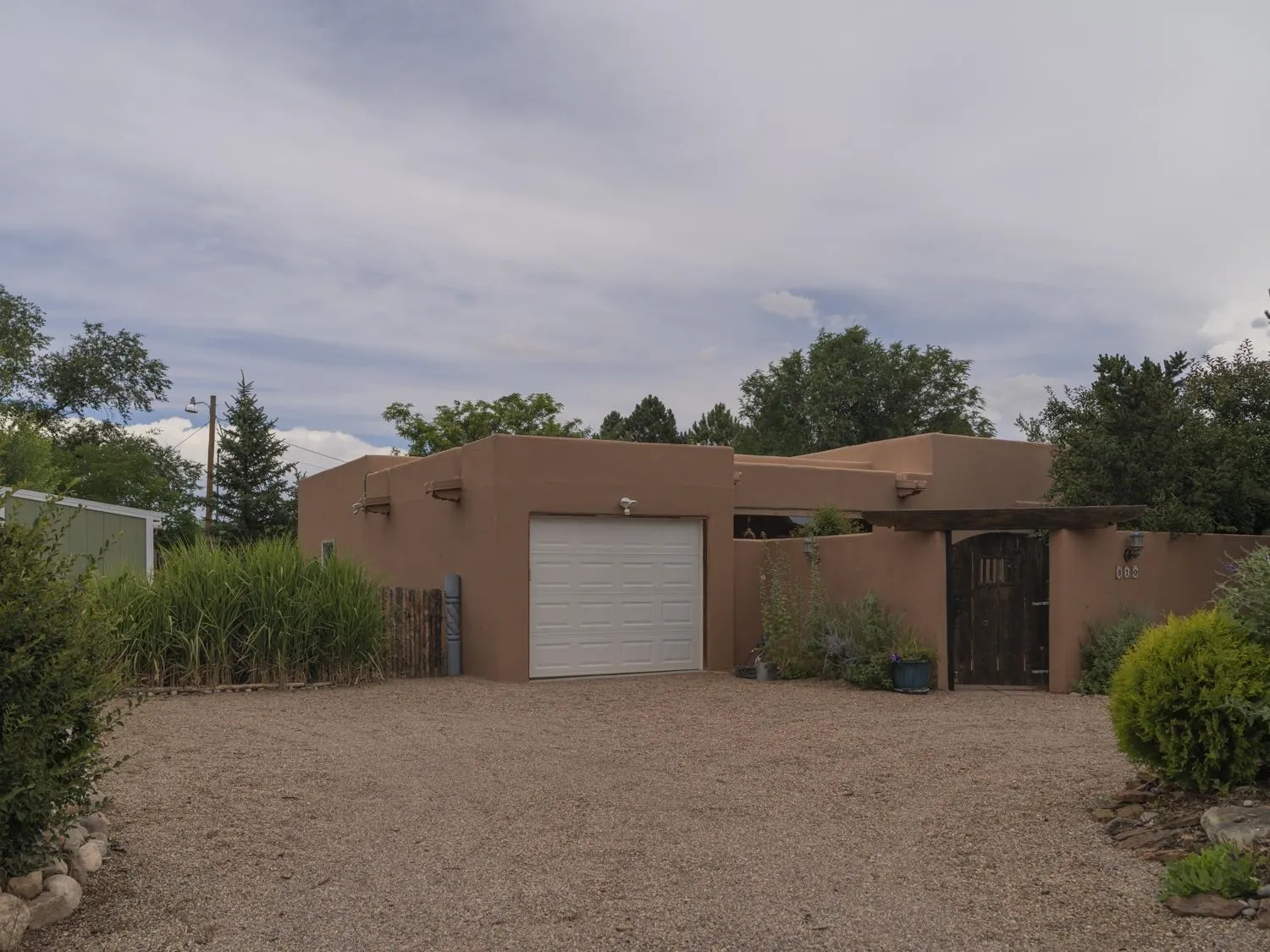 YOUR PICTURE-PERFECT TAOS DREAM HOME delivers the ultimate combination of village walkability and private sanctuary living. Perfectly positioned just steps from the historic Taos Plaza, galleries, vibrant restaurants, and the beautifully renovated Fred Baca Park this move-in-ready 3-bedroom, 2-bathroom Pueblo-style residence offers an unbeatable location without sacrificing serenity. The experience begins at the front gate, where a fully fenced perimeter leads to a beautifully manicured entry courtyard. The gentle sound of a trickling fountain sets a tranquil tone before you even step through the front door. Inside, the 1,462-square-foot open floor plan is a masterclass in Southwestern craftsmanship, featuring authentic viga and tongue-and-groove ceilings, tiled floors throughout, and a charming traditional fireplace that serves as the heart of the living space. The chef’s kitchen has been thoughtfully reimagined with new upscale appliances, ample counter space for preparation, a casual dining breakfast bar, and plentiful storage. Designed for effortless year-round comfort, the residence features the constant warmth of radiant floor heat and the modern efficiency of mini-split air conditioning—a rare luxury for in-town living. The expansive primary suite serves as a true retreat, offering an attached bath and direct access to a stunning landscaped patio where a secluded hot tub awaits under the stars. Two additional bedrooms provide versatile space for a creative studio, home office, or guest quarters. The outdoor living spaces are a hidden oasis of sustainability and peace. Beyond the flagstone patio, the meticulously landscaped backyard reveals a lush environment with prolific pear trees, a “magical” quartz fountain, and numerous vignettes designed for lounging, dining, or meditation. Additional features include an attached one-car garage with custom shelving and an “adorable green shed” for extra storage. Connected to town water, sewer, and natural gas, this home provides the ultimate in convenience. Live in a community where local treasures are at your doorstep, all while enjoying the quiet, turn-key seclusion of this meticulously maintained Taos jewel.