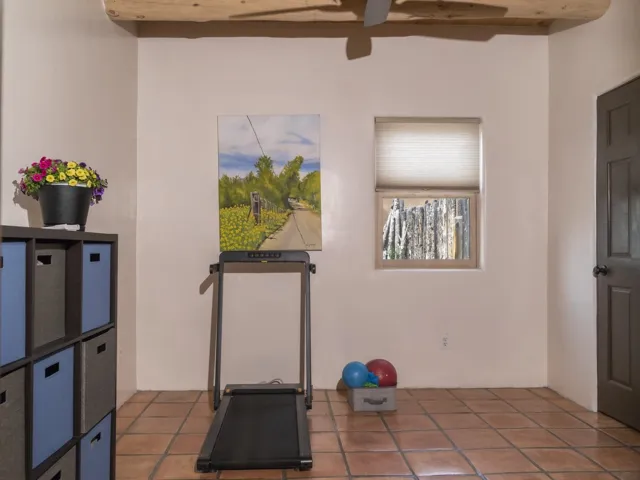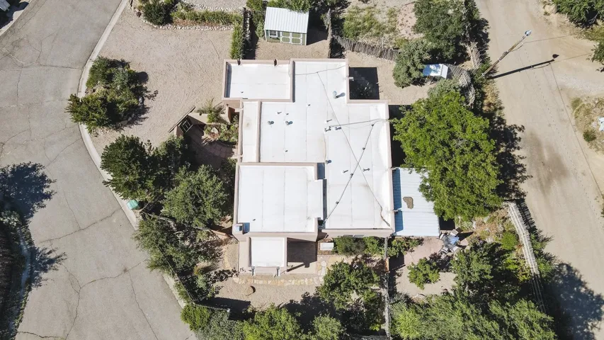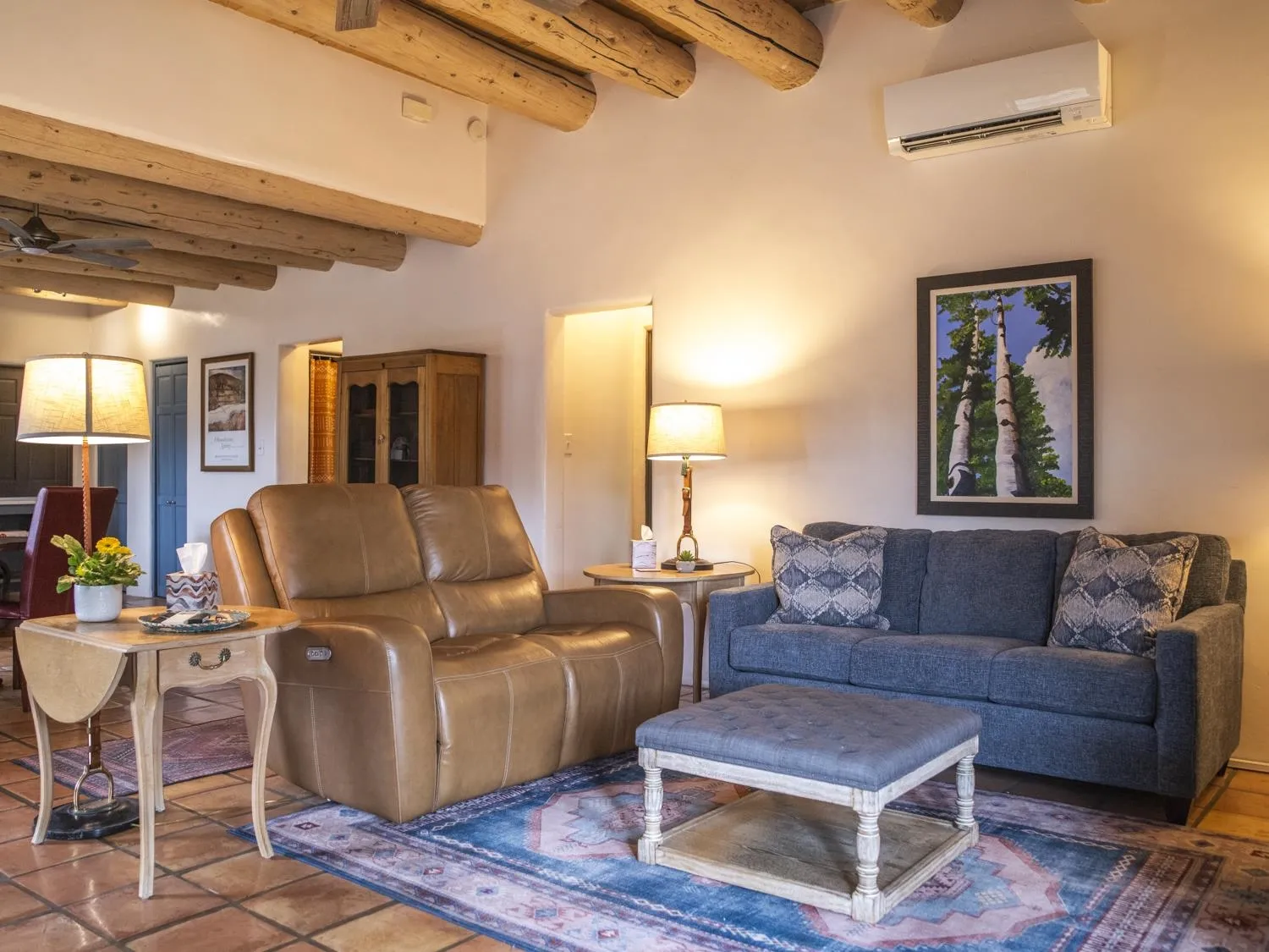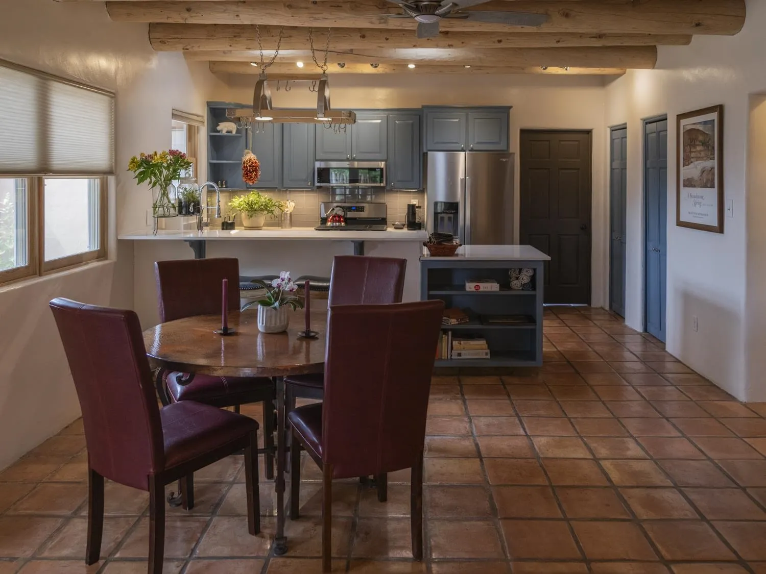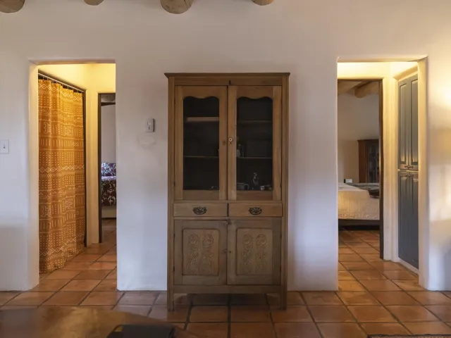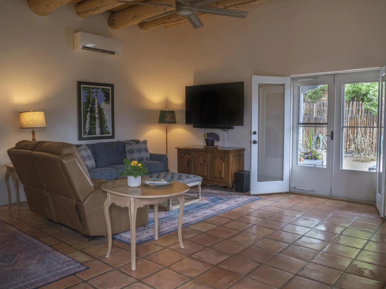 YOUR PICTURE-PERFECT TAOS DREAM HOME delivers the ultimate combination of village walkability and private sanctuary living. Perfectly positioned just steps from the historic Taos Plaza, galleries, vibrant restaurants, and the beautifully renovated Fred Baca Park this move-in-ready 3-bedroom, 2-bathroom Pueblo-style residence offers an unbeatable location without sacrificing serenity. The experience begins at the front gate, where a fully fenced perimeter leads to a beautifully manicured entry courtyard. The gentle sound of a trickling fountain sets a tranquil tone before you even step through the front door. Inside, the 1,462-square-foot open floor plan is a masterclass in Southwestern craftsmanship, featuring authentic viga and tongue-and-groove ceilings, tiled floors throughout, and a charming traditional fireplace that serves as the heart of the living space. The chef’s kitchen has been thoughtfully reimagined with new upscale appliances, ample counter space for preparation, a casual dining breakfast bar, and plentiful storage. Designed for effortless year-round comfort, the residence features the constant warmth of radiant floor heat and the modern efficiency of mini-split air conditioning—a rare luxury for in-town living. The expansive primary suite serves as a true retreat, offering an attached bath and direct access to a stunning landscaped patio where a secluded hot tub awaits under the stars. Two additional bedrooms provide versatile space for a creative studio, home office, or guest quarters. The outdoor living spaces are a hidden oasis of sustainability and peace. Beyond the flagstone patio, the meticulously landscaped backyard reveals a lush environment with prolific pear trees, a “magical” quartz fountain, and numerous vignettes designed for lounging, dining, or meditation. Additional features include an attached one-car garage with custom shelving and an “adorable green shed” for extra storage. Connected to town water, sewer, and natural gas, this home provides the ultimate in convenience. Live in a community where local treasures are at your doorstep, all while enjoying the quiet, turn-key seclusion of this meticulously maintained Taos jewel.