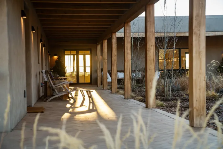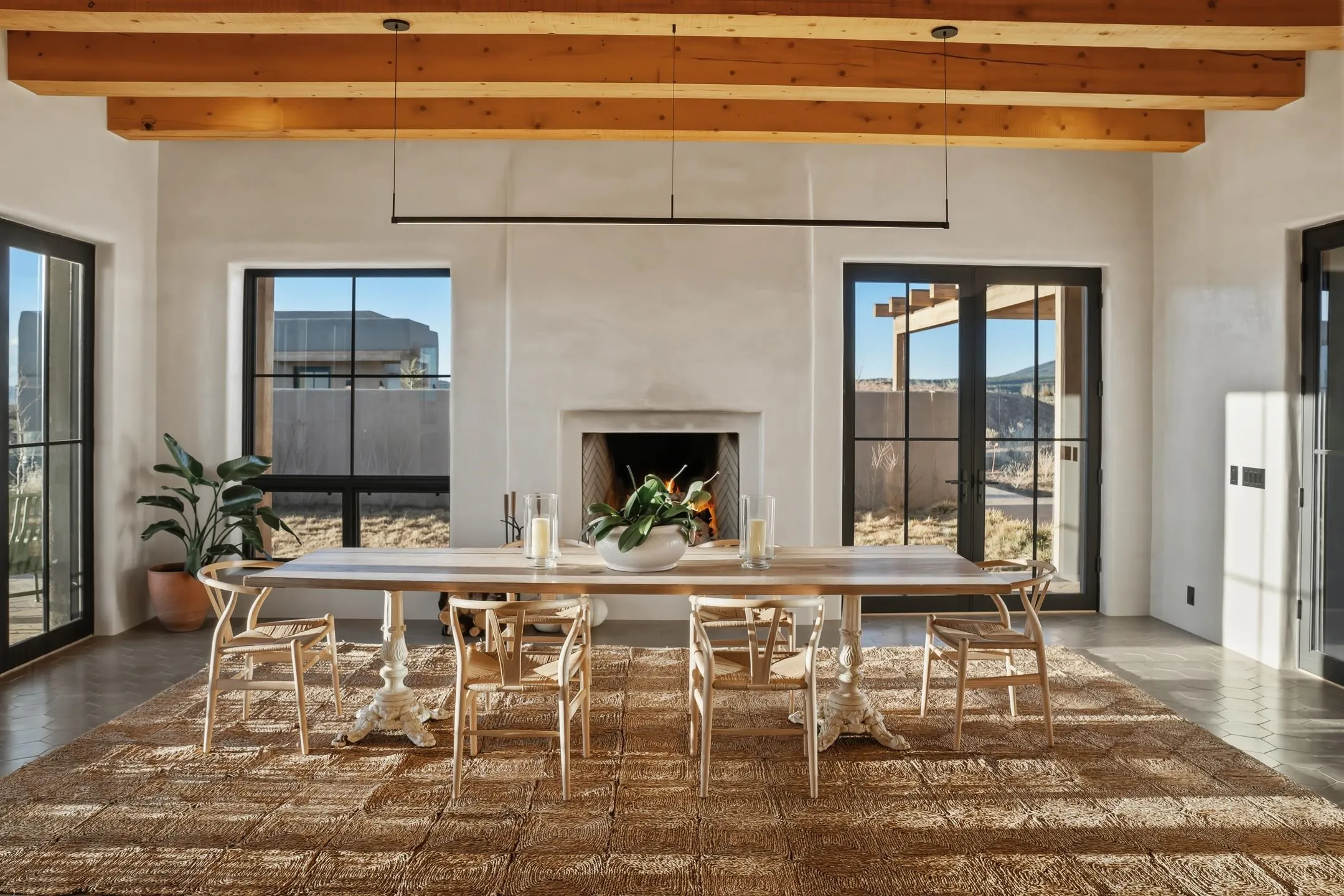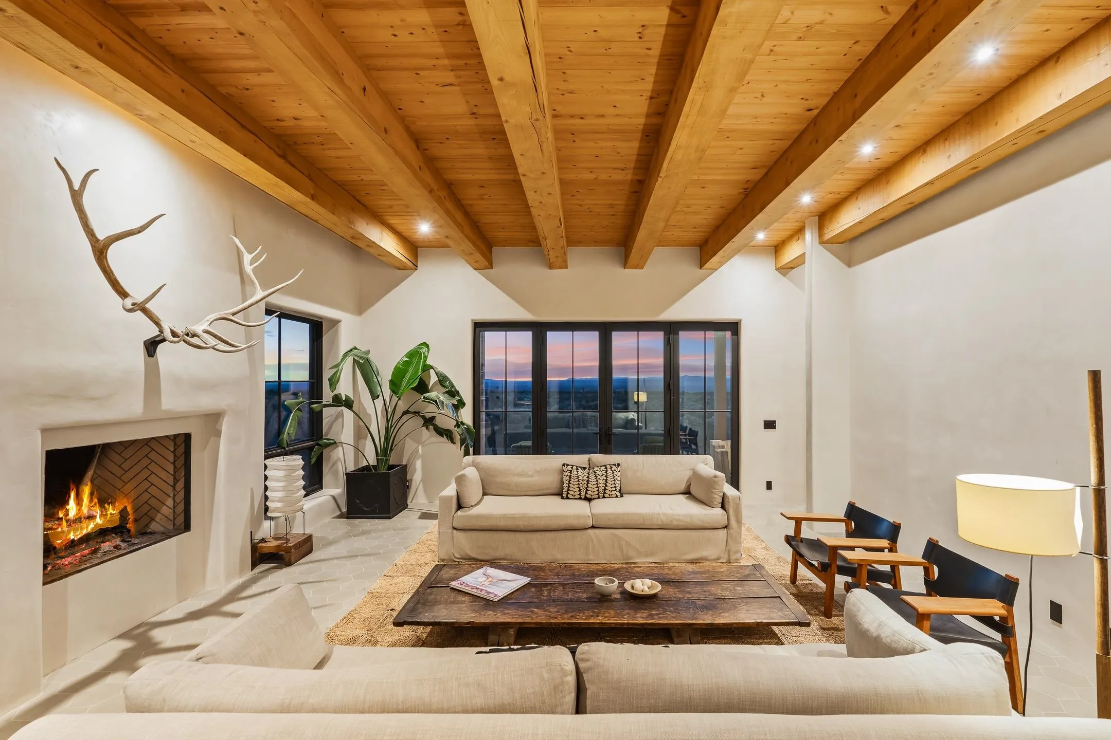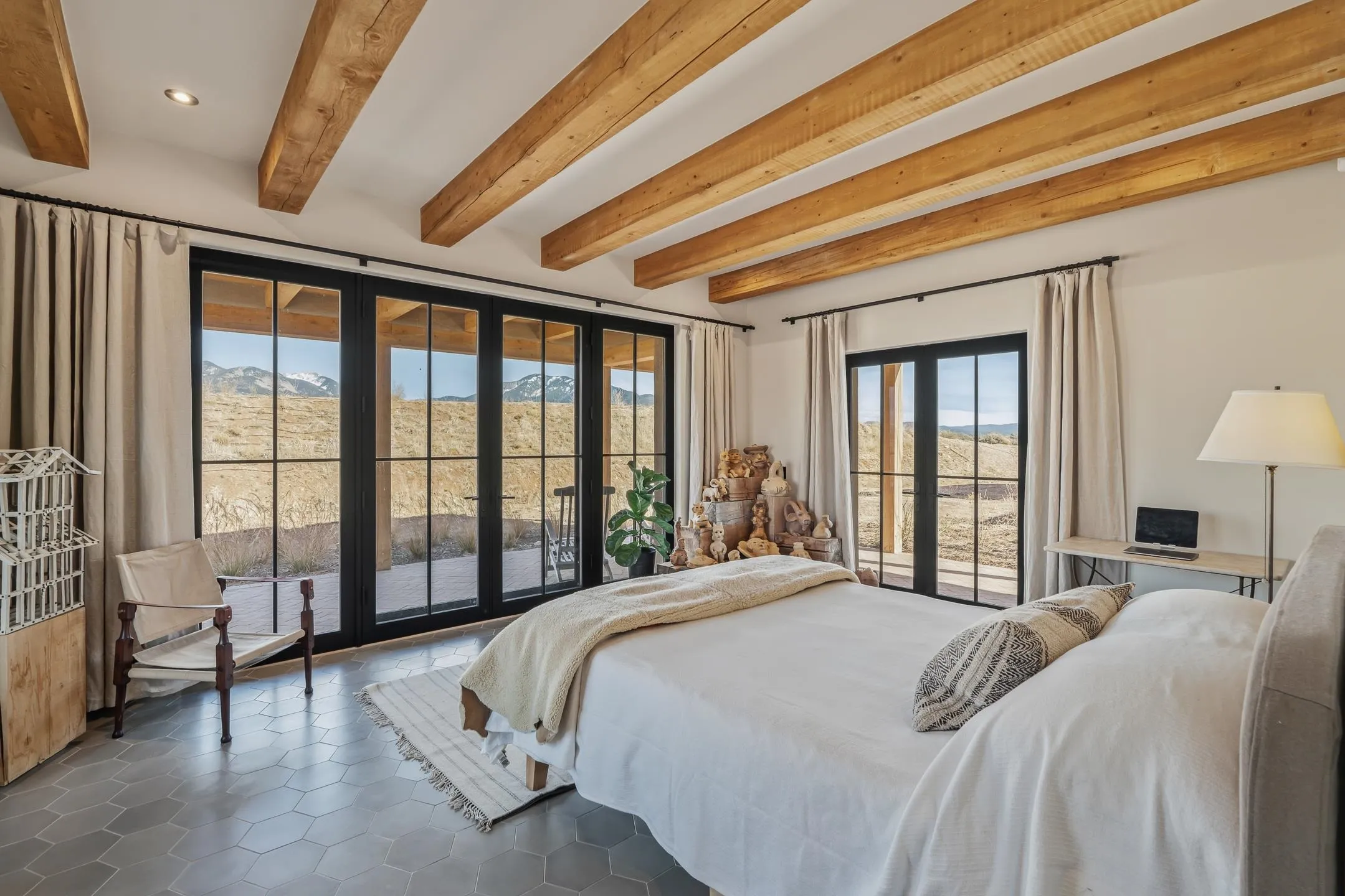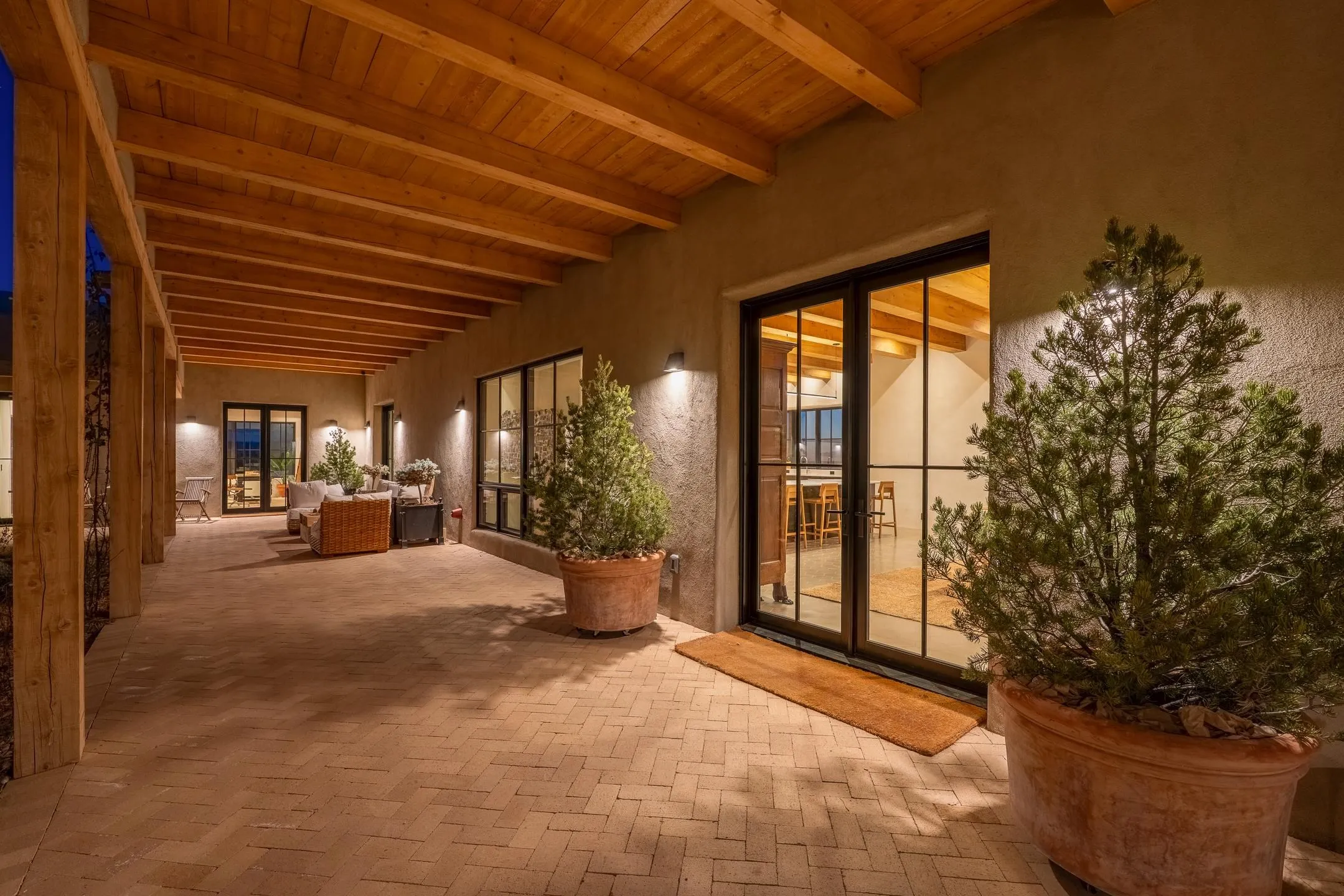Completed in August 2024, this architecturally refined, modern-hacienda-style residence on Cavalry Camp Road offers a rare blend of contemporary design, thoughtful craftsmanship, and true indoor-outdoor living. Designed by Jed Magee of Magee Design, LLC and built by Aaron Magee of Magee Build, the property embodies exceptional attention to detail, materials, and long-term performance. The property is located in the highly desirable area of Arroyo Seco, with Taos Ski Valley just 20 minutes away, offering access to world-class skiing and year-round mountain recreation. Shopping, dining, and the Historic Taos Plaza are also conveniently close by, providing easy access to the cultural and culinary heart of Taos. The residence sits on 10 acres and borders Pueblo land, which provides additional privacy and long-term protection of the surrounding landscape and stunning views. The residence spans 4,492 square feet across a main residence and a fully independent guest residence, providing flexibility for hosting, multi-generational living, or creative use. The home’s purposeful siting frames dramatic views of the Sangre de Cristo Mountains to its east and reveals an unobstructed 180° sunset panorama to its west. The main residence (3,108 sq ft) features 2 bedrooms and 2 baths, while the guest residence (1,384 sq ft) offers 3 bedrooms and 2.5 baths, for a total of 5 bedrooms and 4.5 bathrooms (including one bedroom currently used as a library). Each part of the extended home is designed to open to the substantial 2,700+ sq ft courtyard of lavender, English roses, and native plants. Both the main house and the guest wing are fully self-sufficient with separate radiant heating systems, dedicated on-demand water heaters, laundry facilities, and mechanical rooms, ensuring comfort, efficiency, and privacy. Each room is equipped with individual smart thermostats, and a centralized smart home hub allows seamless control of lighting and heating throughout the property. Indoor spaces open gracefully to expansive exterior living areas, including a substantial 2,400 square feet of covered portals framing the central courtyard and multiple patios positioned to capture light, extraordinary views, and total privacy—hallmarks of the home’s modern hacienda design. A detached two-car garage completes the compound. Constructed with 6-inch ICF walls for superior insulation and durability, the residence features TPO roofing with copper-lined cedar canales, cottonwood-colored stucco, and Sierra Pacific clad windows and doors. Interior finishes include pigmented finish plaster walls, quartz countertops throughout, two fireplaces, and Zia handmade encaustic cement tile flooring. The primary and guest baths are accented with Zia handmade cotto tile, reinforcing the home’s refined Southwestern character. The kitchen is outfitted with a premium appliance suite, including Wolf, Sub-Zero, Monogram, and Bosch, complemented by multiple freezer units for convenience and storage. This newly completed residence offers a compelling combination of architectural integrity, craftsmanship, privacy, protected views, and lifestyle—ideal for those seeking a private courtyard compound in one of Arroyo Seco’s most desirable settings with convenient access to Taos Ski Valley and the very best of Taos. MATTERPORT VIDEO LINK: https://www.zillow.com/view-imx/5030e743-d9f9-4232-ae0e-d473c40fdee2?setAttribution=mls&wl=true&initialViewType=pano&utm_source=dashboard