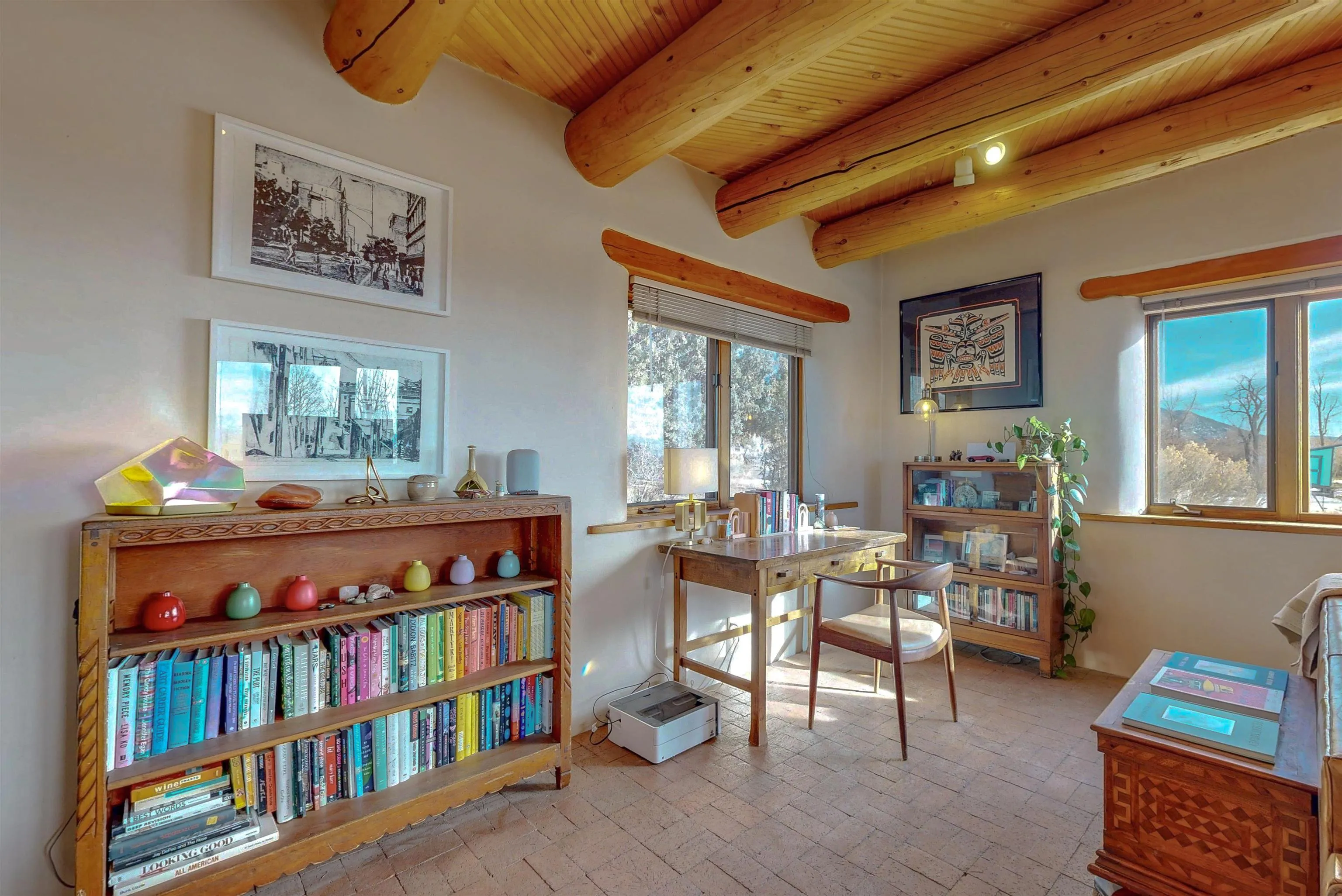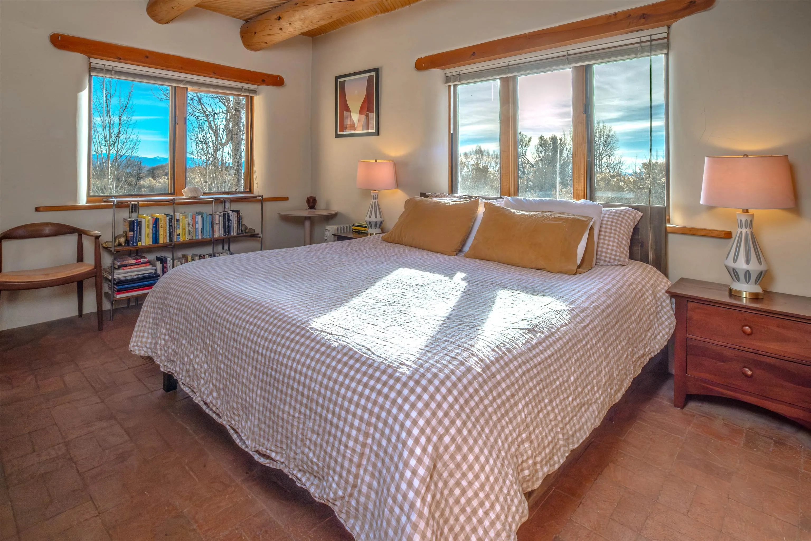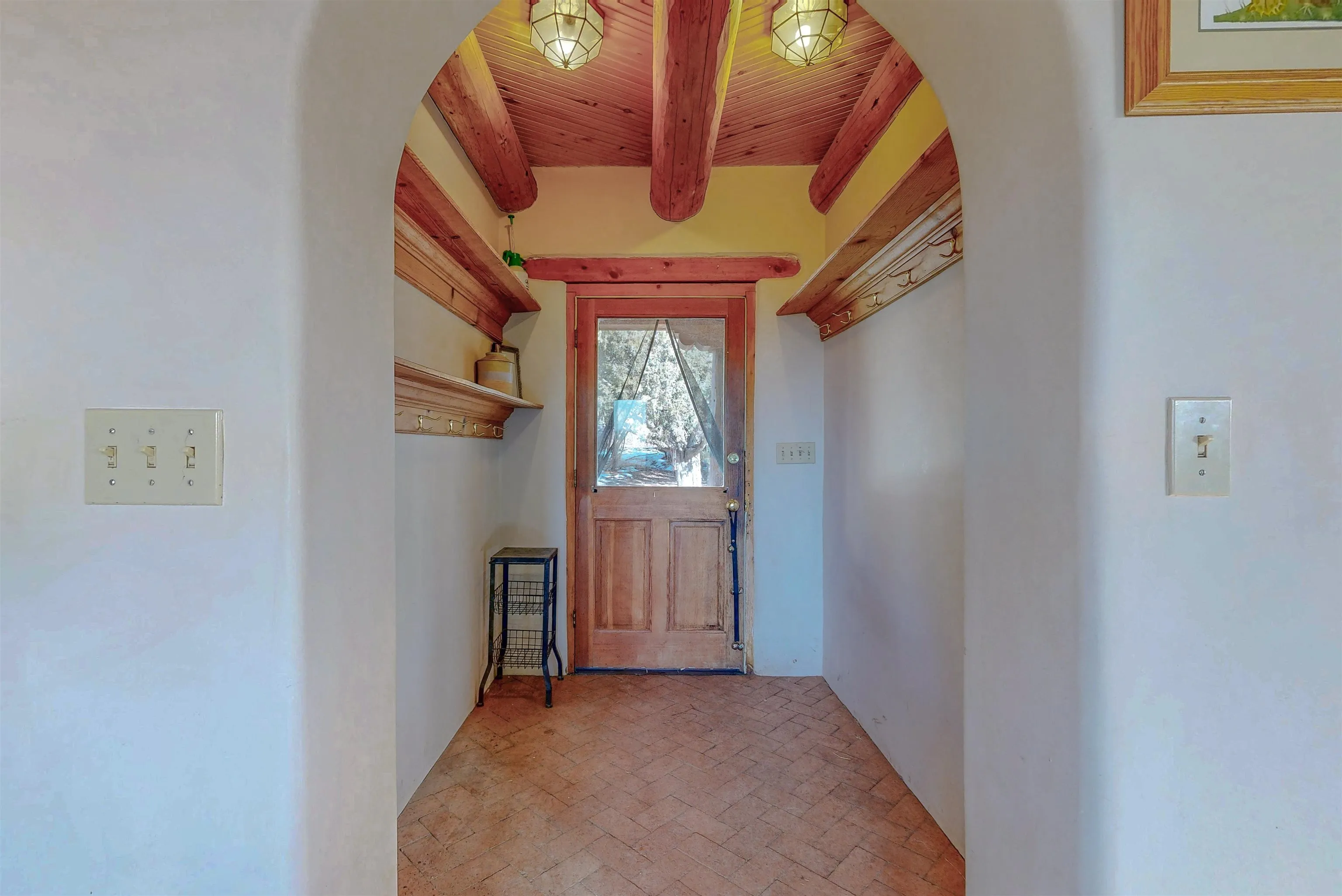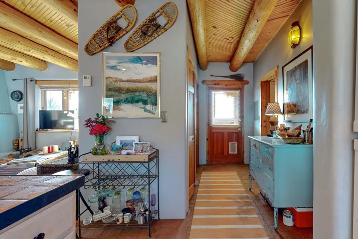 Authentic Adobe Home in Desirable El Salto with Casita & Mountain Views Nestled in the highly sought-after El Salto area, this authentic adobe-and-stucco property offers timeless Northern New Mexico charm amid breathtaking mountain views. The main residence features 2 bedrooms and 2 baths, complemented by a detached 1-bedroom, 1-bath casita — ideal for guests, rental income, studio space, or multigenerational living. Both structures are traditional adobe construction with classic stucco exteriors, reflecting the enduring architectural heritage of Taos. The main home showcases exposed vigas, tongue-and-groove wood ceilings, warm brick flooring, smooth plaster walls, and a charming kiva fireplace that anchors the living area. Expansive windows frame dramatic views of the surrounding mountains and mesa while filling the home with beautiful natural light throughout the day. The kitchen maintains regional character with handcrafted tile details and scenic outlooks. Bedrooms are tranquil and sun-filled, while bathrooms feature colorful tile accents consistent with classic Southwestern style. Outside, the property enjoys wide-open skies, mature trees, and a peaceful setting that captures the magic of El Salto. The detached casita offers privacy and versatility, making this property well-suited for full-time living, a part-time retreat, or investment potential. Located just minutes from the Village of Arroyo Seco with its charming shops, restaurants, galleries, and artisan culture. World-class skiing at Taos Ski Valley is only a short drive away, and the Historic Taos Plaza with additional dining and shopping options is conveniently close. A rare opportunity to own an authentic adobe home and casita in one of Taos’ most desirable and scenic locations. Don’t let this gem slip away! MATTERPORT VIDEO – CASITA https://my.matterport.com/show/?m=RUb6rfUrNaE DRONE VIDEO: https://vimeo.com/1164014754 Fire in fireplaces is virtually staged. Seasonal change photos are virtually staged.