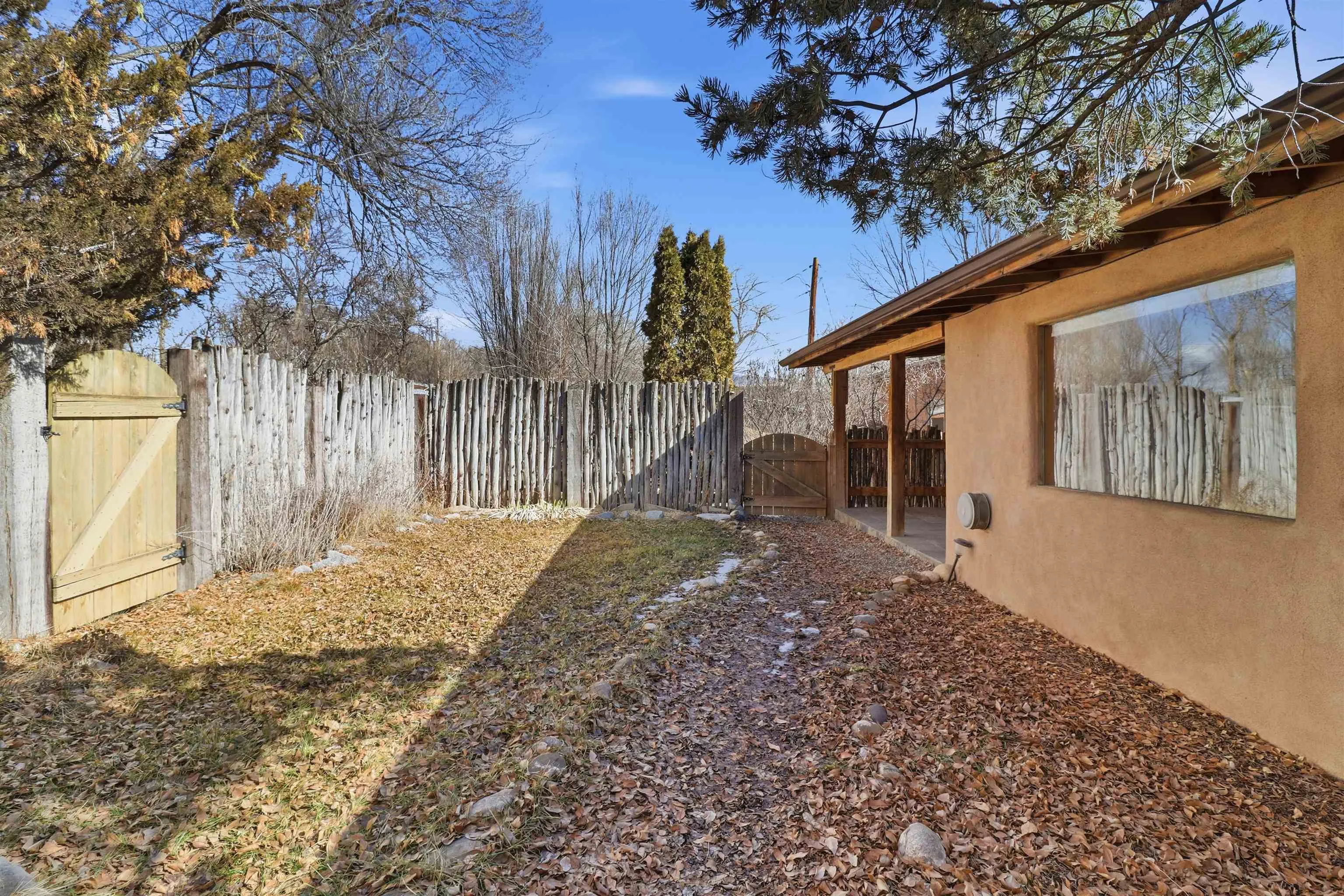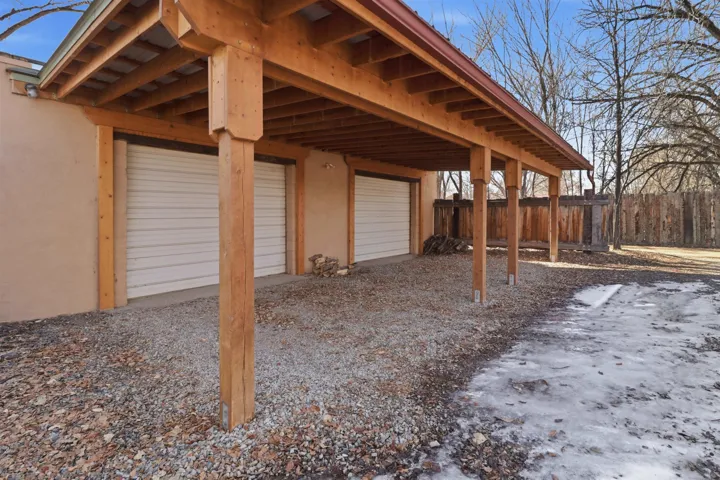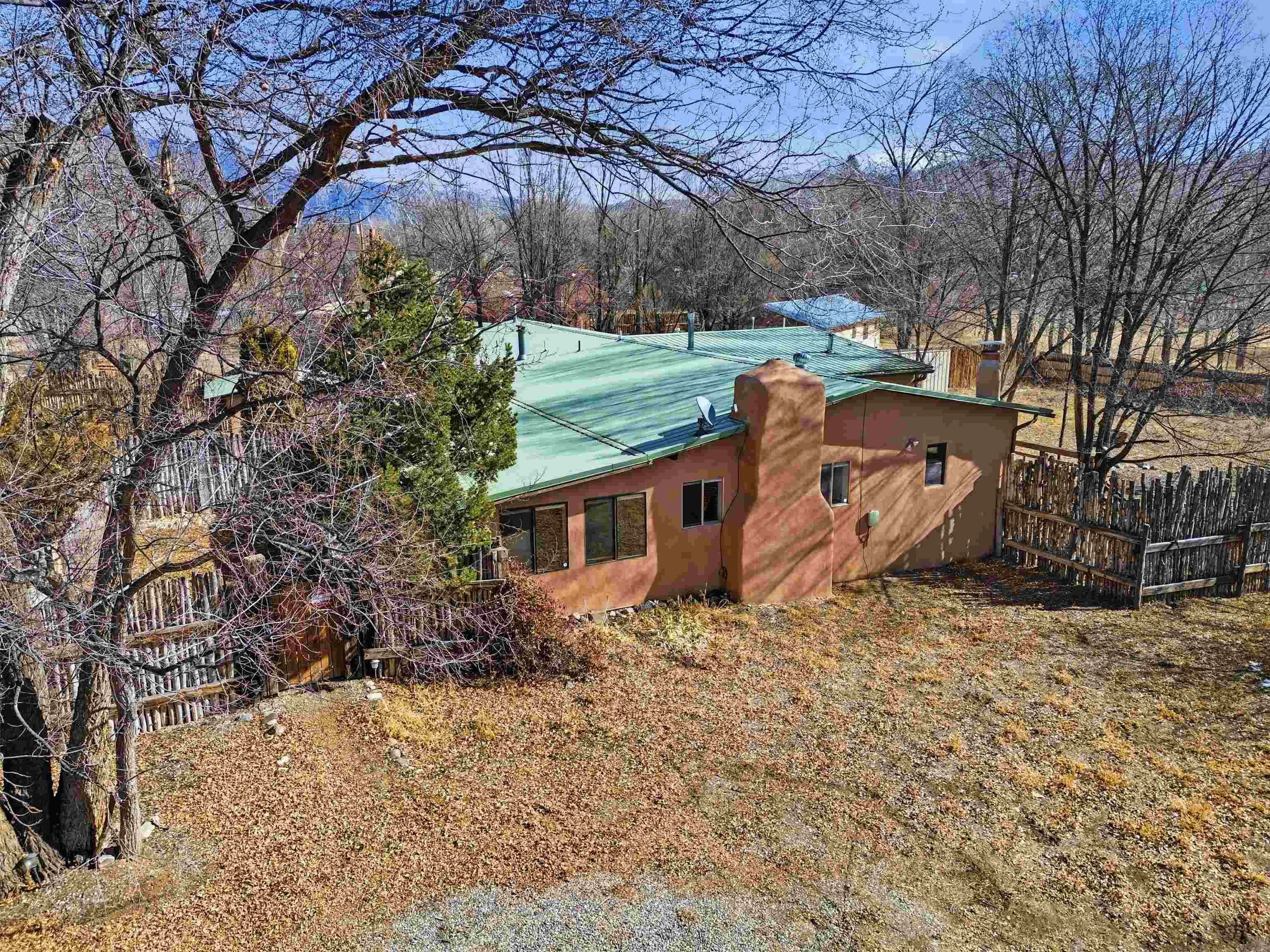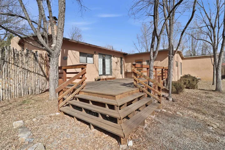 This charming DUPLEX at 104 Guthrie Lane #A & B, Taos, NM 87571 offers an exceptional opportunity for comfortable living with strong income-producing potential in a prime location just minutes from the center of Taos. The main house (#B) features a spacious eat-in kitchen with a separate pantry, lovely tile countertops, and serene garden views. The primary bedroom features cork flooring and an ensuite bathroom with beautiful tile accents. A second bedroom provides easy backyard access via a sliding glass door, a generous closet, and shares a full hall bath. The expansive living room showcases gorgeous wood floors and a cozy kiva fireplace, opening directly onto a large back deck perfect for relaxing or entertaining. An additional flexible living/multi-purpose room includes the washer/dryer and abundant space for a home office or studio. The attached guest house (#A) has proven itself as a reliable rental unit for years, delivering steady income. It features beautiful natural light, tile flooring, a fireplace, 2 bedrooms, a delightful 4-season sunroom, a fenced private courtyard, and its own storage shed—ideal for guests, long-term tenants, or vacation rentals. Outside, enjoy a large, fully fenced backyard—a gardener’s dream with ample space for planting, outdoor activities, or pets. A large detached oversized 2-car garage provides plenty of room for vehicles, workshops, projects, or extra storage. Sited on a generous corner lot (approximately half a acre) in a peaceful cul-de-sac, this property offers tranquility while being conveniently close to Taos’ shops, restaurants, galleries, and cultural attractions. Whether you’re seeking a primary residence with guest/income suite, a multi-generational setup, or an investment property with built-in rental history, this property has it covered. Don’t miss this rare combination of space, charm, and location!