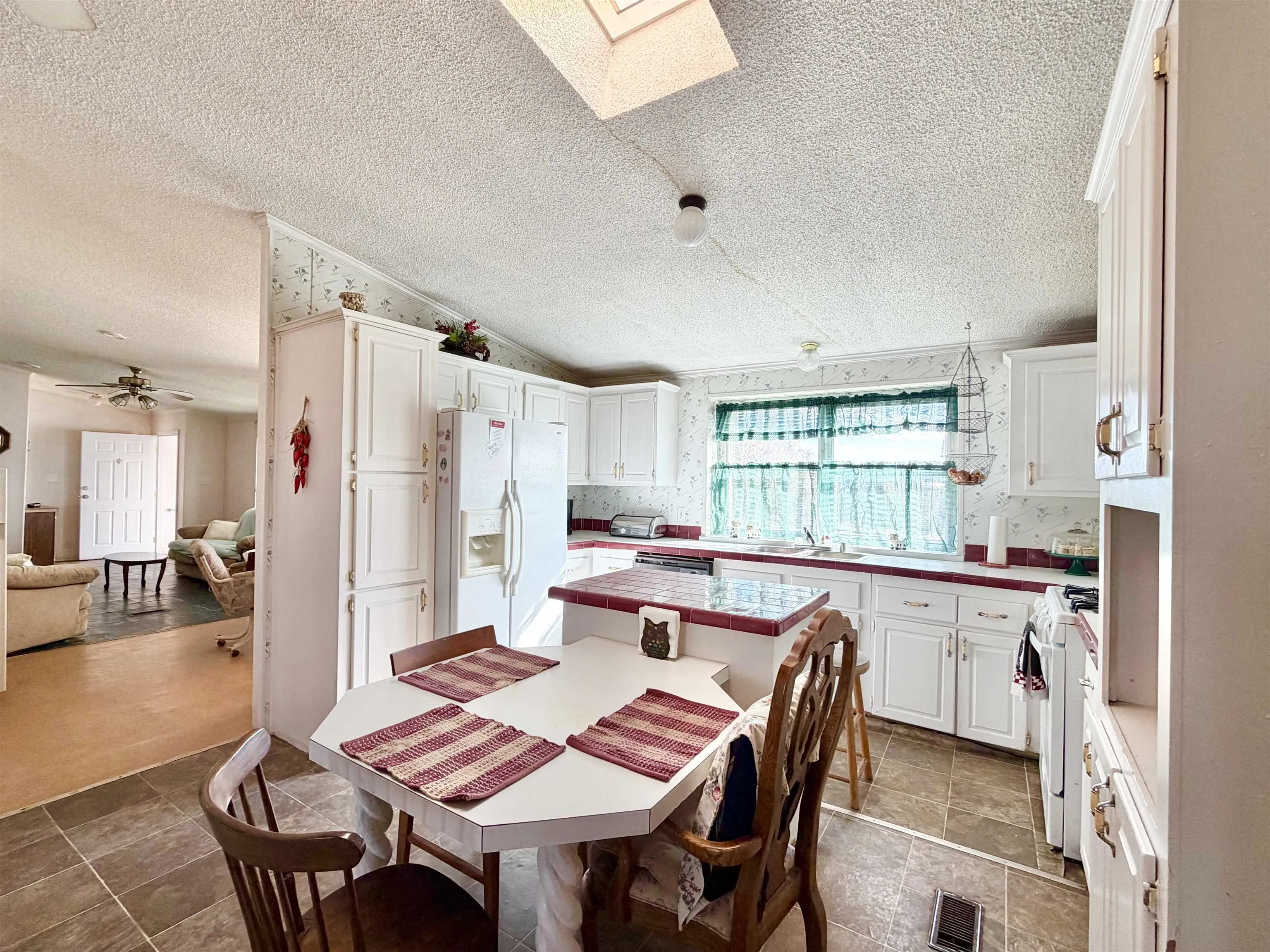 This spacious 76’x28′ manufactured home, spanning approximately 2,326 square feet, offers very nice views and an expansive open sky. With four bedrooms and three bathrooms, it provides ample room for your family and any future endeavors. The property features a second area on the north side, equipped with water and septic hookups, ideal for constructing or placing another manufactured home. Additionally, a detached, hand-built garage and a shed are conveniently located adjacent to the main residence. Upon entering, you are greeted by a generous sunroom that seamlessly transitions into the main living room through the front door. The expansive common areas, characterized by high ceilings, create a welcoming and airy atmosphere throughout the home. Three spacious bedrooms and a bathroom are situated on the east side, while the primary bedroom and ensuite bathroom are located on the west side. A third bathroom adjacent to the washroom ensures easy access for entertaining guests and accommodating visitors. This home offers generous accommodations, providing ample opportunities for imagination and creativity. Contact us today to schedule a viewing and discover how this property can best meet your needs.