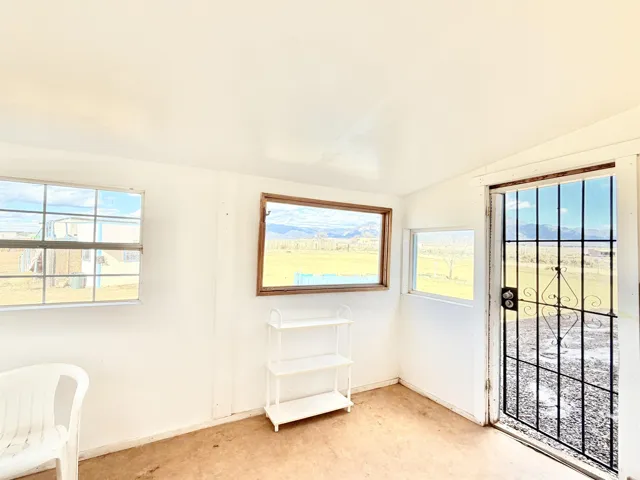 This spacious 76’x28′ manufactured home, spanning approximately 2,326 square feet, offers very nice views and an expansive open sky. With four bedrooms and three bathrooms, it provides ample room for your family and any future endeavors. The property features a second area on the north side, equipped with water and septic hookups, ideal for constructing or placing another manufactured home. Additionally, a detached, hand-built garage and a shed are conveniently located adjacent to the main residence. Upon entering, you are greeted by a generous sunroom that seamlessly transitions into the main living room through the front door. The expansive common areas, characterized by high ceilings, create a welcoming and airy atmosphere throughout the home. Three spacious bedrooms and a bathroom are situated on the east side, while the primary bedroom and ensuite bathroom are located on the west side. A third bathroom adjacent to the washroom ensures easy access for entertaining guests and accommodating visitors. This home offers generous accommodations, providing ample opportunities for imagination and creativity. Contact us today to schedule a viewing and discover how this property can best meet your needs.