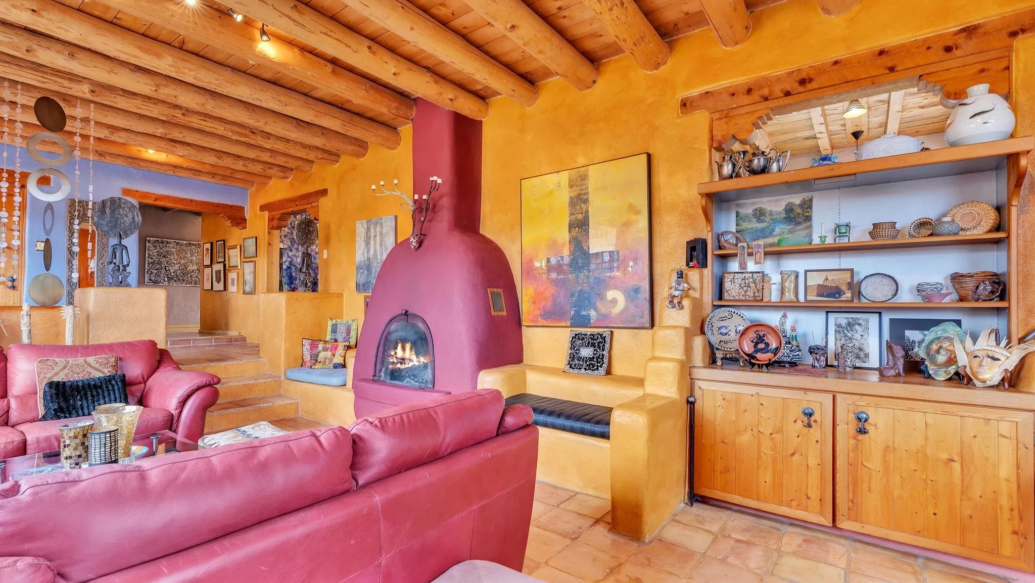Rare Ranchette with an Adobe Residence & Water Rights in Magical Arroyo Hondo ~ Everything you’ve ever dreamed of exists right here. This rare property features a flowing seasonal acequia alongside an elegant and tastefully updated Adobe residence. Perfectly positioned for the outdoor enthusiast, you can play in the waters of the Rio Grande just minutes to the west, or head east through charming Arroyo Seco to experience the world-class slopes of Taos Ski Valley. Spanning just under three lush acres off a well-maintained, paved Hondo Seco Road, this private oasis offers supreme tranquility and some of the absolute best views in the Southwest. An unforgettable first impression awaits as you step through the enclosed flagstone patio and a breathtaking masterpiece sea glass door. Inside, an immediate sense of vibrant warmth fills the space, where abundant natural light highlights classy fixtures and endless Southwestern character. Stunning architectural details are everywhere, from the viga and beam ceilings down to the hardwood and Saltillo tile floors, beautifully complemented by a traditional fireplace, bancitos, corbels, and step-down walls perfect for displaying your art collection. The sunken den offers a welcoming gathering spot to cozy up by the fire, while a versatile back bonus room serves perfectly as a home office, studio, theater, or extra sleeping space. The home provides three spacious bedrooms and two comfortable bathrooms, highlighted by a large primary ensuite tucked quietly at the back of the home with beautiful light, a highly functional bathroom, and private access to the yard. At the heart of the home, the open-concept dining room and kitchen—complete with a second egress to the back deck—provide the ideal setting for morning routines and entertaining dinner guests. Step outside to the enclosed, beautifully landscaped backyard to find a tranquil pond and fountain, creating a magical setting where you will love tending the garden, relaxing, and unwinding under a starry New Mexico sky.