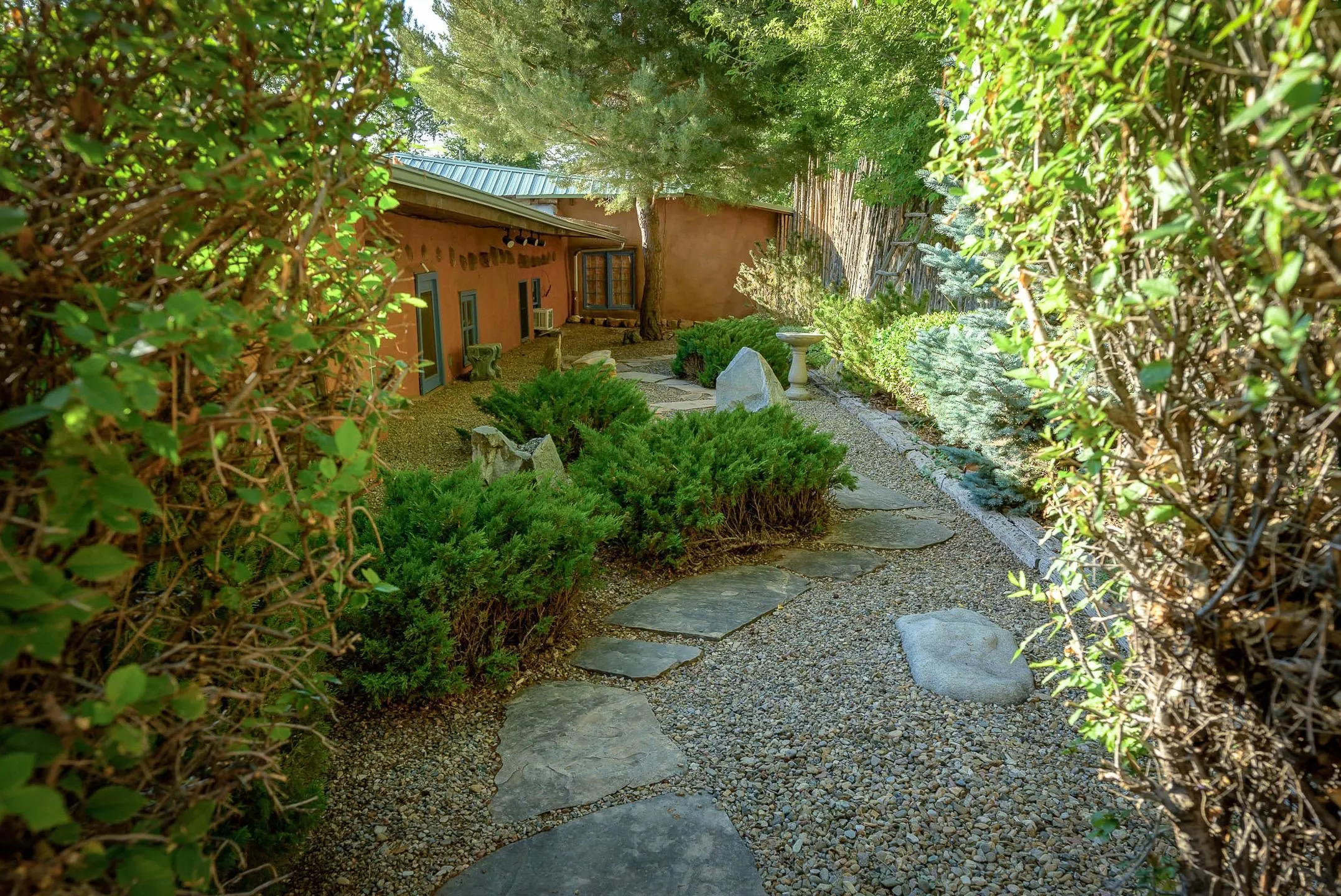 Step into the timeless charm of this historic 1940s adobe home nestled in the heart of Ranchos de Taos, New Mexico. Rich in character and warmth, this beautifully preserved 2-bedroom, 2-bath residence blends authentic Southwestern architecture with inviting indoor–outdoor living. Thick adobe walls, hand-hewn vigas, warm wood floors, and classic tile create a cozy and welcoming ambiance throughout. The living room features a traditional wood-burning fireplace—perfect for gathering on cool Taos evenings—while the formal dining room offers a second wood-burning fireplace, adding both charm and comfort for intimate dinners and festive celebrations alike. The kitchen is filled with natural light and garden views, offering an abundance of windows, a charming kitchen-dining area, and a wood-burning stove that enhances the home’s timeless appeal. It’s a space designed for both everyday living and memorable entertaining. The primary bedroom provides a peaceful retreat with its own ensuite bathroom. A well-appointed guest bedroom and separate guest bath ensure comfort and privacy for family and visitors. Outside, the property unfolds into an expansive courtyard and garden oasis with a true park-like setting. Mature trees, seasonal blooms, and thoughtfully designed landscaping surround a tranquil koi pond and inviting fire pit. Covered portals with a wood-burning fireplace create an extraordinary outdoor living space with ample seating—ideal for entertaining under the enchanting New Mexico sky. A small fruit orchard further enhances the charm and functionality of this unique property. Additional features include: A 374 sq. ft. heated studio with French doors and abundant natural light—perfect for an art studio, home office, yoga space, or additional living area. A 359 sq. ft. garden shed ideal for tools, storage, and gardening needs. With an additional garden shed in the orchard. Conveniently located near dining, shopping, golfing, and just a short drive to world-class skiing at Taos Ski Valley, as well as the historic Taos Plaza, this property offers the perfect blend of tranquility and accessibility. This is more than a home—it’s a soulful retreat rich in history, beauty, and possibility. Schedule your private showing today and experience the magic of this extraordinary Ranchos de Taos adobe for yourself.